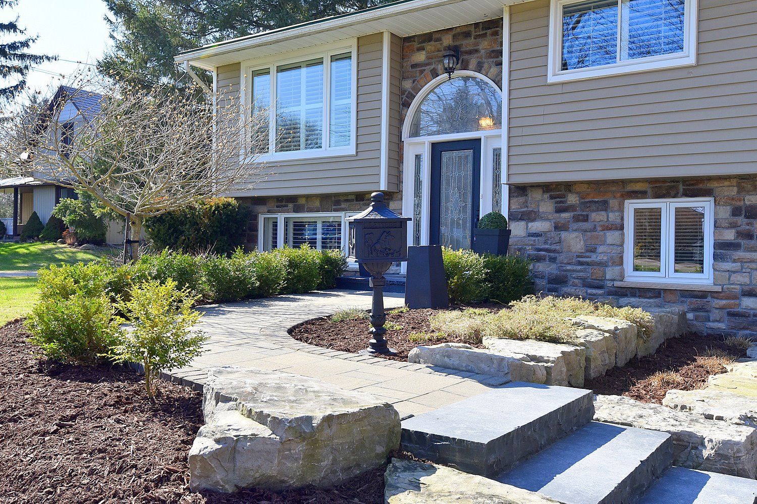 Located in the quaint village of Carlisle this elevated bungalow is truly immaculate and MOVE IN READY! Pride of ownership is obvious outside and throughout this beautifully updated home. With 3+2 bedrooms, 2 full baths and separate access to the lower level, this home is perfect for the growing family and multi generational living. OUTSTANDING FEATURES INCLUDE: Professional landscaping. Maintenance free metal roof. Oversized 30' x 24' HEATED garage/workshop with storage, third overhead door leading to the back yard and inside access to the mud room. Room to park an RV or oversized truck! The back yard is private, treed, landscaped and fully fenced with a shed and fire pit/conversation area. California shutters throughout most of the home. Refinished hardwood flooring throughout the main level. Gorgeous updated kitchen with breakfast bar, stainless appliances, gas range, quartz countertops and walk-out to large deck with gazebo and natural gas BBQ. Stunning, updated main bathroom. The primary bedroom features a wall to wall Ikea closet unit. Two more bedrooms complete the upper level. Much of the lower level is above grade. There's a 4th bedroom (currently used as a home office), a fully updated three piece bathroom and a 5th bedroom. In 2022 the sellers added a laundry room with extra storage, family room with California shutters and a mud room featuring built-ins accessed from both the back yard and garage! All windows and the sliding door were replaced within the last eight years. The driveway was redone in 2023. Freshly painted top to bottom.