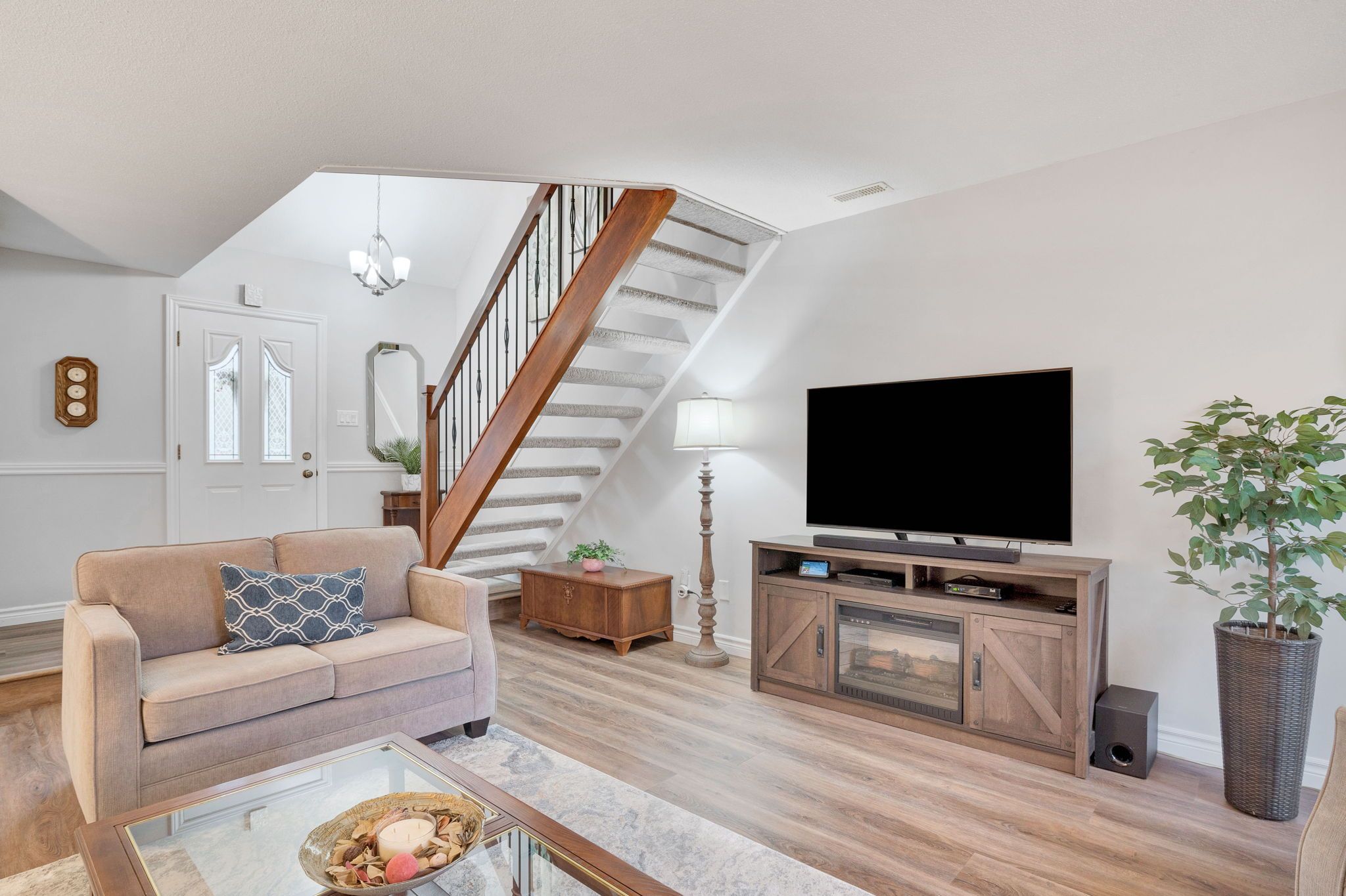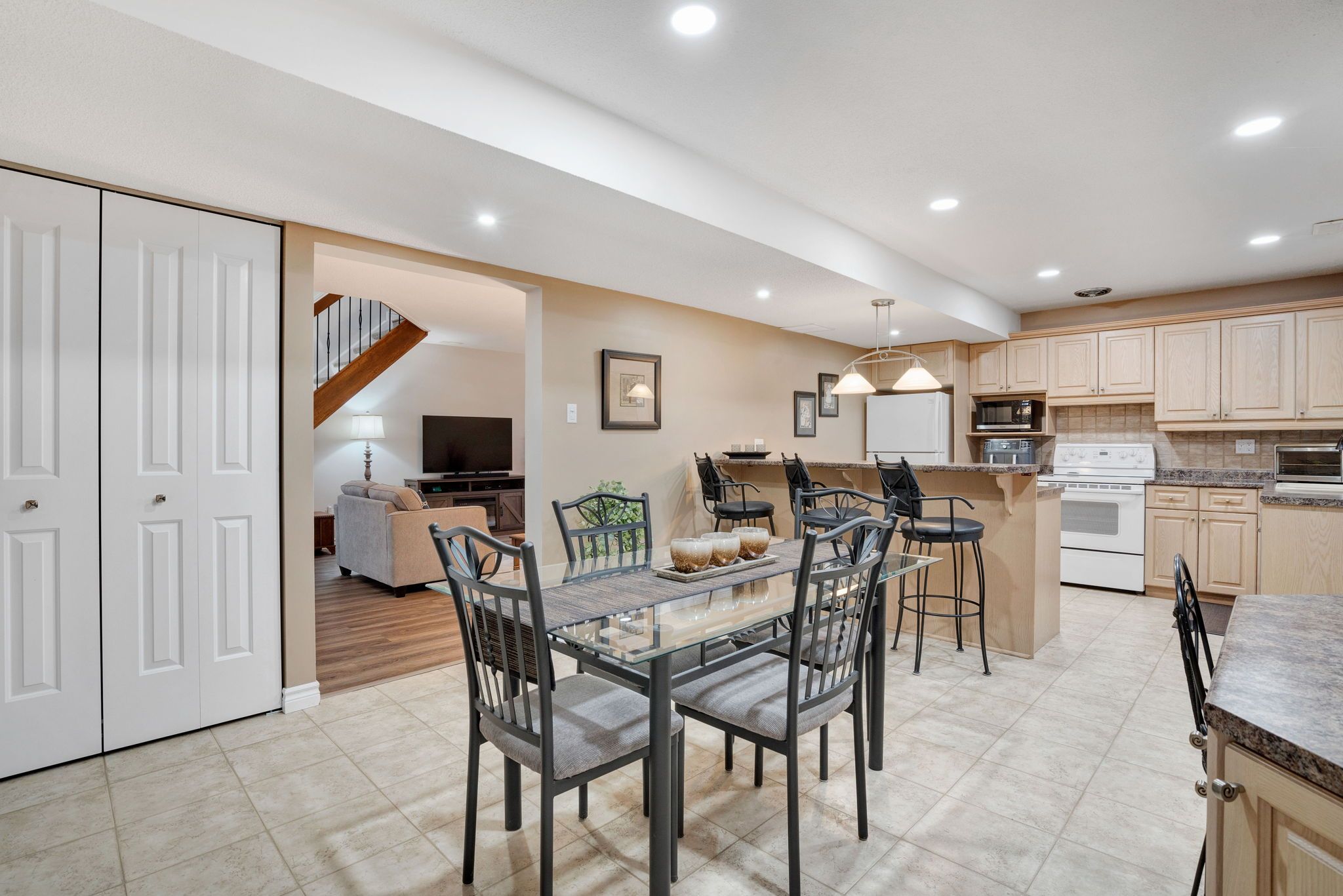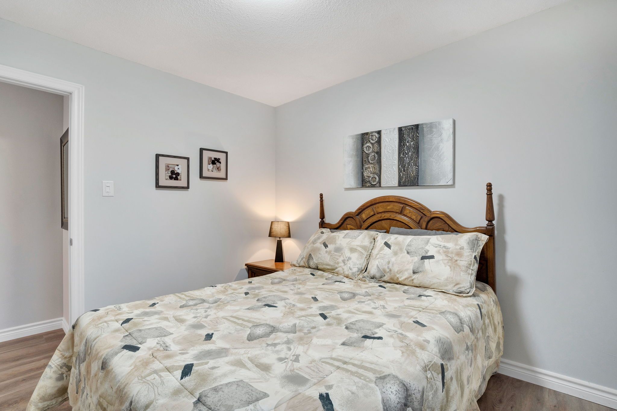 Welcome to this charming home situated on a beautiful corner lot on a quiet, tree-lined street, surrounded by mature trees that add warmth and character. Perfect for first-time buyers or those looking to downsize, this home offers a functional and inviting layout. Featuring 3 good size bedrooms upstairs plus a versatile 4th room ideal for a home office, along with 1 full bathroom, a private ensuite and a convenient 2 -piece on the main floor. The open-concept living space is bright and welcoming, complemented by new flooring throughout (2023), updated lighting and a stylish new staircase (2016).The spacious sun-filled kitchen offers ample counter space and a dedicated eating area, with room for a full size dining table-perfect for entertaining. Step outside to a covered patio overlooking a fully fenced, private backyard ideal for relaxing or hosting the next BBQ with loved ones. Additional highlights include a stamped concrete driveway and walkway adding curb appeal, and a durable metal roof with gutter guards providing long-term peace of mind. A fantastic opportunity in a desirable, family-friendly neighbourhood ready for the next chapter and a place to call home.