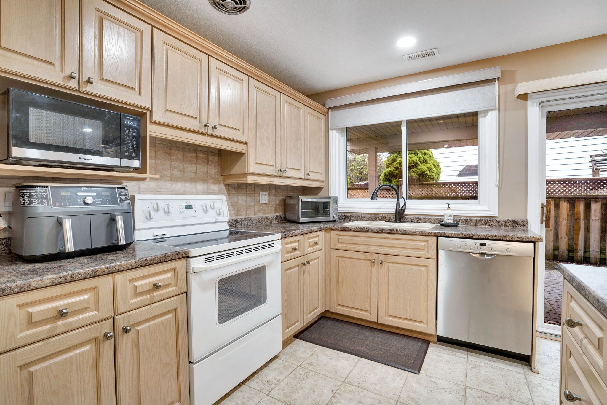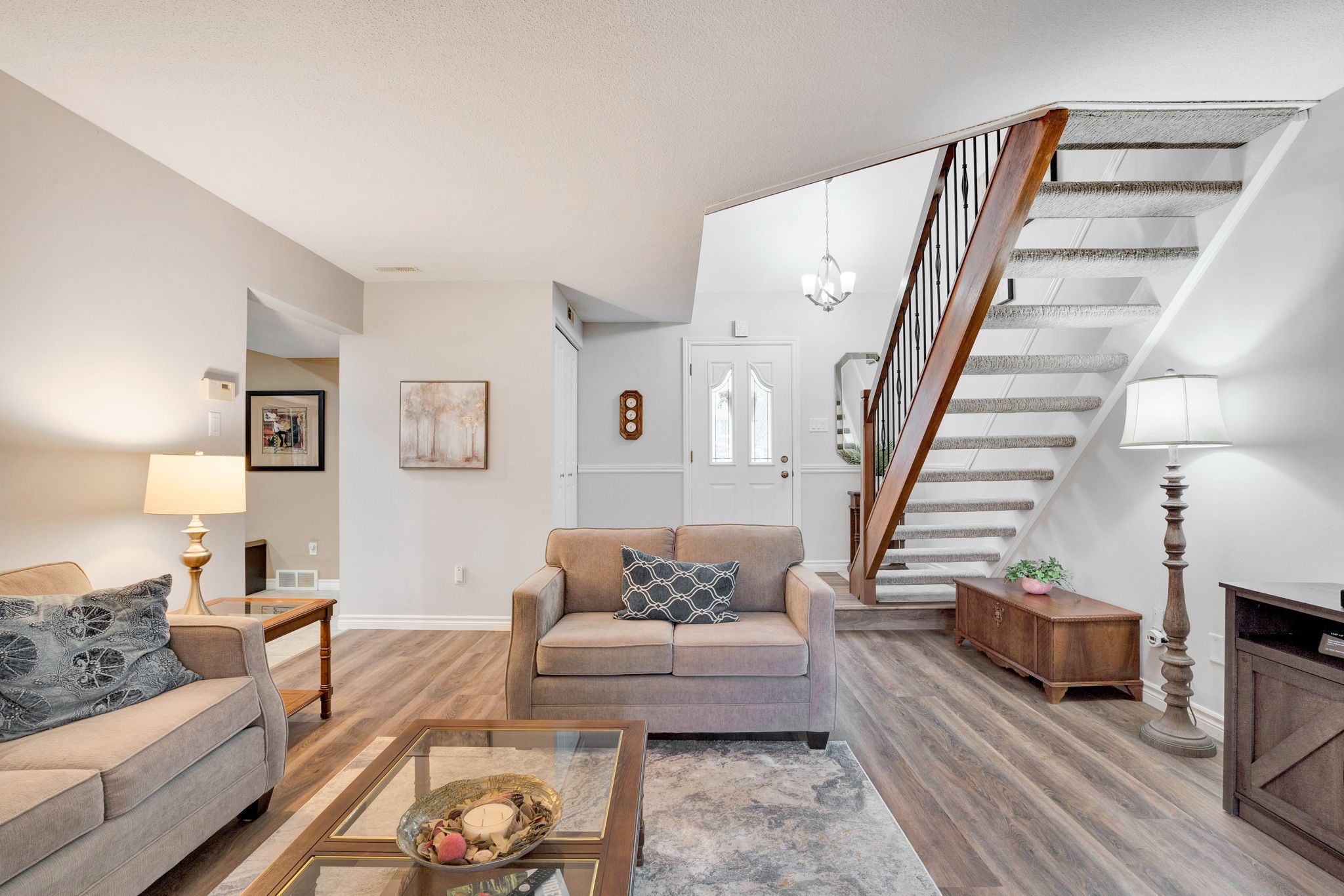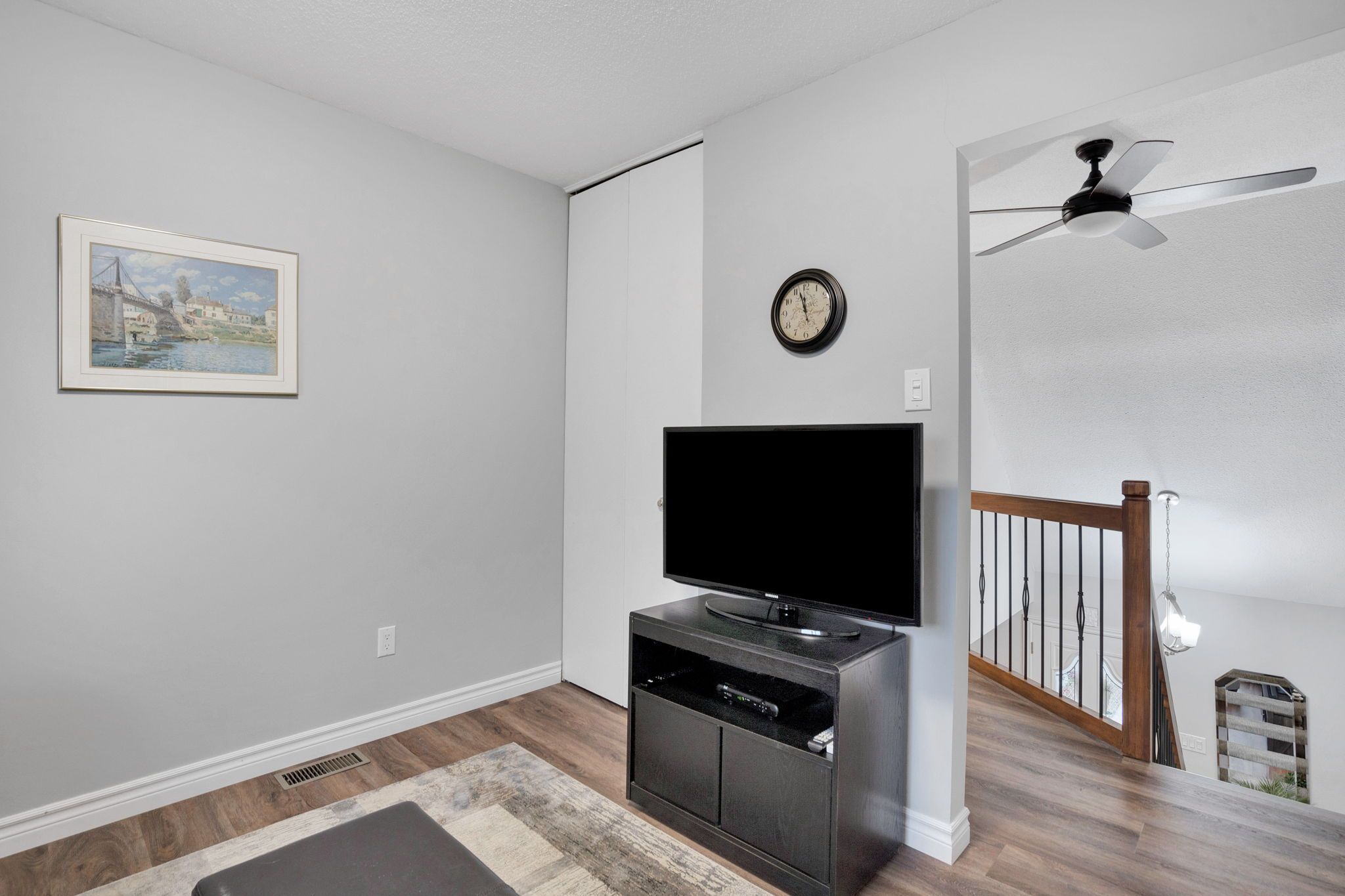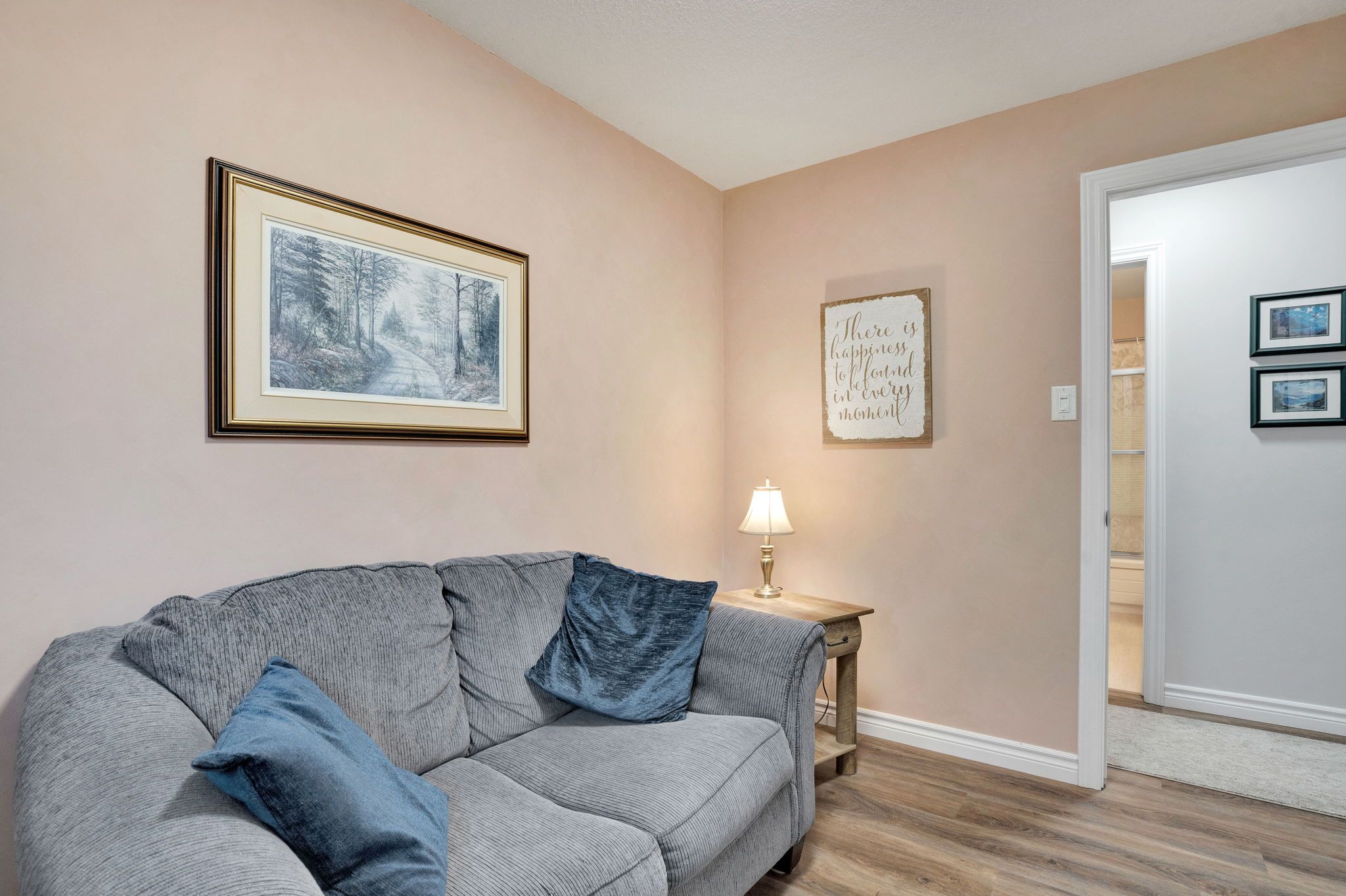 Welcome to this charming home situated on a beautiful corner lot on a quiet, tree-lined street, surrounded by mature trees that add warmth and character. Perfect for first-time buyers or those looking to downsize, this home offers a functional and inviting layout. Featuring 3 good size bedrooms upstairs plus a versatile 4th room ideal for a home office, along with 1 full bathroom, a private ensuite and a convenient 2 -piece on the main floor. The open-concept living space is bright and welcoming, complemented by new flooring throughout (2023), updated lighting and a stylish new staircase (2016).The spacious sun-filled kitchen offers ample counter space and a dedicated eating area, with room for a full size dining table-perfect for entertaining. Step outside to a covered patio overlooking a fully fenced, private backyard ideal for relaxing or hosting the next BBQ with loved ones. Additional highlights include a stamped concrete driveway and walkway adding curb appeal, and a durable metal roof with gutter guards providing long-term peace of mind. A fantastic opportunity in a desirable, family-friendly neighbourhood ready for the next chapter and a place to call home.