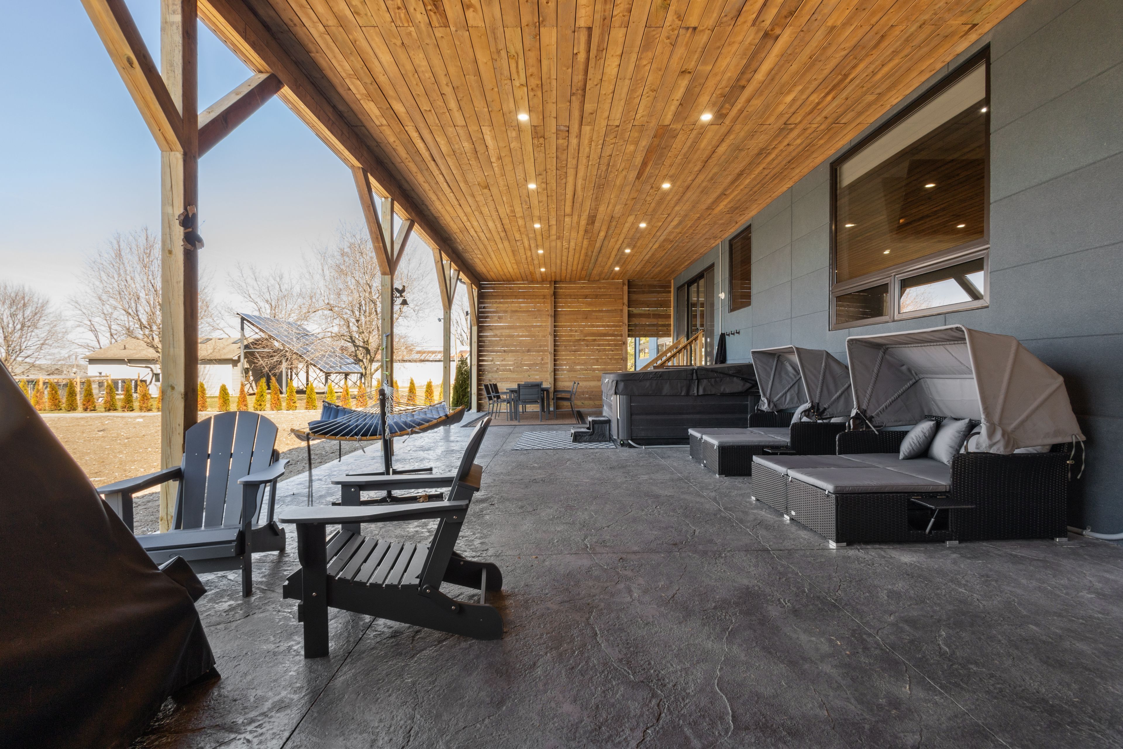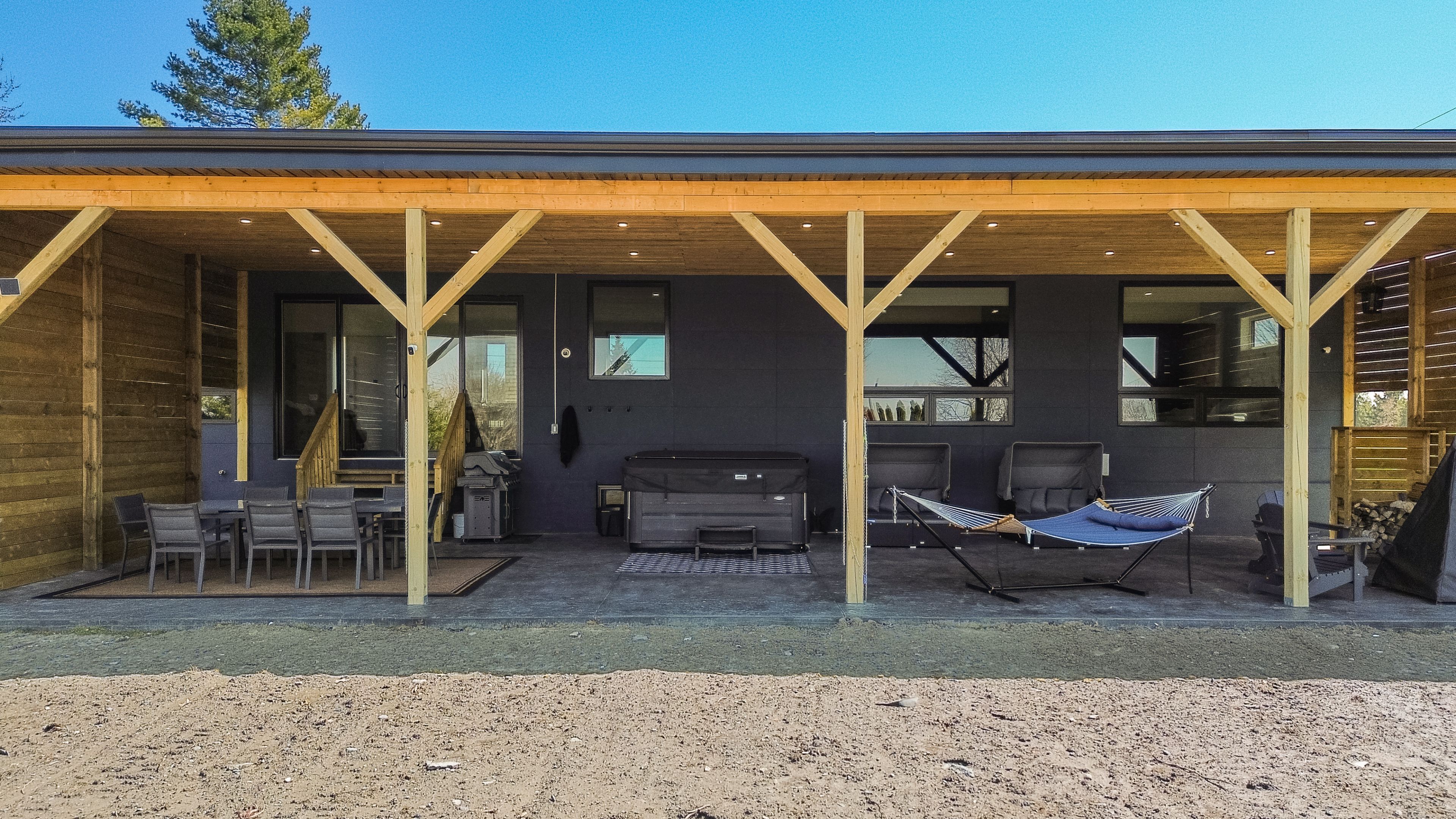 - Exterior Features: Hot Tub, Landscaped, Paved Yard, Privacy, Porch