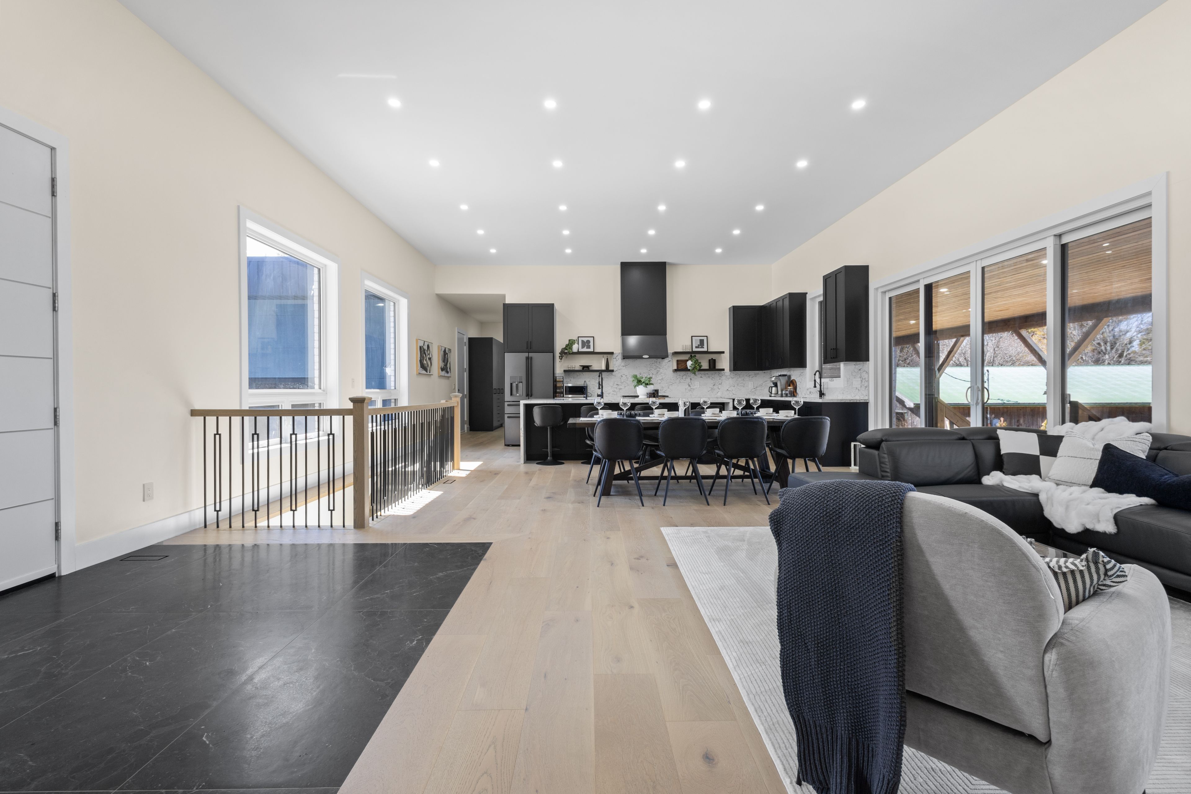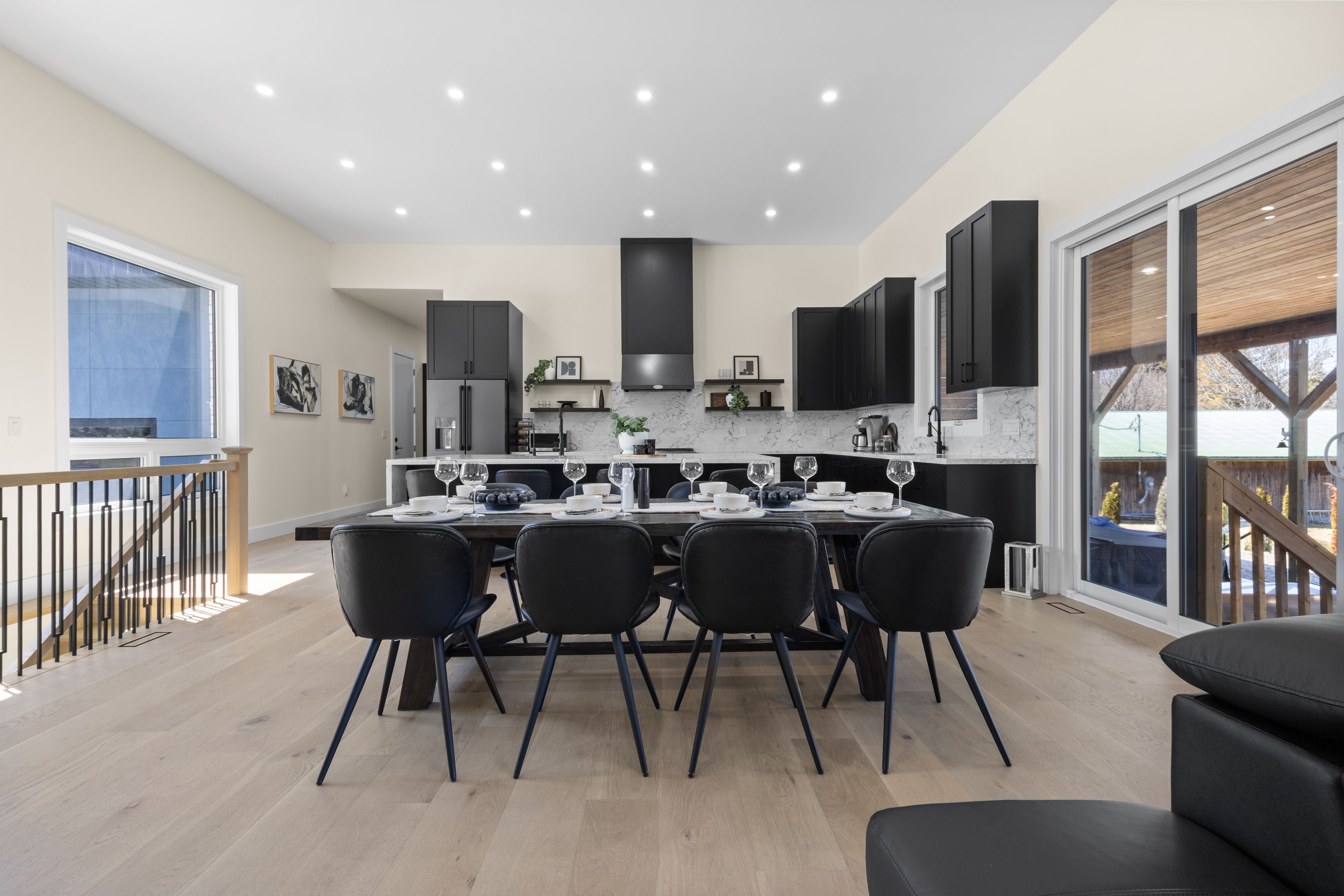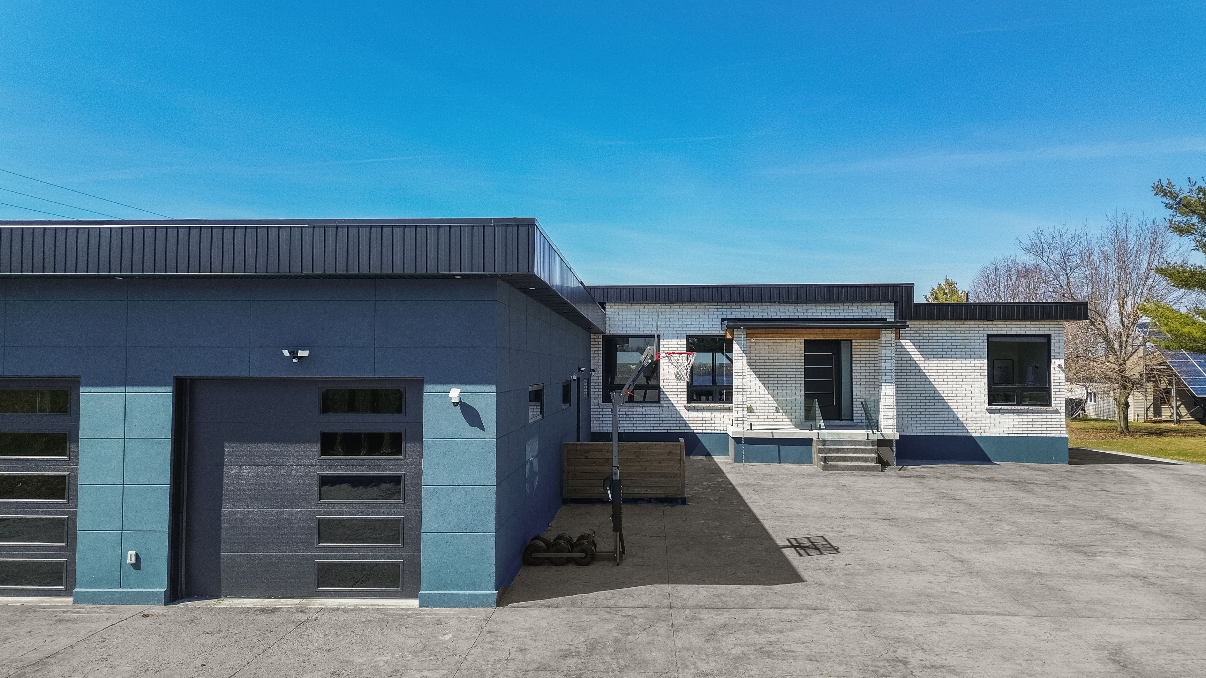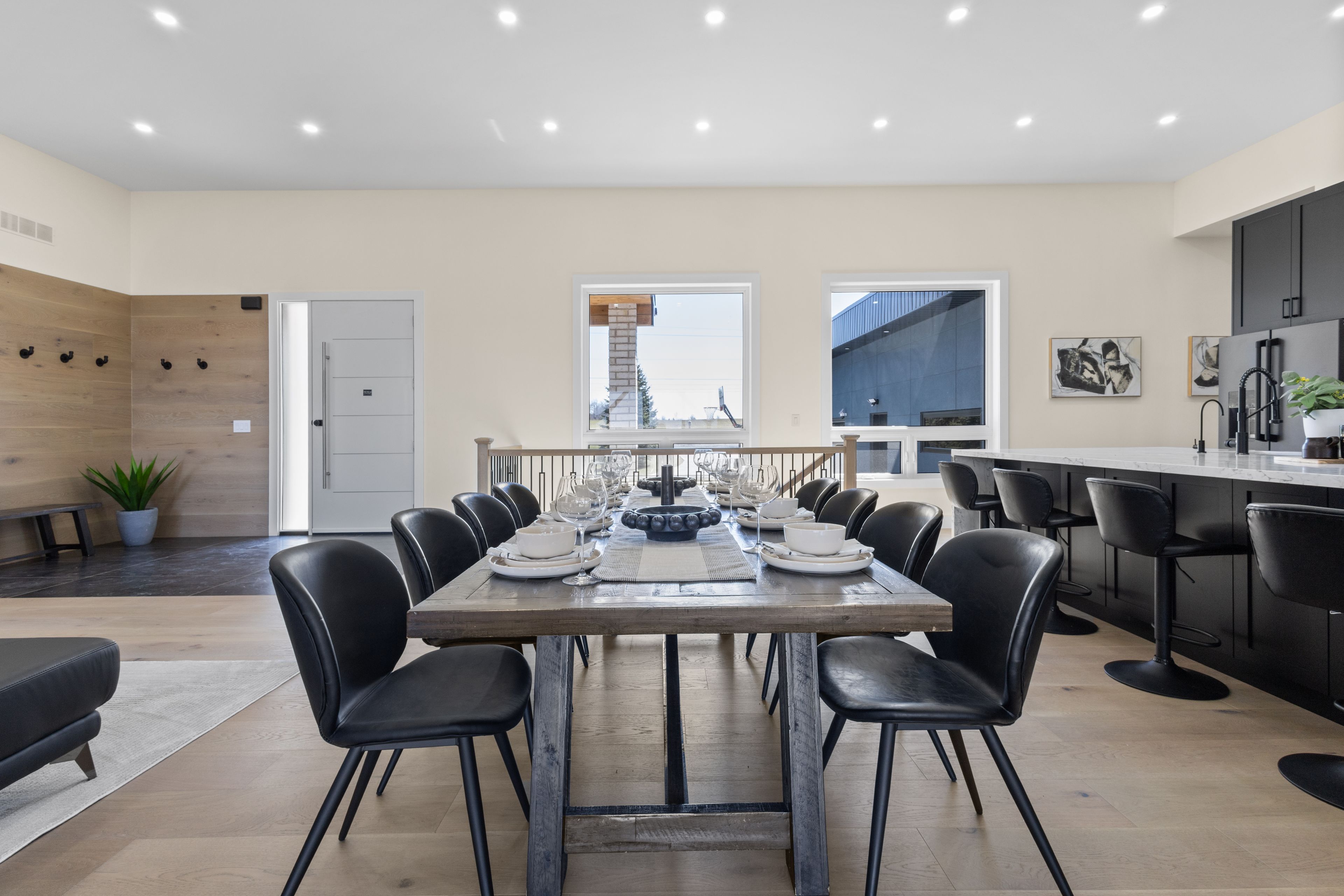 Stunning modern waterfront home set on over 1.6 acres with approximately 150 feet of private shoreline on the Bay of Quinte, located along one of the most exclusive stretches in Prince Edward County. This newly constructed custom bungalow showcases a high level of construction throughout, featuring a striking stucco and brick exterior, stamped concrete driveway, patio, and walkways. Inside, the home offers 3+3 bedrooms and 3 bathrooms across two fully finished levels, with water views from nearly every room. The main living area features 12-foot ceilings, 10-foot ceilings in the bedrooms, oversized Alcabri windows, 8-foot doors, and custom cabinetry throughout, complimented by 9-inch engineered white oak flooring. The kitchen includes a 10 x 5 quartz waterfall island with hidden storage, dual sink, continuous quartz backsplash, and Café appliances. The primary suite offers a 5-piece ensuite with double sinks, soaker tub, and glass walk-in shower, along with a 12-foot sliding door leading to a 55 x 21 covered patio. The lower level features 8-foot ceilings, a large rec room, gym area, powder room, laundry with quartz counters, and 3 additional bedrooms with oversized windows. Connected through a heated and cooled flex space is a 40.5 x 28.5 garage with 13-foot ceilings, pot lights, and 12-inch concrete flooring. The waterfront includes a 20-foot composite cantilever dock, armour stone shoreline, and firepit patio. The lot allows for a secondary dwelling. A well-executed waterfront home in Prince Edward County.