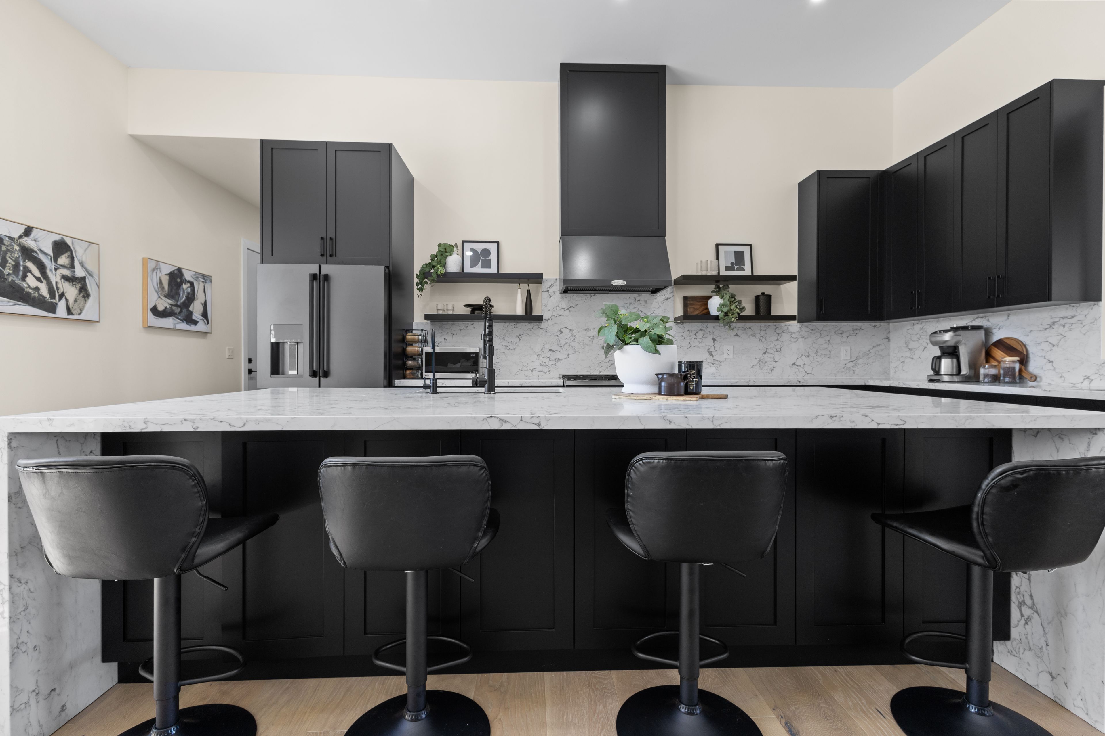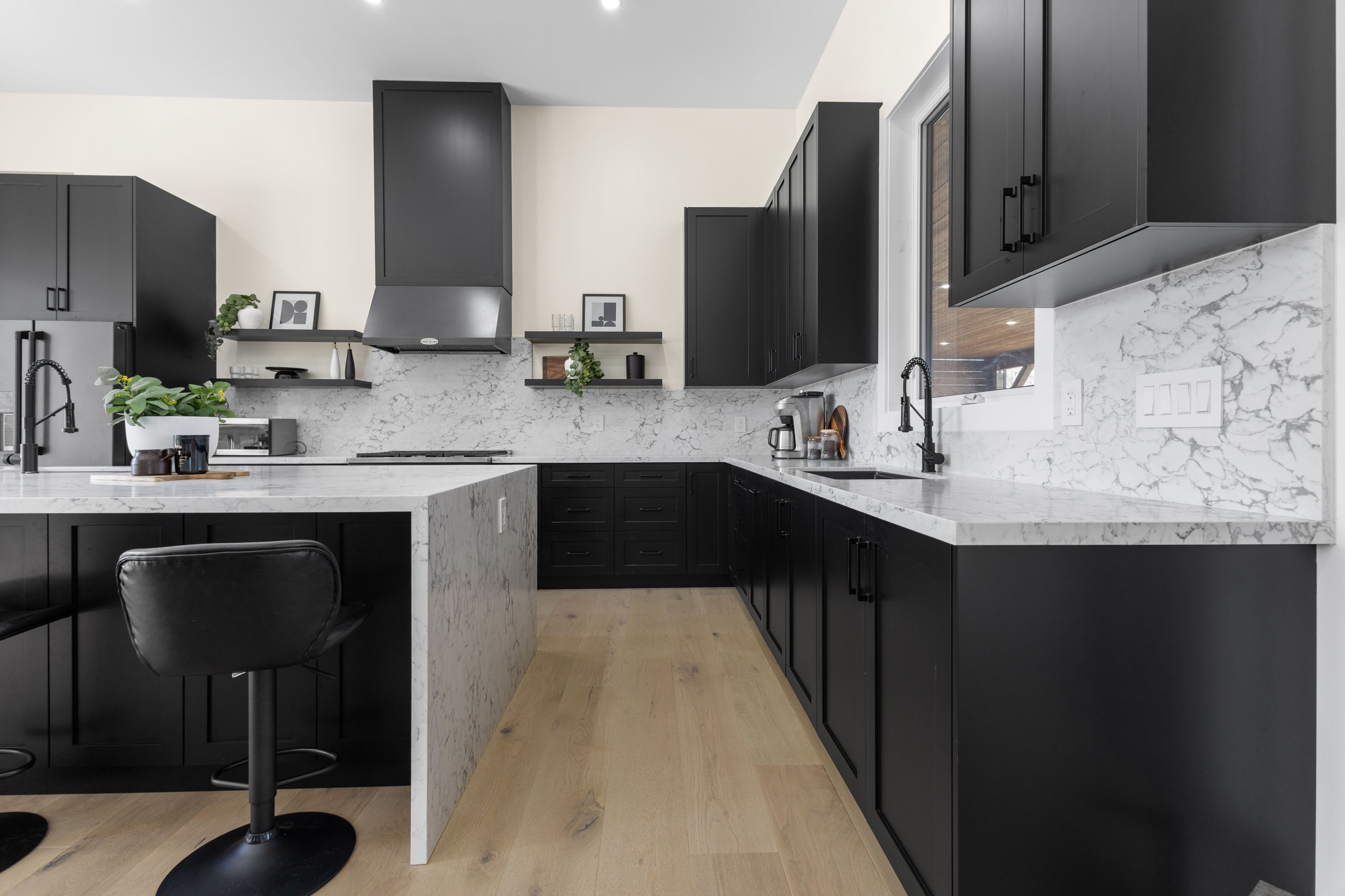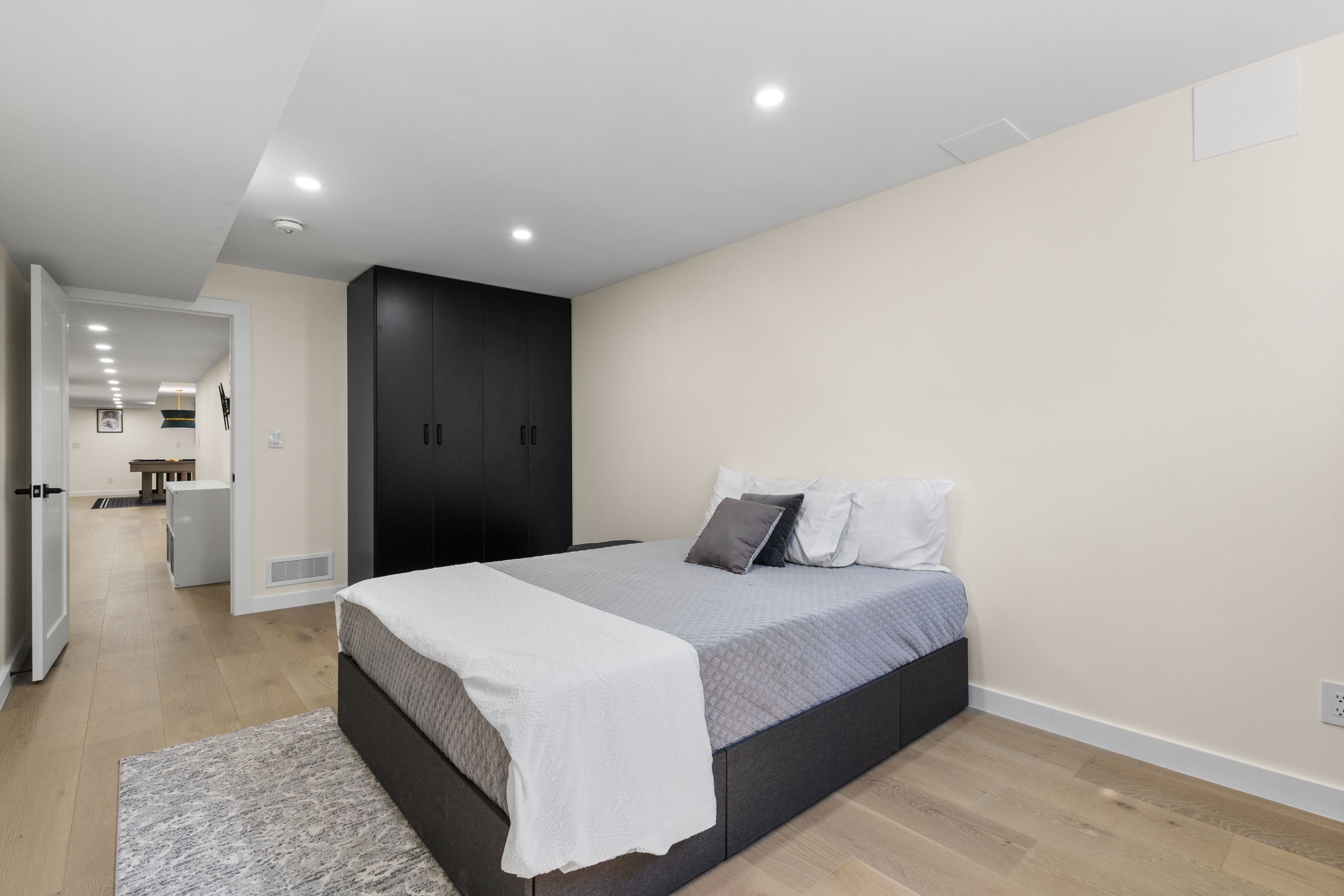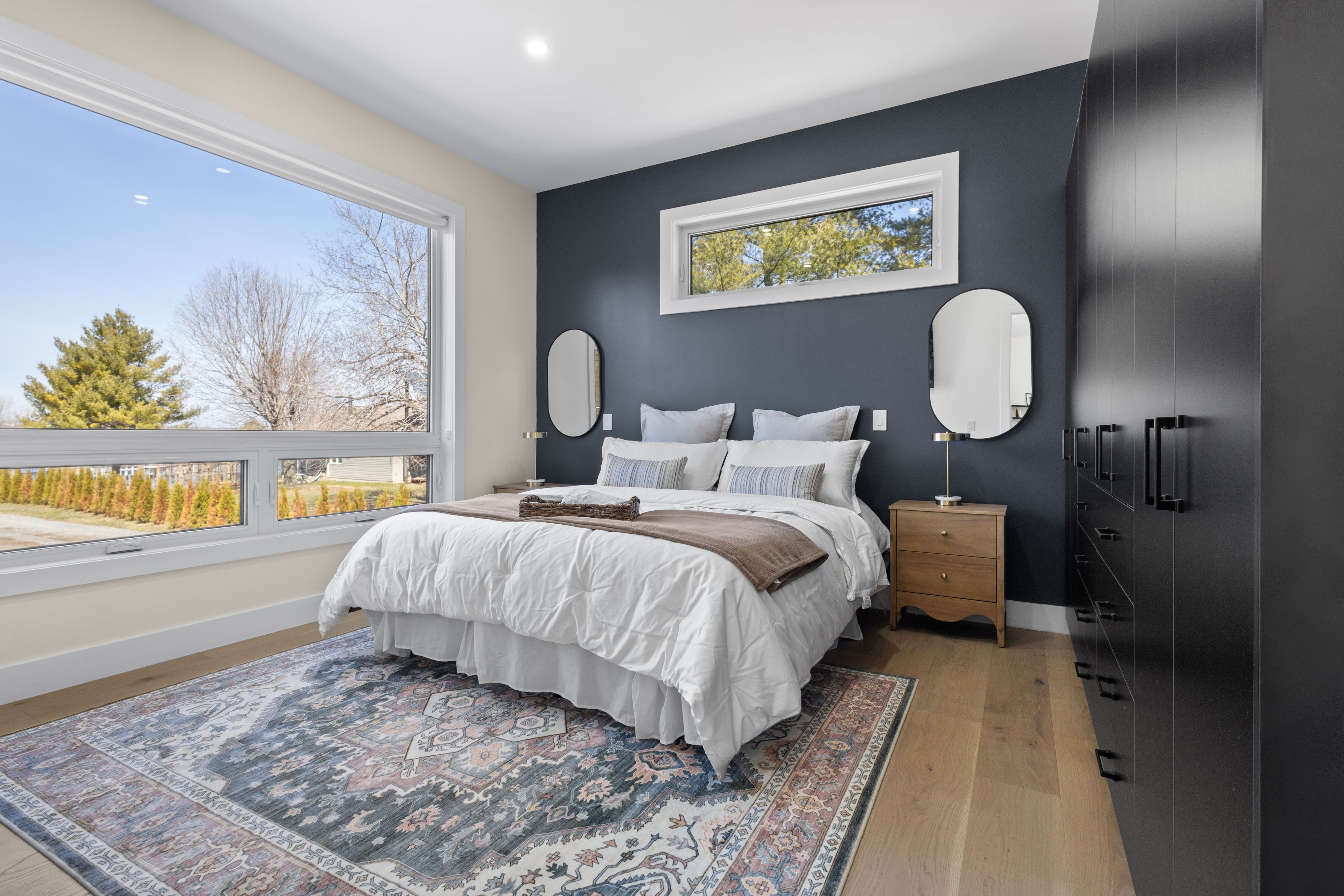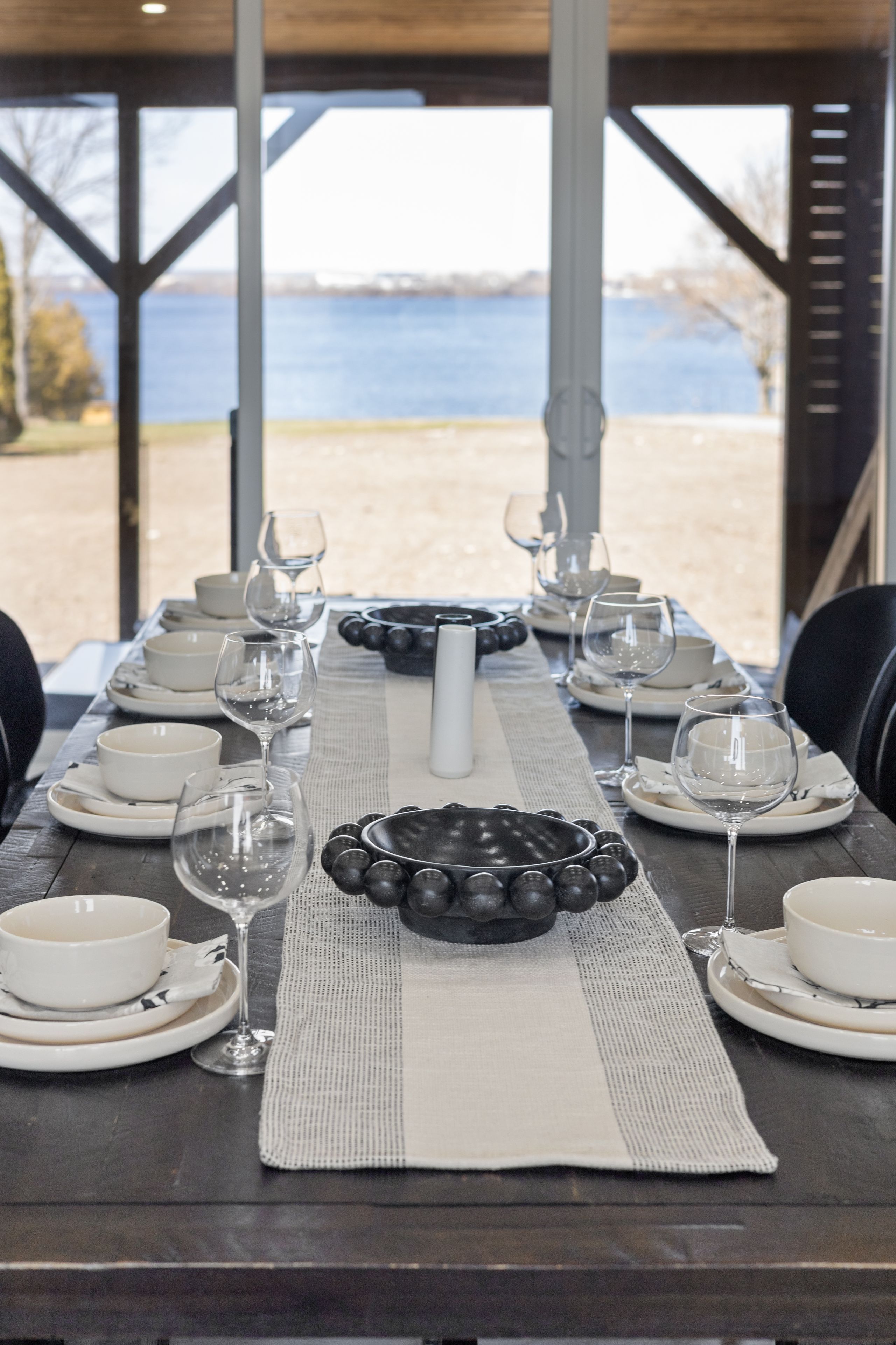 Stunning modern waterfront home set on over 1.6 acres with approximately 150 feet of private shoreline on the Bay of Quinte, located along one of the most exclusive stretches in Prince Edward County. This newly constructed custom bungalow showcases a high level of construction throughout, featuring a striking stucco and brick exterior, stamped concrete driveway, patio, and walkways. Inside, the home offers 3+3 bedrooms and 3 bathrooms across two fully finished levels, with water views from nearly every room. The main living area features 12-foot ceilings, 10-foot ceilings in the bedrooms, oversized Alcabri windows, 8-foot doors, and custom cabinetry throughout, complimented by 9-inch engineered white oak flooring. The kitchen includes a 10 x 5 quartz waterfall island with hidden storage, dual sink, continuous quartz backsplash, and Café appliances. The primary suite offers a 5-piece ensuite with double sinks, soaker tub, and glass walk-in shower, along with a 12-foot sliding door leading to a 55 x 21 covered patio. The lower level features 8-foot ceilings, a large rec room, gym area, powder room, laundry with quartz counters, and 3 additional bedrooms with oversized windows. Connected through a heated and cooled flex space is a 40.5 x 28.5 garage with 13-foot ceilings, pot lights, and 12-inch concrete flooring. The waterfront includes a 20-foot composite cantilever dock, armour stone shoreline, and firepit patio. The lot allows for a secondary dwelling. A well-executed waterfront home in Prince Edward County.