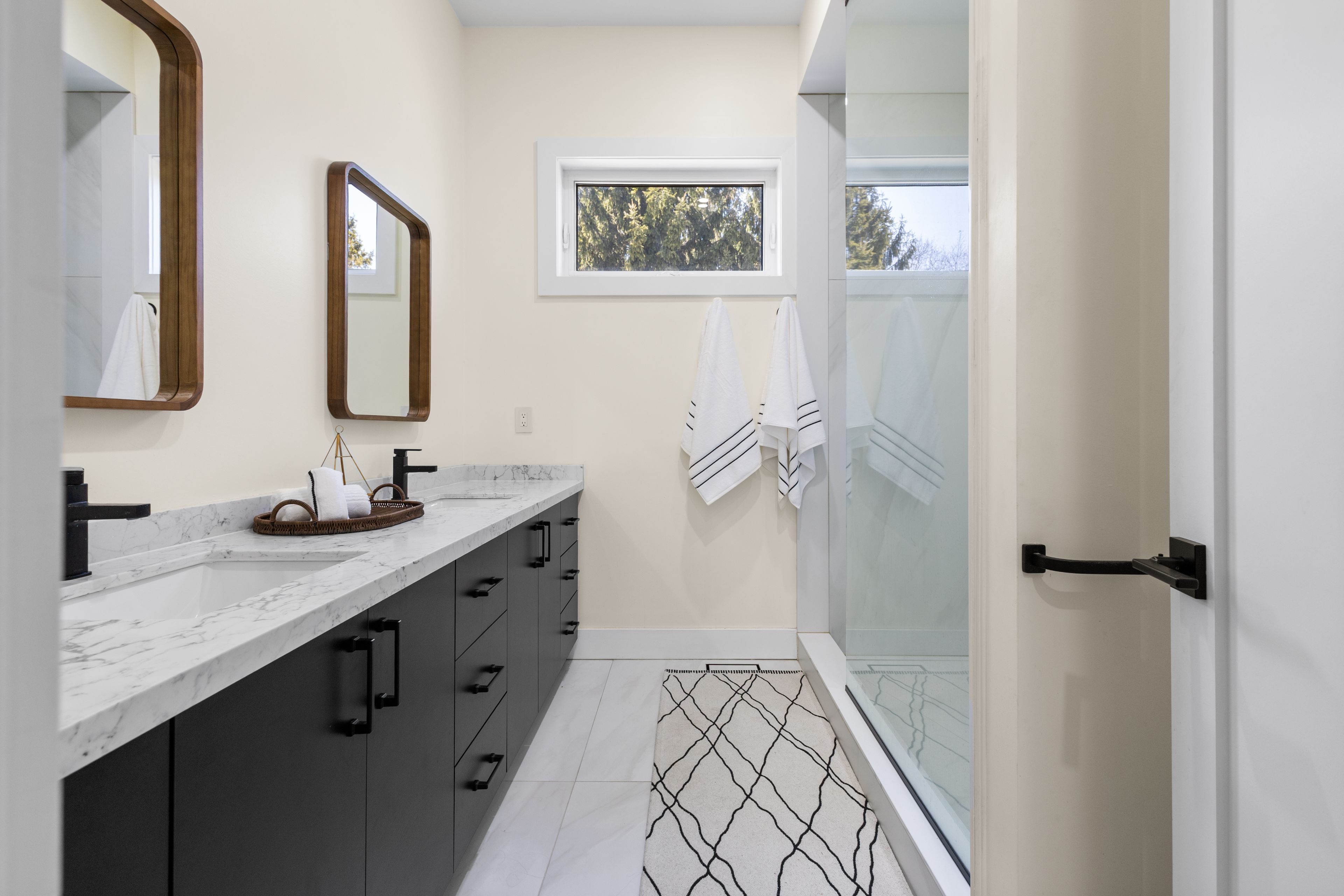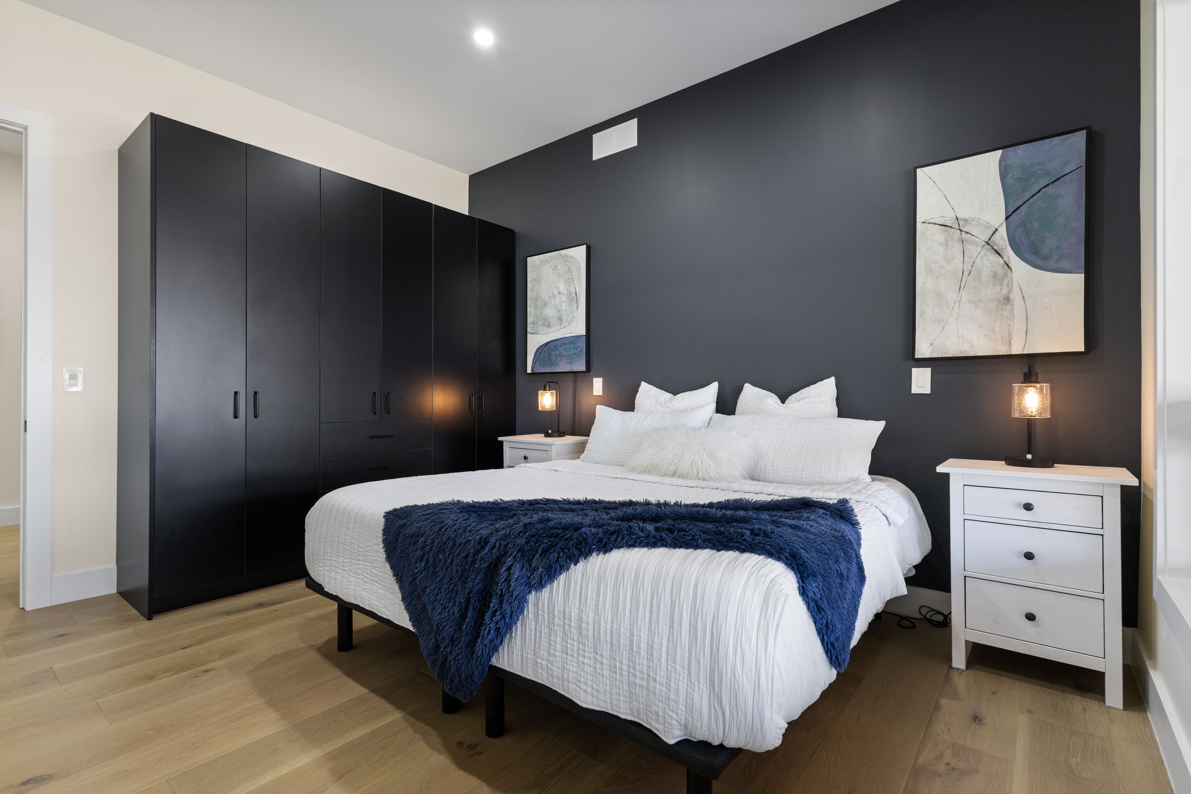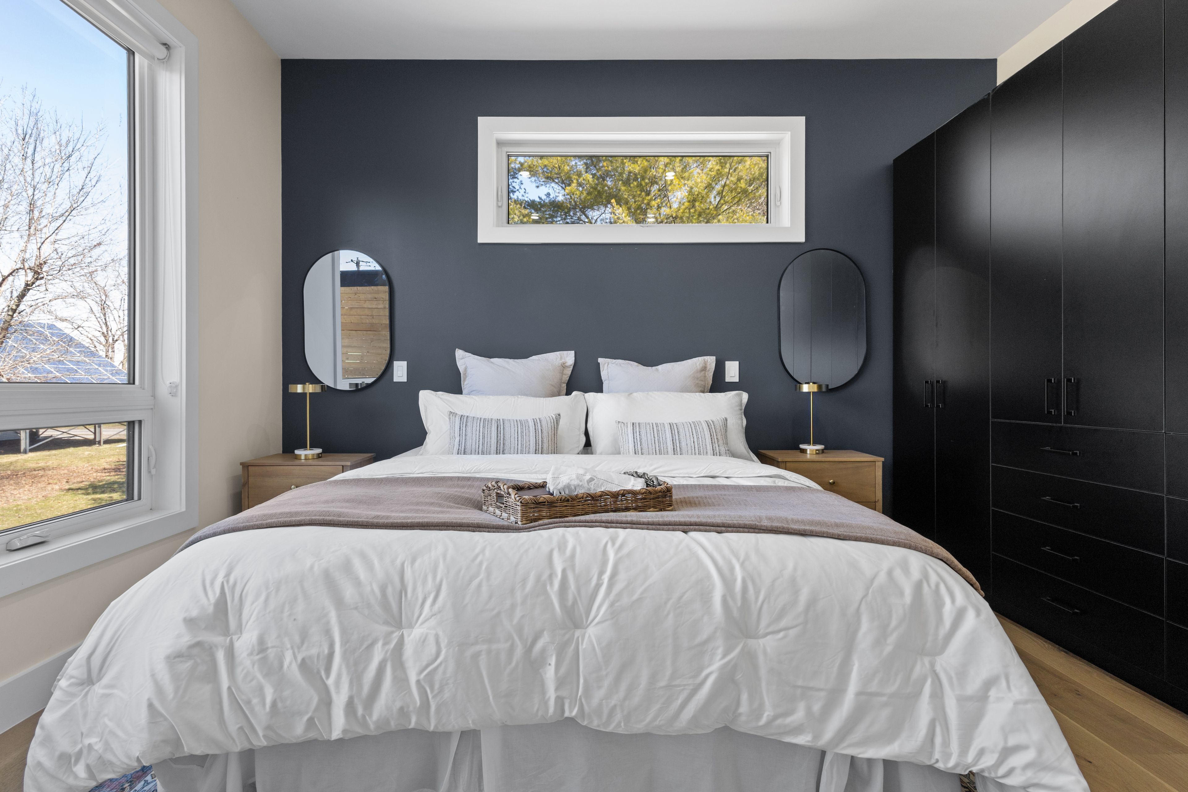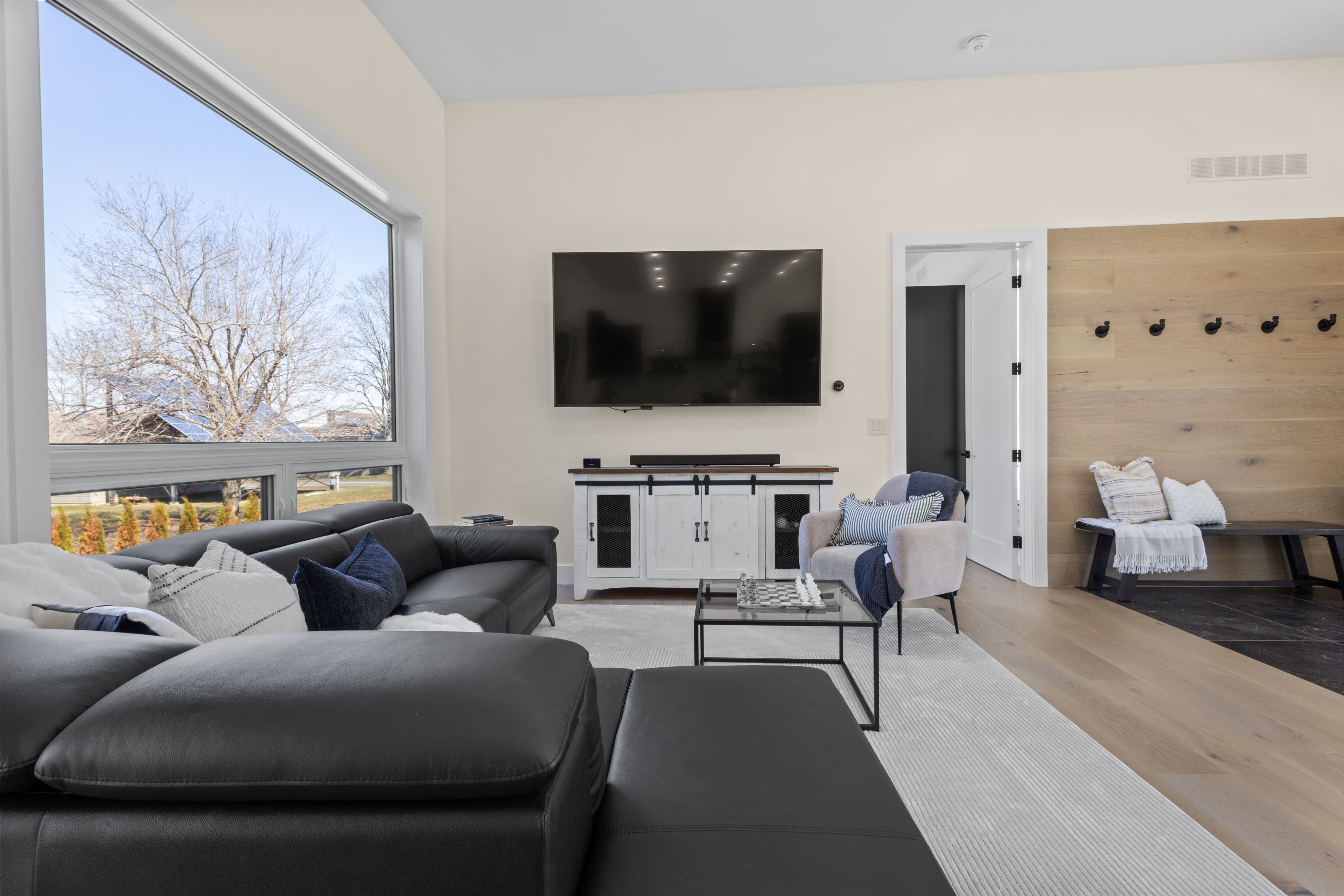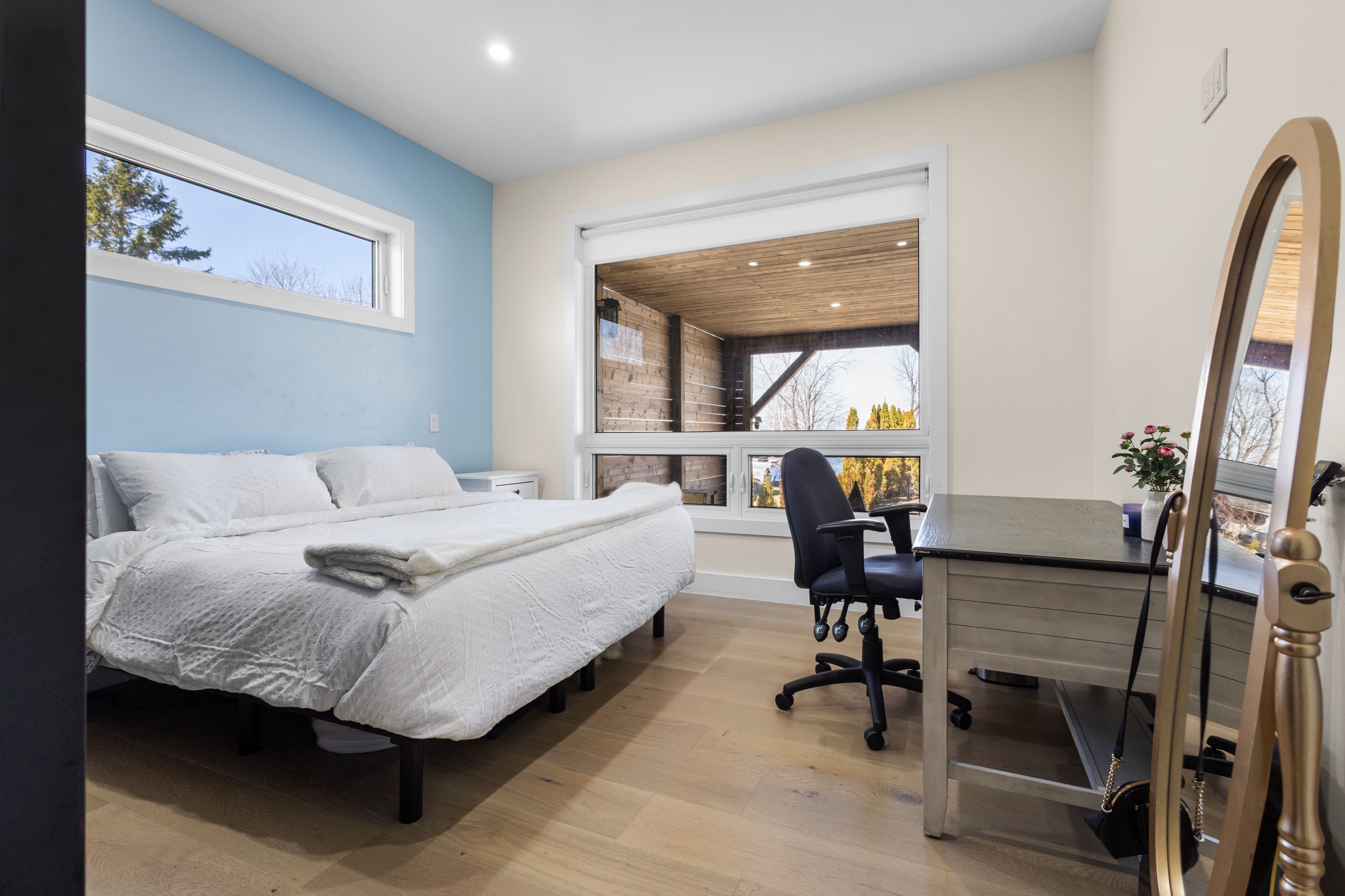 Stunning modern waterfront home set on over 1.6 acres with approximately 150 feet of private shoreline on the Bay of Quinte, located along one of the most exclusive stretches in Prince Edward County. This newly constructed custom bungalow showcases a high level of construction throughout, featuring a striking stucco and brick exterior, stamped concrete driveway, patio, and walkways. Inside, the home offers 3+3 bedrooms and 3 bathrooms across two fully finished levels, with water views from nearly every room. The main living area features 12-foot ceilings, 10-foot ceilings in the bedrooms, oversized Alcabri windows, 8-foot doors, and custom cabinetry throughout, complimented by 9-inch engineered white oak flooring. The kitchen includes a 10 x 5 quartz waterfall island with hidden storage, dual sink, continuous quartz backsplash, and Café appliances. The primary suite offers a 5-piece ensuite with double sinks, soaker tub, and glass walk-in shower, along with a 12-foot sliding door leading to a 55 x 21 covered patio. The lower level features 8-foot ceilings, a large rec room, gym area, powder room, laundry with quartz counters, and 3 additional bedrooms with oversized windows. Connected through a heated and cooled flex space is a 40.5 x 28.5 garage with 13-foot ceilings, pot lights, and 12-inch concrete flooring. The waterfront includes a 20-foot composite cantilever dock, armour stone shoreline, and firepit patio. The lot allows for a secondary dwelling. A well-executed waterfront home in Prince Edward County.