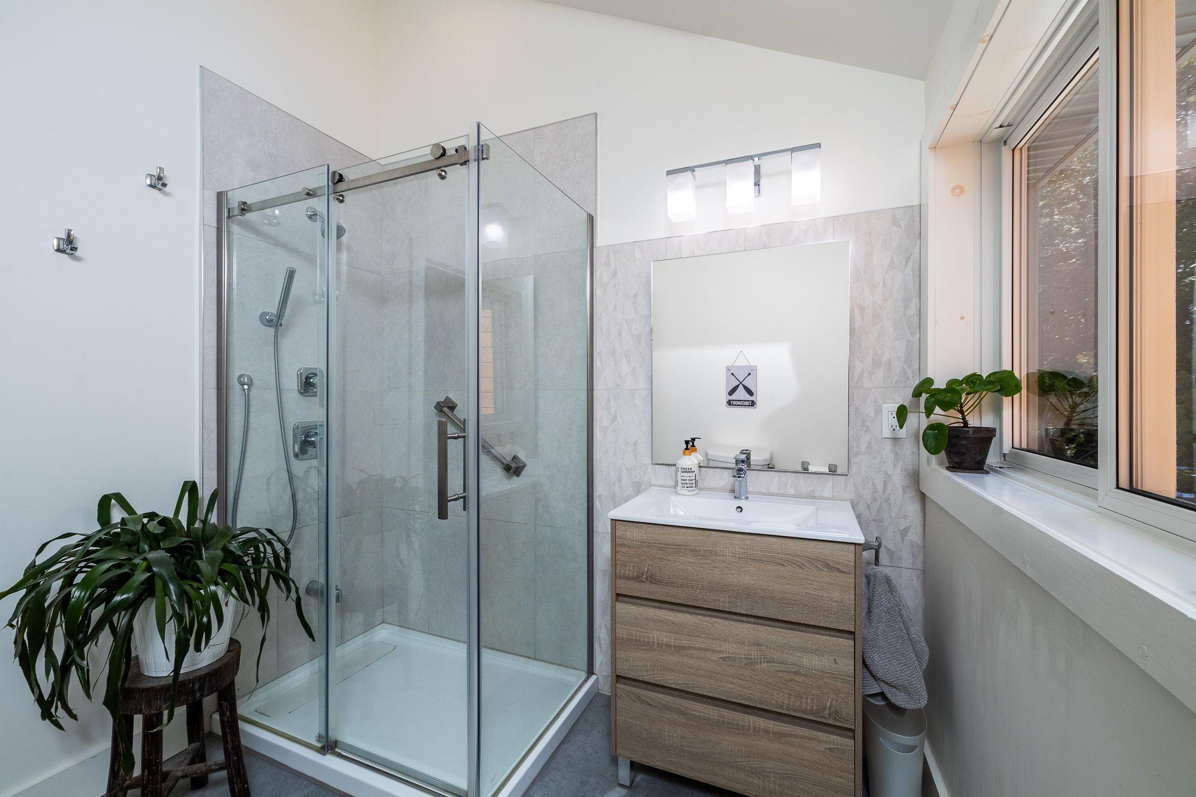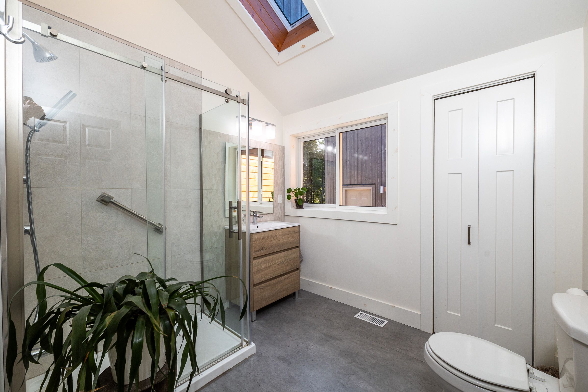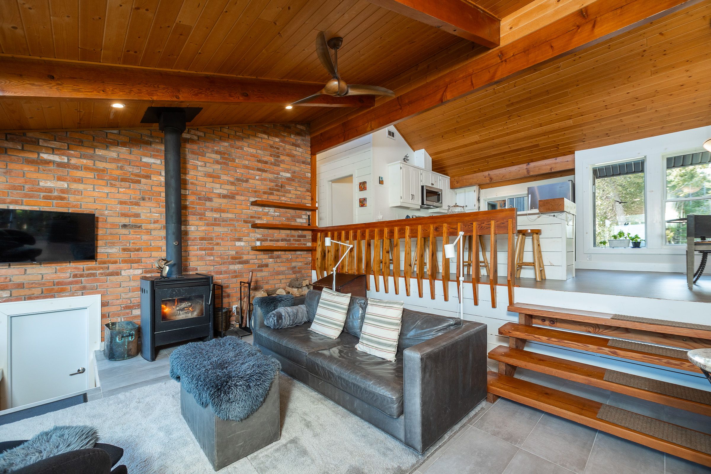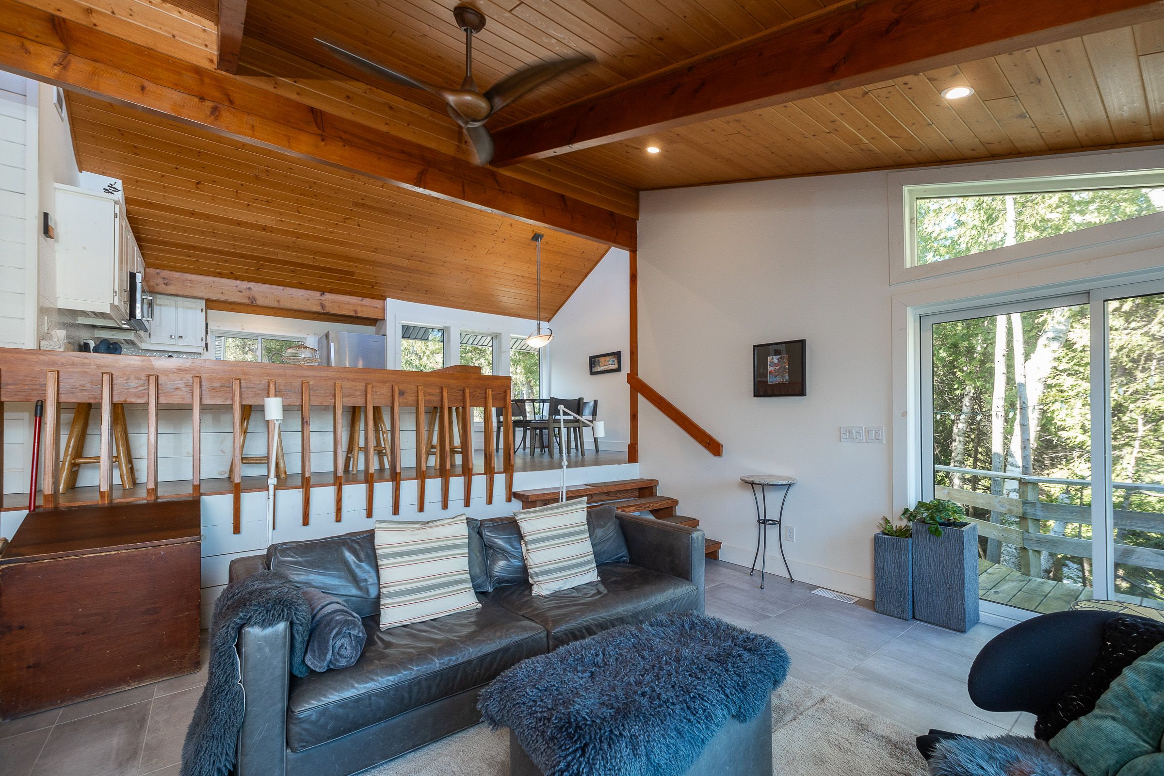 Welcome to your private Georgian Bay retreat in the heart of Tobermory-where contemporary design meets comfort and breathtaking natural beauty. Set on a rare protected cove with inspiring views toward Flowerpot and Bear's Rump Island, this extensively renovated waterfront home offers exceptional privacy just a short walk to the village, shops, and restaurants. Reimagined in 2019 with a complete down-to-the-studs extensive renovation and thoughtful addition, this 3+1 bedroom, 2-bath home was designed for energy efficiency. A 7.6kW solar system with net metering, SolarEdge inverter, and Level 2 EV charger pairs with a Zuba air-source heat pump for near net-zero living. Inside, warm modern finishes include ready-pine ceilings, custom Douglas fir stairs, and expansive windows framing the water. Durable concrete-effect flooring runs throughout, complemented by Italian porcelain tile and in-floor heat in the primary bath. A Blaze King Chinook wood stove adds efficiency and ambiance. All major systems were also updated in 2019, including plumbing, electrical, septic, windows, roofing (addition), and a 3-stage water purification system. Additional features include a custom office with built-ins, automatic closet lighting, and a heated, insulated crawl space. Outdoors, enjoy all-cedar decks, luxury hot tub, a waterfront platform, and beautifully landscaped stone patios (2023) with firepit and raised garden beds. The large single-car garage includes a garden prep/sink area. A charming two-level cedar bunkie at the water's edge (2017) provides extra guest space ( up to 4 people) and stunning views over Georgian Bay. Surrounded by nature trails and hiking, yet close to the harbour village, this property offers the perfect balance of privacy, efficiency, and waterfront living.