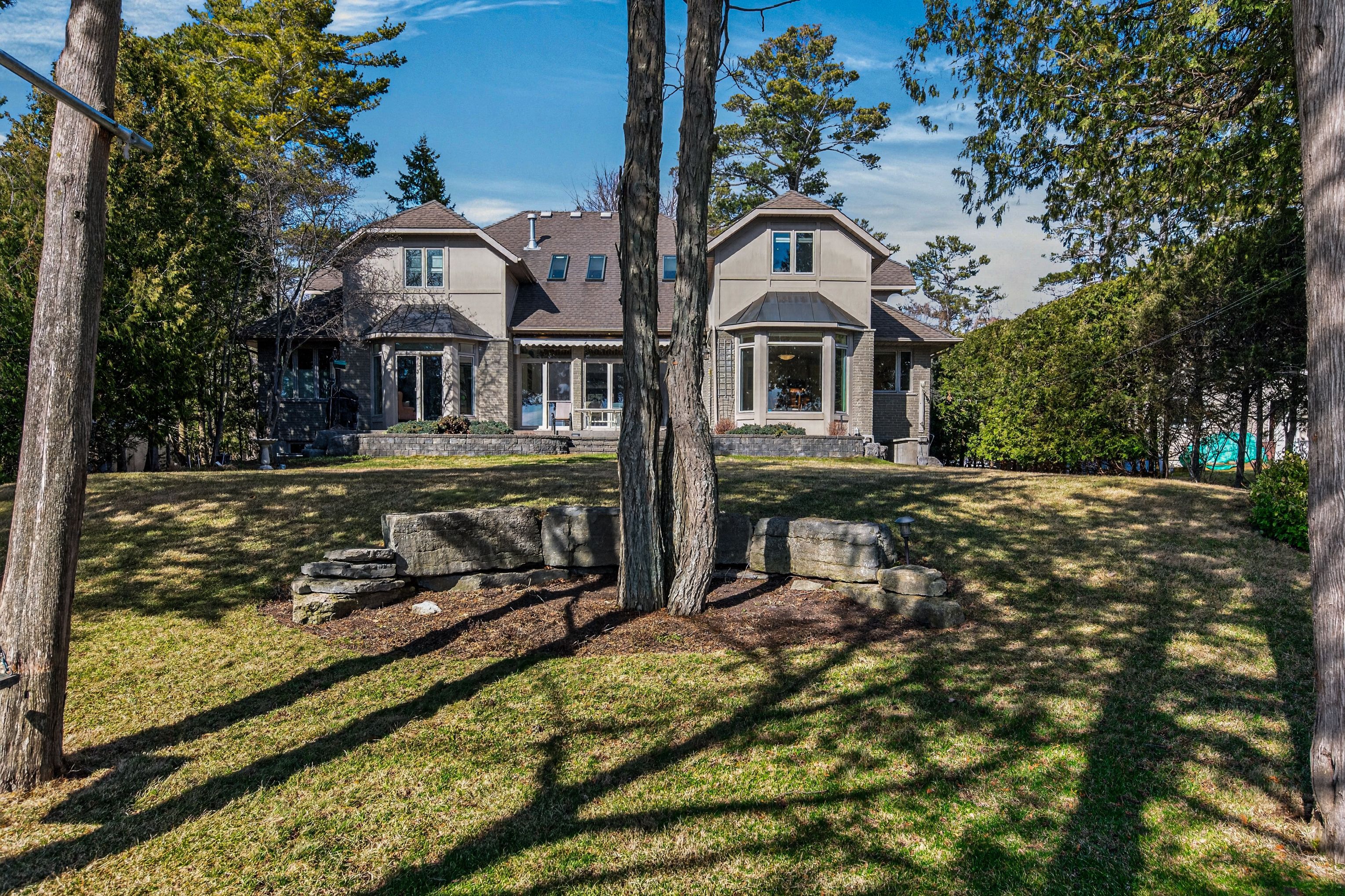 Welcome to 178 Nicholson Point Road, an extraordinary Lake Ontario estate with commanding west exposure views, 90 feet of deep, rocky shoreline, and nearly 5,000 sq. ft. of custom built luxury. Crafted by the Garofalo Brothers in 2002, this home combines timeless construction, thoughtful design, and an exceptional waterfront setting on a quiet, prestigious street. Inside, the home offers 5 bedrooms and 3.5 baths, including a main floor primary suite featuring a two sided fireplace, marble floors, marble countertops, and in floor heating in the spa inspired ensuite. The granite kitchen flows into a warm and inviting family room with a gas fireplace, while skylights on the upper level fill the home with natural light. The upper loft area also benefits from in floor heating, adding year round comfort to this versatile space. The walkout basement expands the living area and includes water treatment room, and ample potential for further storage. Additional highlights include an attached 2 car garage, limestone and stucco exterior, and a natural gas backup generator for peace of mind. Recent updates ensure comfort and efficiency, Furnace (2022), Two water heaters (2024), A/C (2020). Outdoors, enjoy the best of waterfront living with a 40 ft dock, perfect for swimming, boating, and taking in Kingston's iconic sunsets over Lake Ontario. A rare opportunity to own a beautifully built, meticulously maintained waterfront home in one of the region's most desirable enclaves.