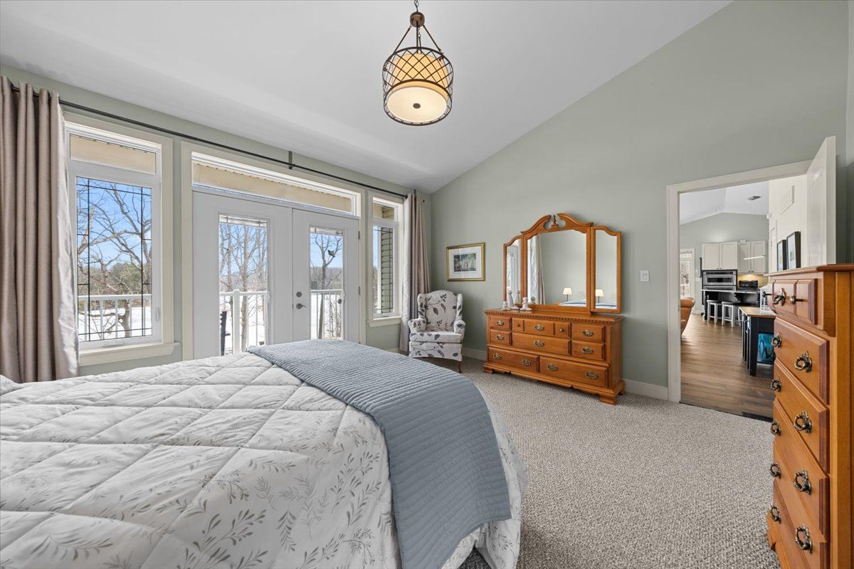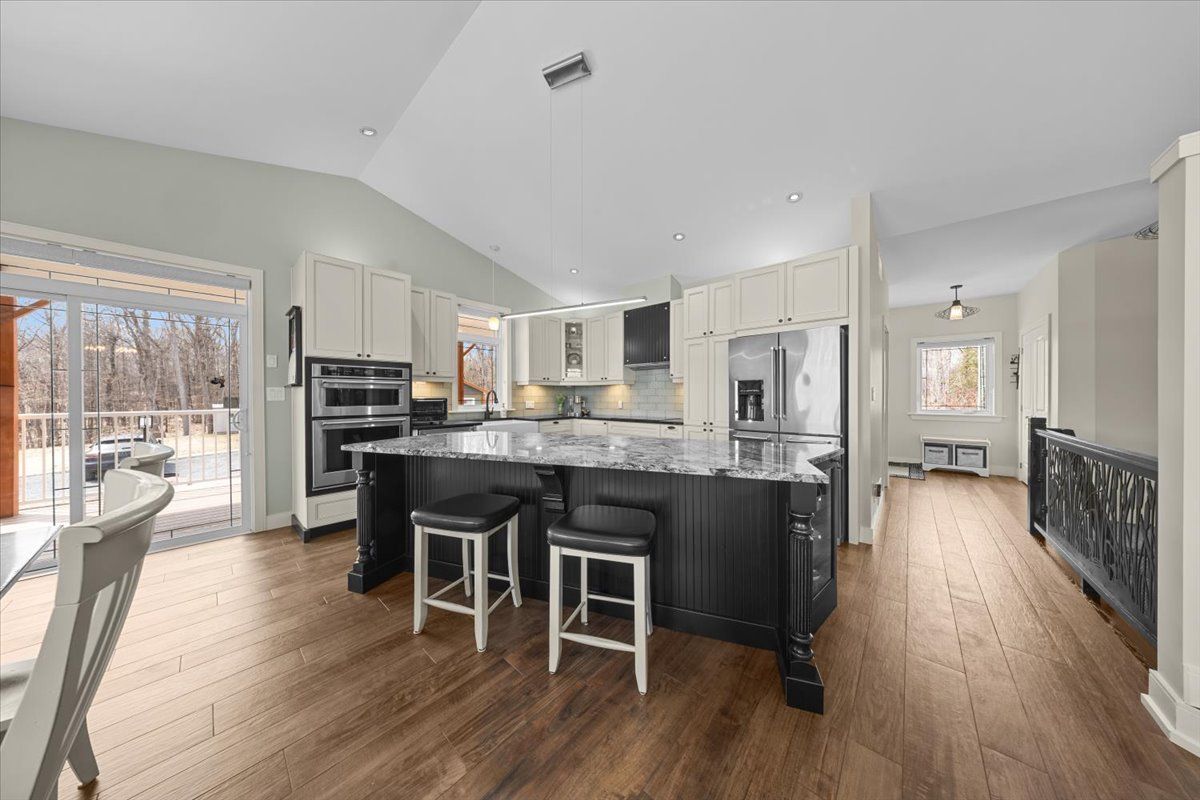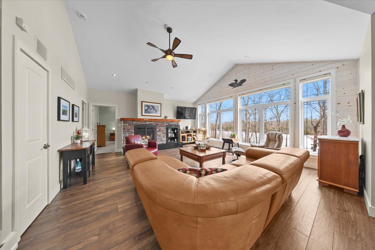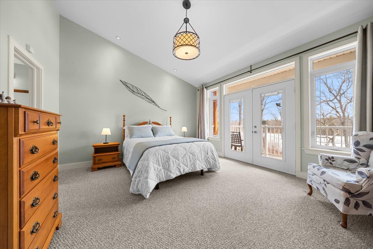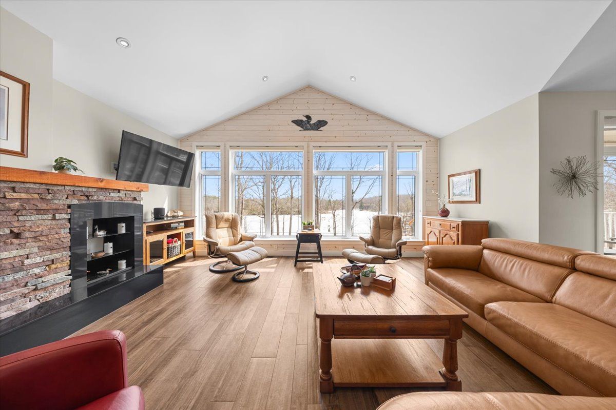 Welcome to a rare, custom-built waterfront bungalow with walkout, set on a private 13-acre estate with over 500 ft of shoreline on exclusive Fermoy Lake, a non-public lake known for its peaceful setting, excellent swimming, and fishing. Surrounded by mature hardwood forest and abundant wildlife, this property is only 10 minutes west of the town of Westport, offers true privacy and a connection to nature that is increasingly hard to find. Thoughtfully designed with over 3,200 sq ft of living space, this 5-bedroom home blends upscale finishes with practical, low-maintenance living. The sun-filled, south-facing main level features 9'-12' ceilings, expansive windows, and an open-concept layout with a stunning great room, natural stone fireplace, and a chef-inspired kitchen complete with a 10' granite island, farmhouse sink, and premium KitchenAid appliances. Continuous porcelain plank flooring enhances durability and flow. The walkout lower level offers radiant heated floors, bright living spaces, additional bedrooms, a full bath, and flexible space for recreation, work, or guests, plus a reinforced concrete safe room/cold storage. Built with high-performance construction including ICF foundation, spray foam insulation, radiant heating (home & garage), HRV, tankless water heater, and generator-ready systems. Outdoors, enjoy a sandy beach, floating dock, swim raft, lakeside firepit, multiple patios, and professionally landscaped grounds. Includes an oversized heated garage (2020) and a fully insulated Bunkie with Wi-Fi, heat & A/C. A truly one-of-a-kind waterfront lifestyle property.