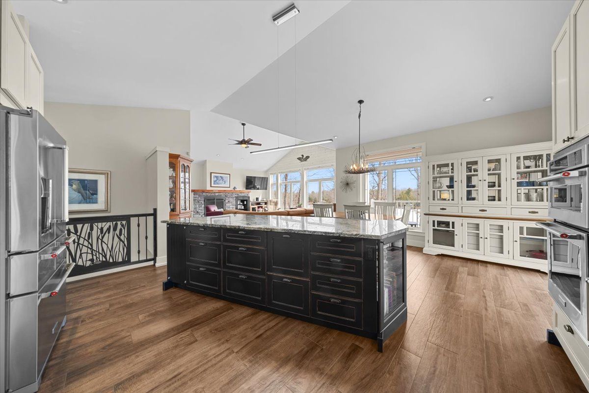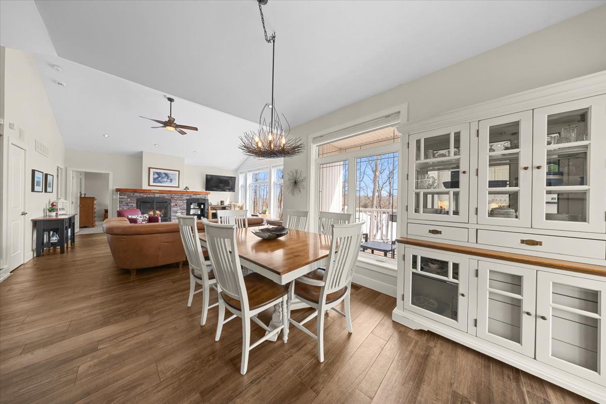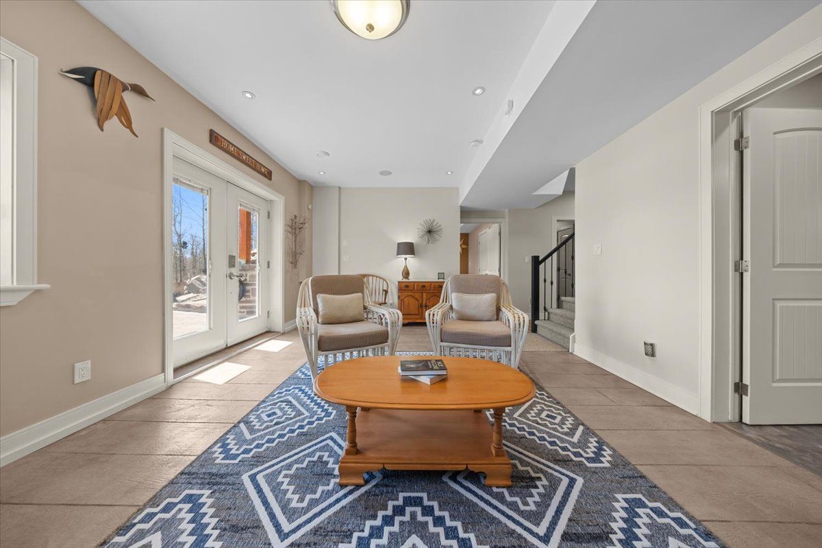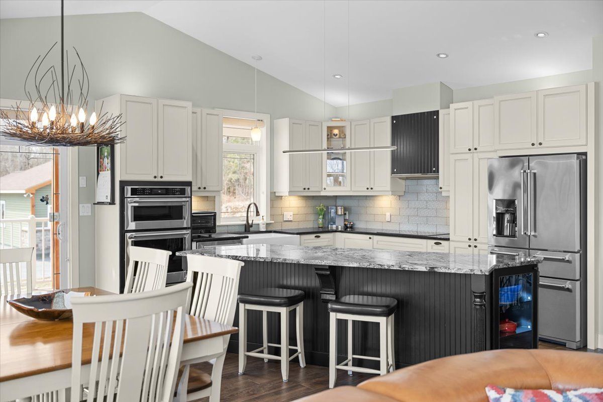 Welcome to a rare, custom-built waterfront bungalow with walkout, set on a private 13-acre estate with over 500 ft of shoreline on exclusive Fermoy Lake, a non-public lake known for its peaceful setting, excellent swimming, and fishing. Surrounded by mature hardwood forest and abundant wildlife, this property is only 10 minutes west of the town of Westport, offers true privacy and a connection to nature that is increasingly hard to find. Thoughtfully designed with over 3,200 sq ft of living space, this 5-bedroom home blends upscale finishes with practical, low-maintenance living. The sun-filled, south-facing main level features 9'-12' ceilings, expansive windows, and an open-concept layout with a stunning great room, natural stone fireplace, and a chef-inspired kitchen complete with a 10' granite island, farmhouse sink, and premium KitchenAid appliances. Continuous porcelain plank flooring enhances durability and flow. The walkout lower level offers radiant heated floors, bright living spaces, additional bedrooms, a full bath, and flexible space for recreation, work, or guests, plus a reinforced concrete safe room/cold storage. Built with high-performance construction including ICF foundation, spray foam insulation, radiant heating (home & garage), HRV, tankless water heater, and generator-ready systems. Outdoors, enjoy a sandy beach, floating dock, swim raft, lakeside firepit, multiple patios, and professionally landscaped grounds. Includes an oversized heated garage (2020) and a fully insulated Bunkie with Wi-Fi, heat & A/C. A truly one-of-a-kind waterfront lifestyle property.