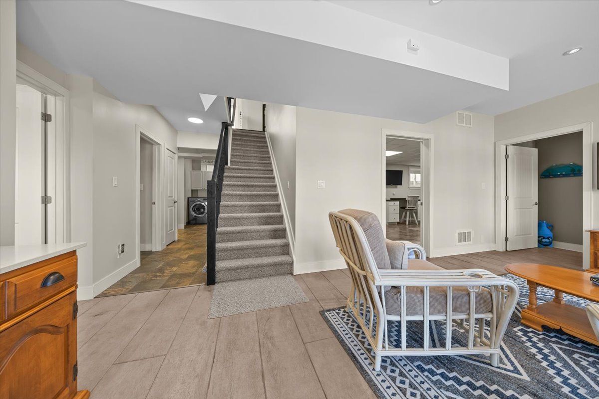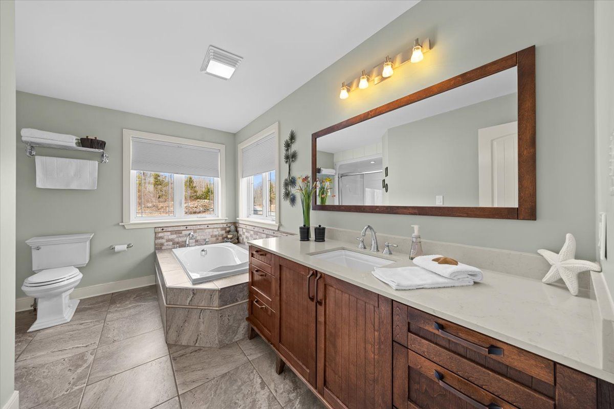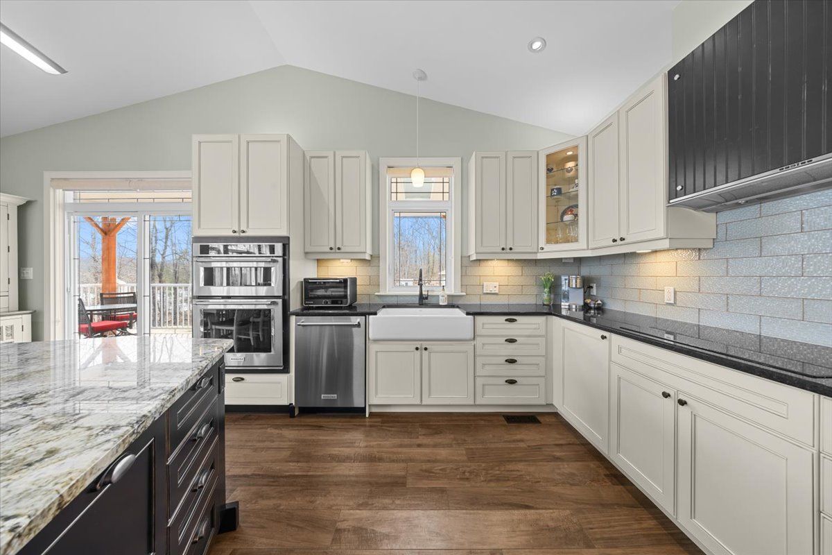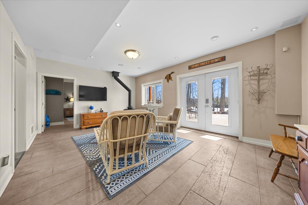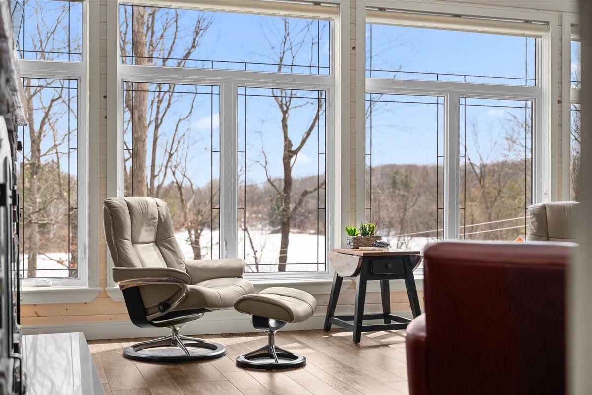 Welcome to a rare, custom-built waterfront bungalow with walkout, set on a private 13-acre estate with over 500 ft of shoreline on exclusive Fermoy Lake, a non-public lake known for its peaceful setting, excellent swimming, and fishing. Surrounded by mature hardwood forest and abundant wildlife, this property is only 10 minutes west of the town of Westport, offers true privacy and a connection to nature that is increasingly hard to find. Thoughtfully designed with over 3,200 sq ft of living space, this 5-bedroom home blends upscale finishes with practical, low-maintenance living. The sun-filled, south-facing main level features 9'-12' ceilings, expansive windows, and an open-concept layout with a stunning great room, natural stone fireplace, and a chef-inspired kitchen complete with a 10' granite island, farmhouse sink, and premium KitchenAid appliances. Continuous porcelain plank flooring enhances durability and flow. The walkout lower level offers radiant heated floors, bright living spaces, additional bedrooms, a full bath, and flexible space for recreation, work, or guests, plus a reinforced concrete safe room/cold storage. Built with high-performance construction including ICF foundation, spray foam insulation, radiant heating (home & garage), HRV, tankless water heater, and generator-ready systems. Outdoors, enjoy a sandy beach, floating dock, swim raft, lakeside firepit, multiple patios, and professionally landscaped grounds. Includes an oversized heated garage (2020) and a fully insulated Bunkie with Wi-Fi, heat & A/C. A truly one-of-a-kind waterfront lifestyle property.
