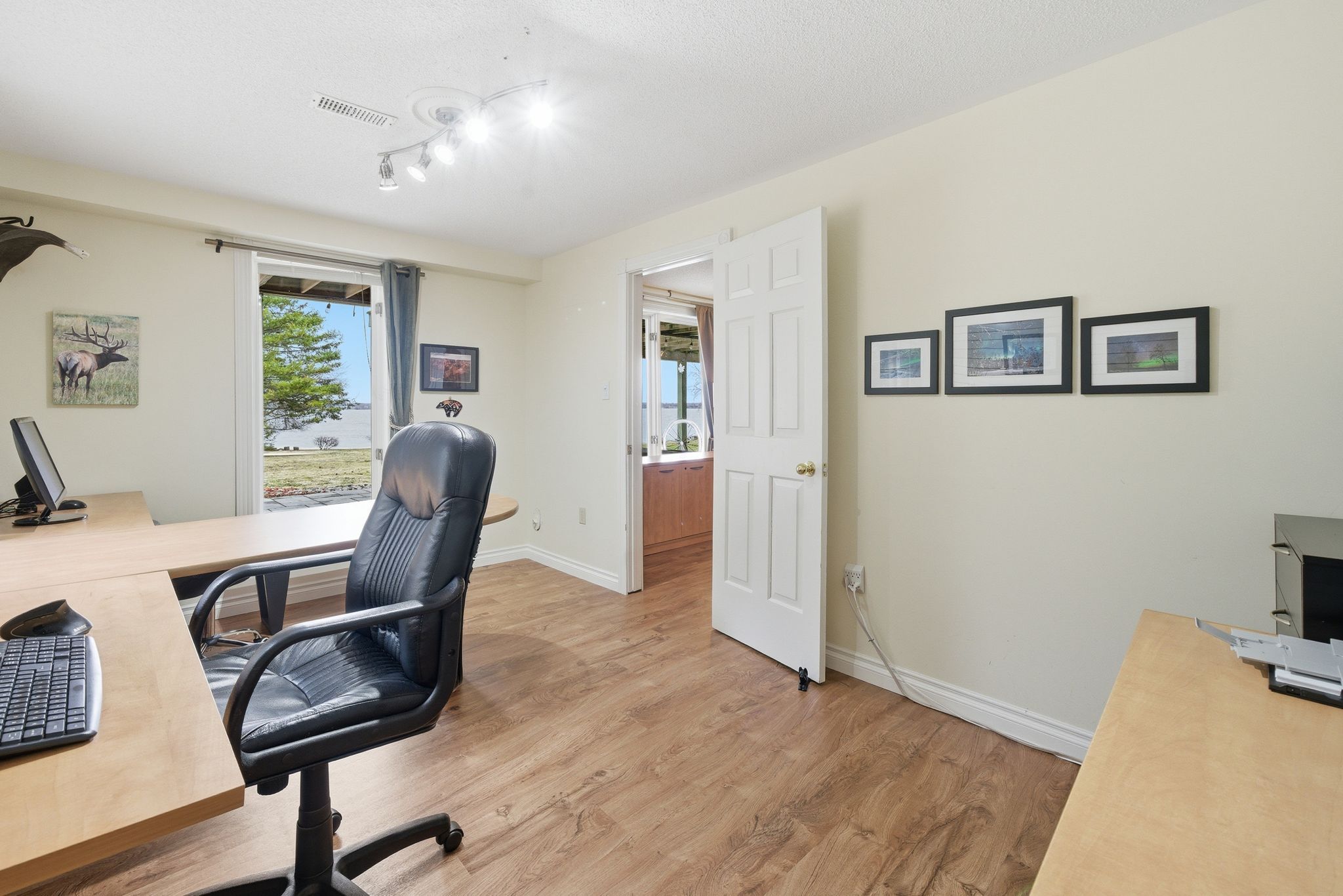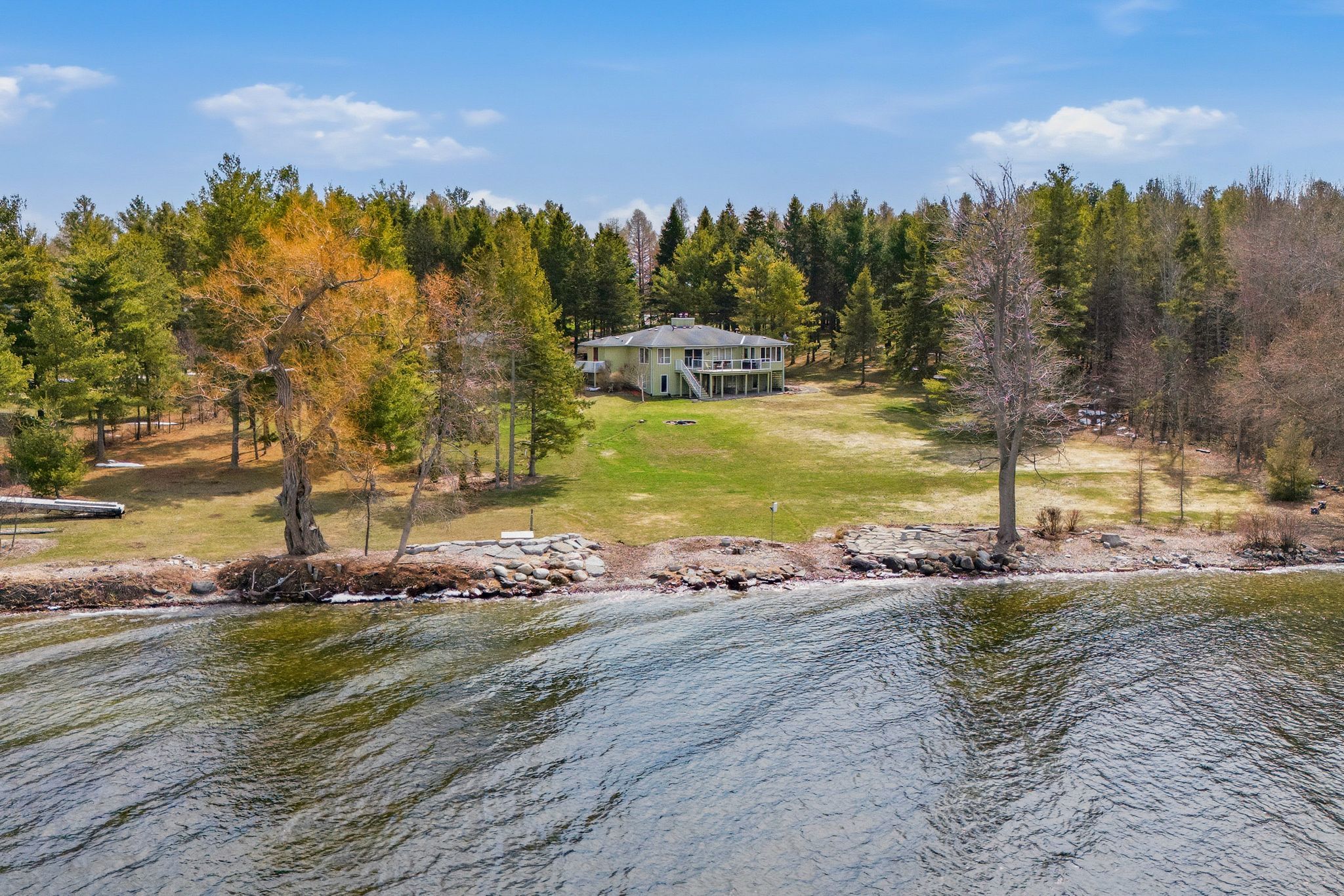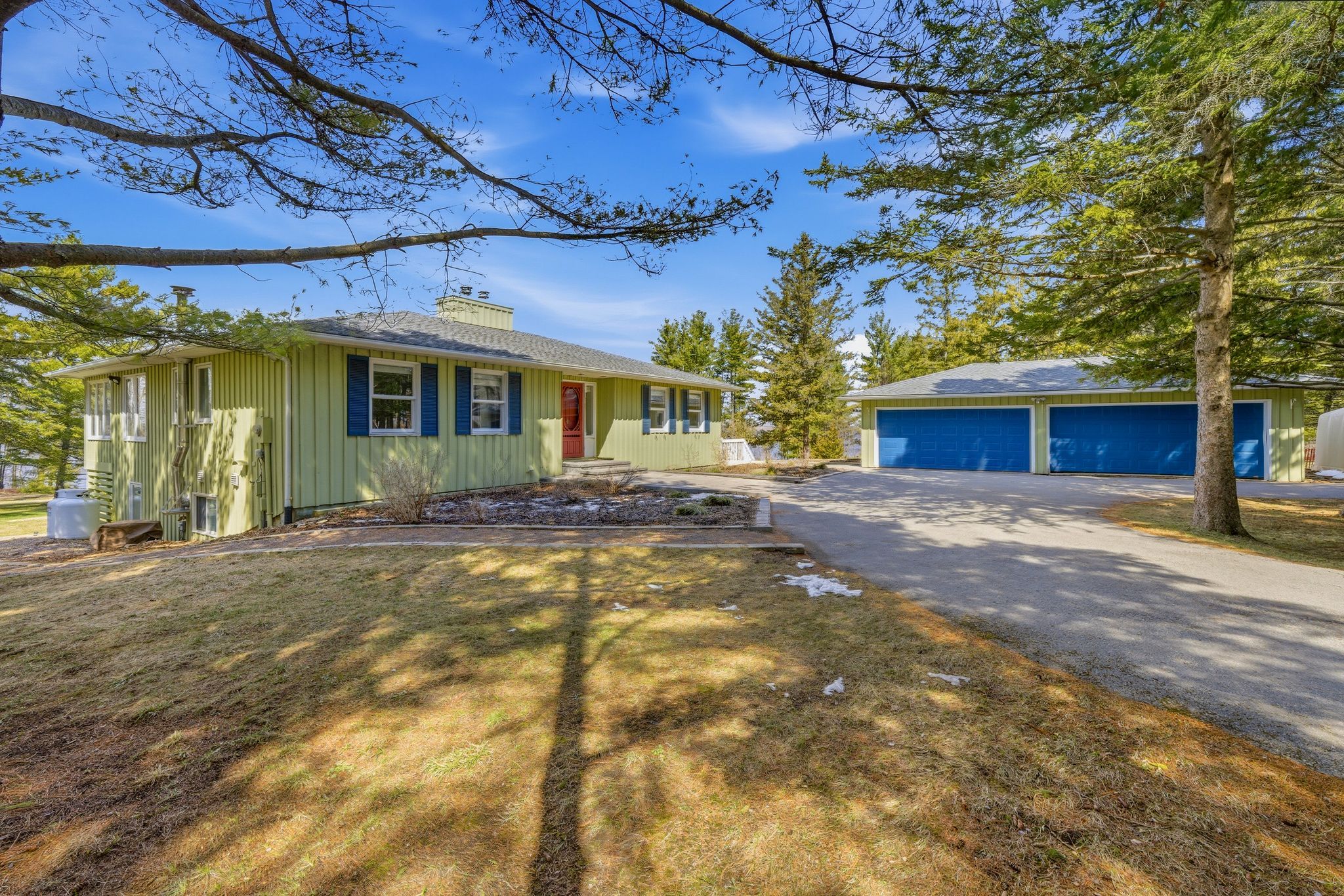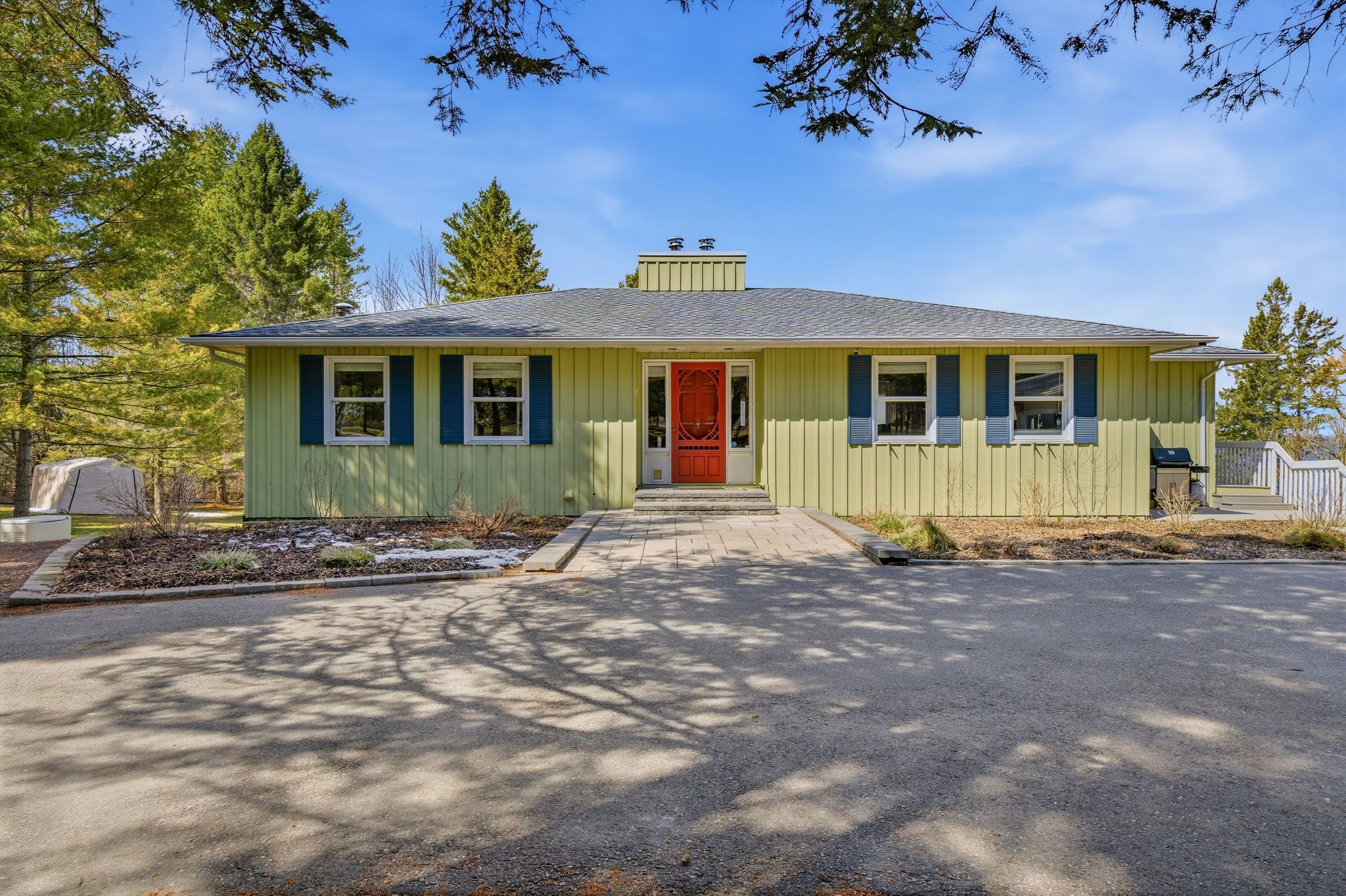 A Waterfront Retreat in Prince Edward County. Set along 275 feet of pristine waterfront on 3.4 acres of private, gently treed landscape, this naturally inviting property unfolds with a quiet sense of arrival. A meandering drive leads through mature pines to a thoughtfully positioned bungalow with walkout, where open lawns meet the shoreline and sunset views become part of daily life. Seamless Indoor-Outdoor Living defines the experience here, with curated exterior spaces including a broad deck and stone patio extending toward a bonfire gathering area and the water's edge. The setting feels both refined and effortless, designed for long summer evenings and unhurried mornings alike. Inside, the home is defined by light, scale, and an intuitive connection to its surroundings. Principal rooms are generously proportioned, with expansive windows framing uninterrupted views across green space and water. A sunroom and walkout deck offer year-round vantage points, while the main floor primary suite with ensuite is privately set for comfort and ease. A den on this level provides a flexible retreat or studio. Space to Gather, Space to Unwind continues in the walkout lower level, where a spacious recreation area, two additional bedrooms, a three-piece bath, laundry with storage, and an optional bedroom, office, or hobby room create a thoughtful balance between hosting and quiet retreat. Complementing the residence, a detached dual-bay garage presents excellent opportunity for workshop use, recreational gear, or future refinement. Along the shoreline, the water is clean and inviting-ideal for swimming, boating, canoeing, or kayaking-while the setting attracts an ever-changing tapestry of birdlife. Step beyond to peaceful country roads for walking and cycling, with Picton, Waupoos, and Lake on the Mountain all within easy reach. Private. Peaceful. Distinctly County.