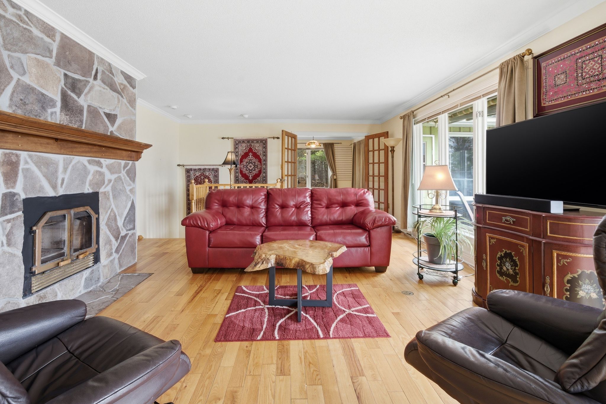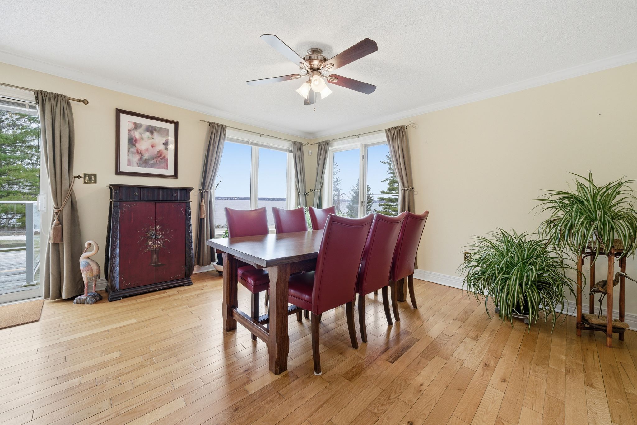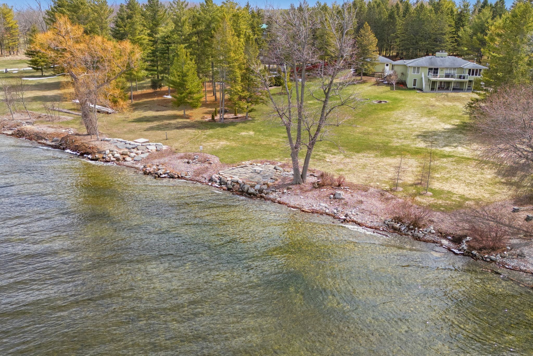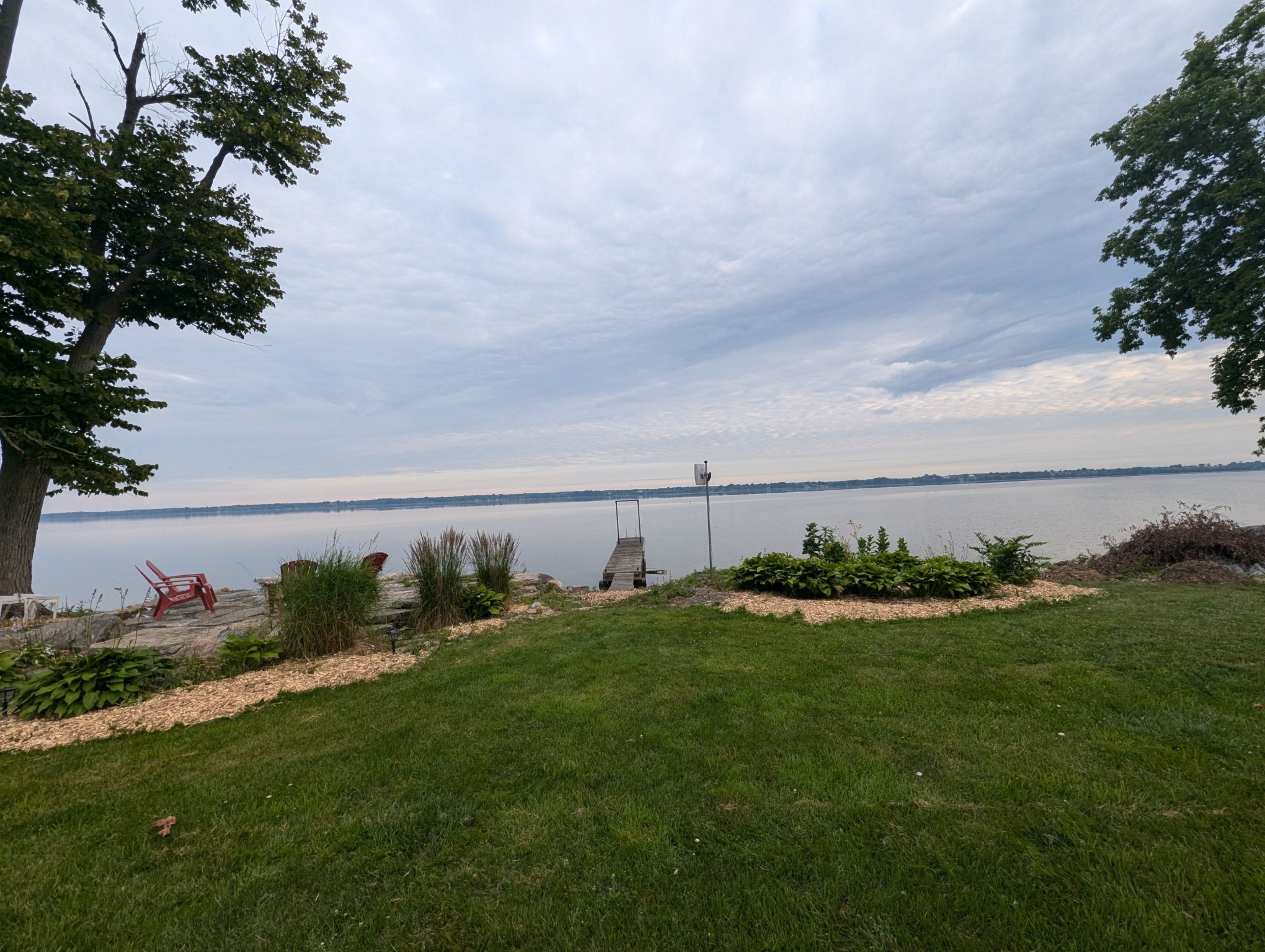 A Waterfront Retreat in Prince Edward County. Set along 275 feet of pristine waterfront on 3.4 acres of private, gently treed landscape, this naturally inviting property unfolds with a quiet sense of arrival. A meandering drive leads through mature pines to a thoughtfully positioned bungalow with walkout, where open lawns meet the shoreline and sunset views become part of daily life. Seamless Indoor-Outdoor Living defines the experience here, with curated exterior spaces including a broad deck and stone patio extending toward a bonfire gathering area and the water's edge. The setting feels both refined and effortless, designed for long summer evenings and unhurried mornings alike. Inside, the home is defined by light, scale, and an intuitive connection to its surroundings. Principal rooms are generously proportioned, with expansive windows framing uninterrupted views across green space and water. A sunroom and walkout deck offer year-round vantage points, while the main floor primary suite with ensuite is privately set for comfort and ease. A den on this level provides a flexible retreat or studio. Space to Gather, Space to Unwind continues in the walkout lower level, where a spacious recreation area, two additional bedrooms, a three-piece bath, laundry with storage, and an optional bedroom, office, or hobby room create a thoughtful balance between hosting and quiet retreat. Complementing the residence, a detached dual-bay garage presents excellent opportunity for workshop use, recreational gear, or future refinement. Along the shoreline, the water is clean and inviting-ideal for swimming, boating, canoeing, or kayaking-while the setting attracts an ever-changing tapestry of birdlife. Step beyond to peaceful country roads for walking and cycling, with Picton, Waupoos, and Lake on the Mountain all within easy reach. Private. Peaceful. Distinctly County.