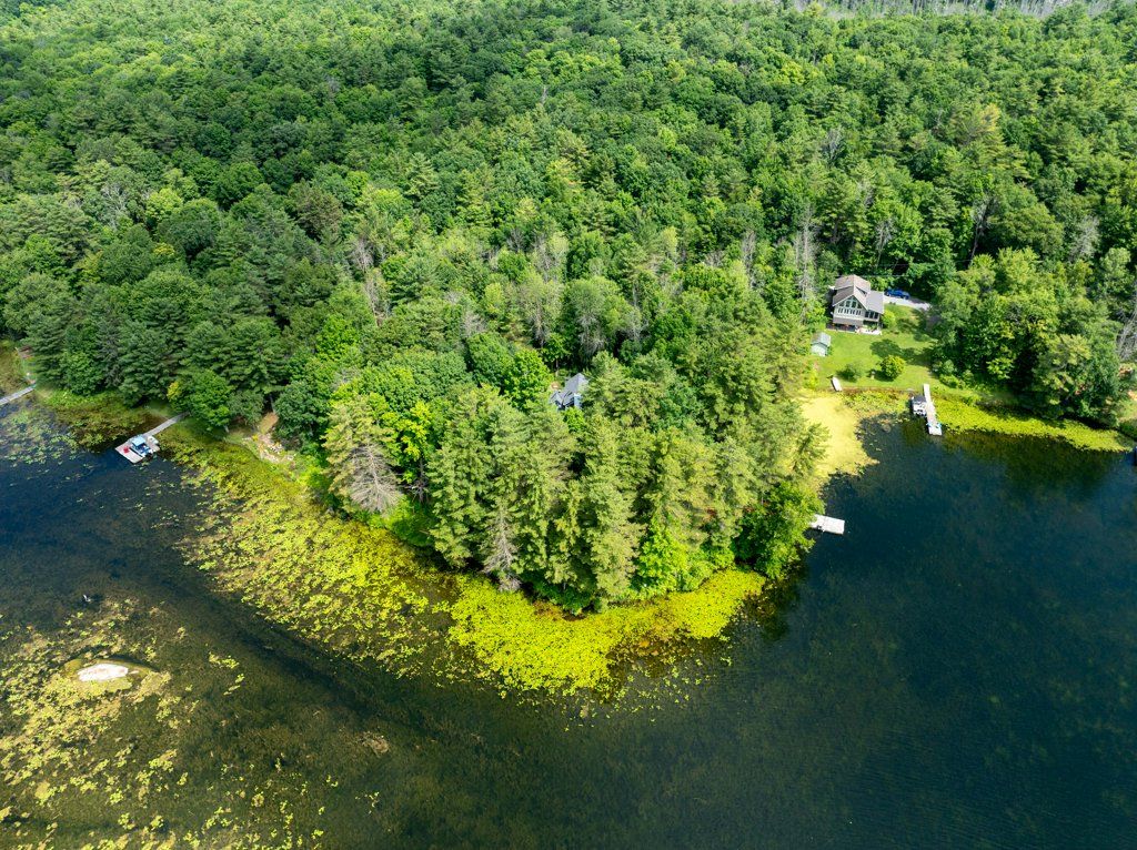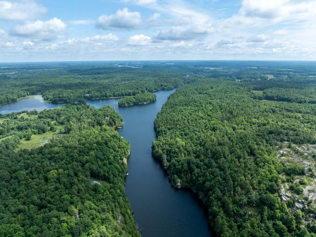 This 3-bedroom, 2.5-bath home features 2,000 sq ft of finished living space, including a main floor primary bedroom, and sits on over 2 acres of private mixed-wood forest. On picturesque Whitefish Lake, enjoy clean, deep waterfront at the dock, with south-facing views across to the Rock Dunder Nature Reserve. Located on a quiet well-maintained road with year-round neighbours, this property is less than 50 minutes to downtown Kingston, Smiths Falls, and Brockville, and just over 90 minutes to downtown Ottawa.Entering the tiled foyer, you are greeted by views through the show stopping great room that features soaring 23+' vaulted ceilings, skylights, pine floors, and a central wood-burning fireplace that anchors the space with warmth and character. Expansive windows and two patio doors frame stunning views of the lake and open onto the large deck. The custom kitchen features rich wood cabinetry with newer counter top, a large double sink, and opens onto the wraparound deck for sunny days and spacious screened-in porch for relaxing rainy evenings. The main floor primary suite includes patio doors to the deck with lake views, a large walk-in closet and ensuite bath with skylights, plus an additional linen closet. This level also includes main floor laundry for single floor living.Upstairs, the open landing overlooks the great room and floods the home with natural light. Two generous bedrooms with lake-facing dormer windows share a bright 3-piece bathroom.The finished lower level offers additional living space, including a 2-piece bathroom, built-in bookcases, excellent storage, and utilities.Outside offers an oversized 2-car garage with 500 sq ft of space above, 550' of private shoreline and deep water off the dock-perfect for swimming or mooring your boat, with the seller previously keeping a sailboat. Offers will be presented April 29th at 12:00pm.
