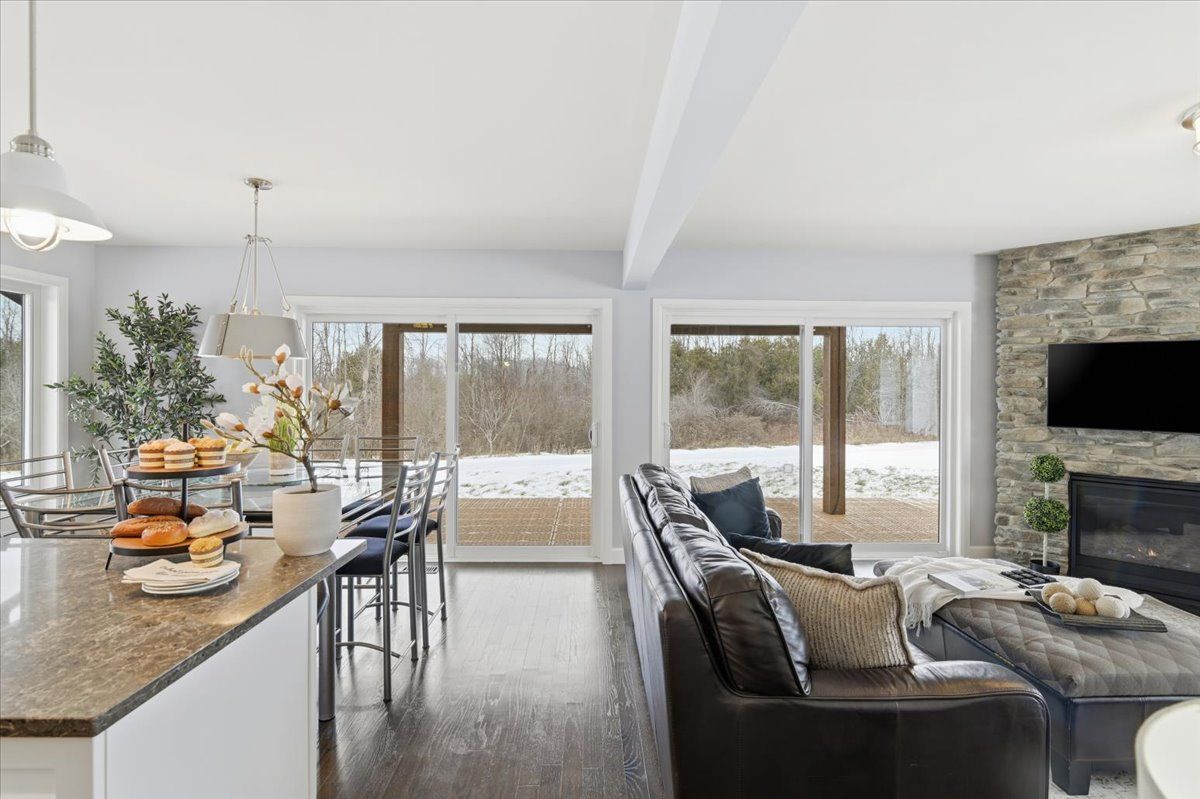 Extraordinary Luxury Waterfront Estate on the Scugog River. This rare 29-acre waterfront estate offers absolute privacy, luxury, and incredible income potential. The property features approximately 2,000 feet of pristine riverfront with direct access to the Trent-Severn Waterway. It provides an ideal setting for boating, fishing, kayaking, or simply enjoying breathtaking sunsets.The estate is secluded among mature forests, creating a peaceful retreat. The grounds include private walking trails, toboggan hills, a hockey-rink-sized unfinished pond, and an oversized garden. An all-season dock with a fire pit provides the perfect space for entertaining or hosting guests.The residence offers over 1,600 sq. ft. of bright, open living space. The main floor includes a spacious bedroom, a home office, a family room, and a large kitchen and dining area designed for entertaining. The primary retreat features a private balcony overlooking the water.The property includes an 868 sq. ft. insulated unfinished basement that offers expansion potential for a home gym, theatre, or additional bedrooms. Additional features include an oversized four-car garage and a cold cellar for storage. Modern utilities include a 200-amp electrical service, satellite TV, internet, and a cell phone booster.Wildlife is abundant on the property, with frequent sightings of bald eagles, ospreys, deer, and trumpet swans. The estate is also suitable for use as a luxury waterfront rental, wedding or event venue, or private retreat.The location is convenient, with downtown Lindsay just 15 minutes away for shopping, dining, and Flato Academy Theatre. Highway 407 is 30 minutes away, and Toronto Pearson International Airport is 80 minutes away.This estate offers a rare combination of serenity, recreation, and luxury living, making it ideal for both private enjoyment and income-generating opportunities.