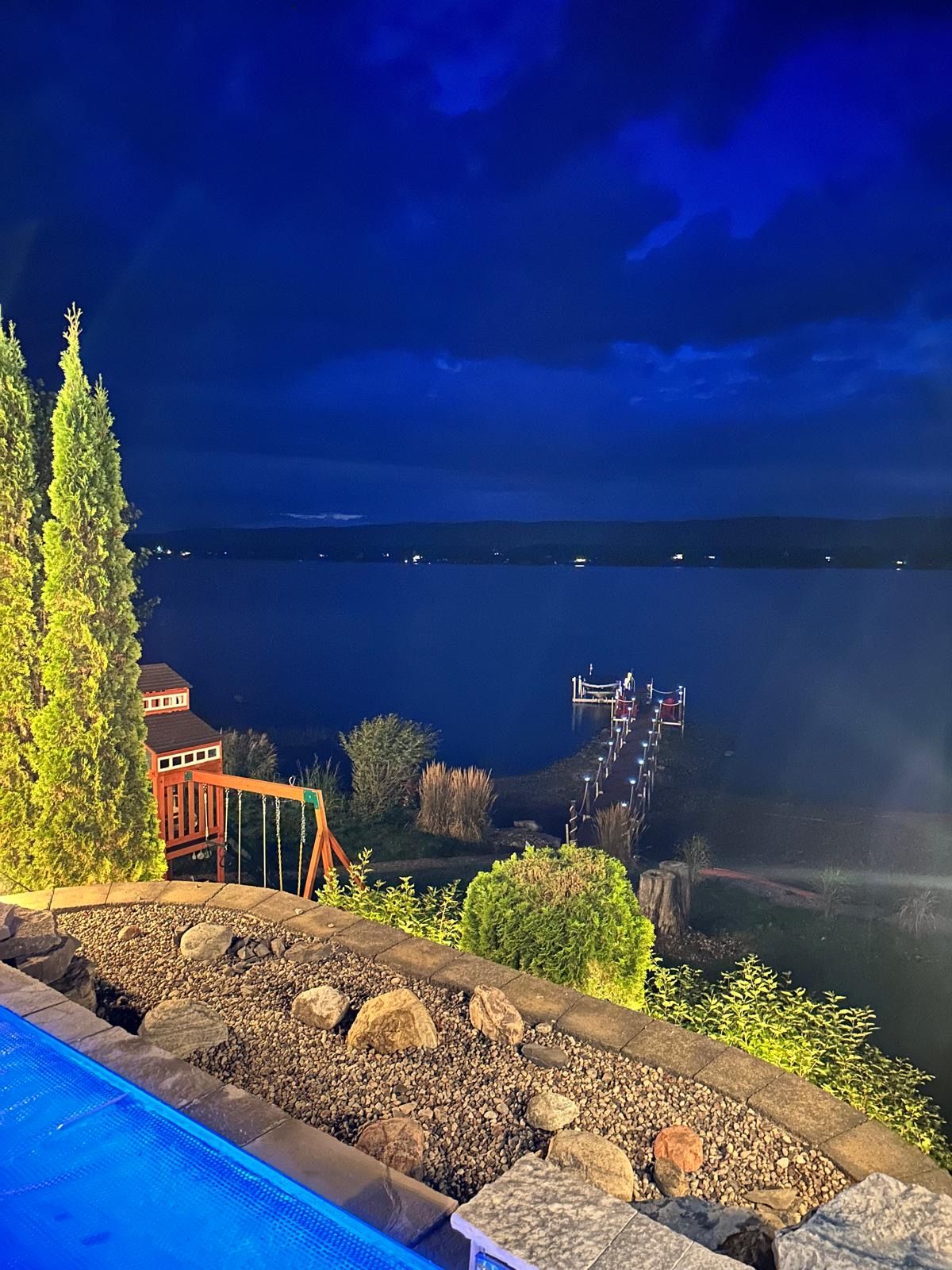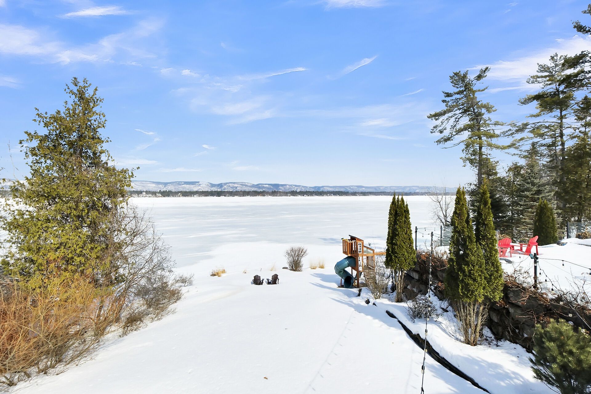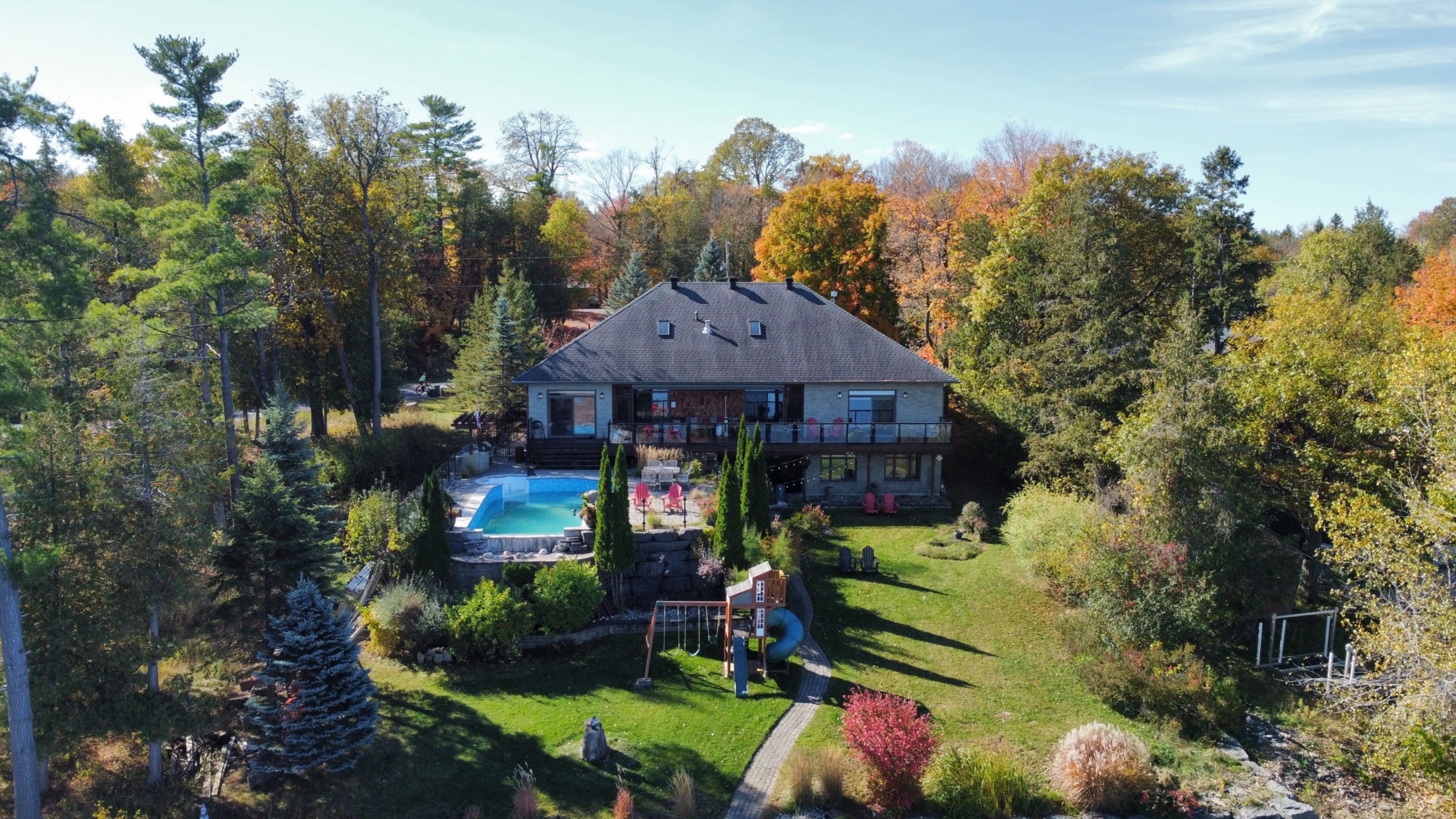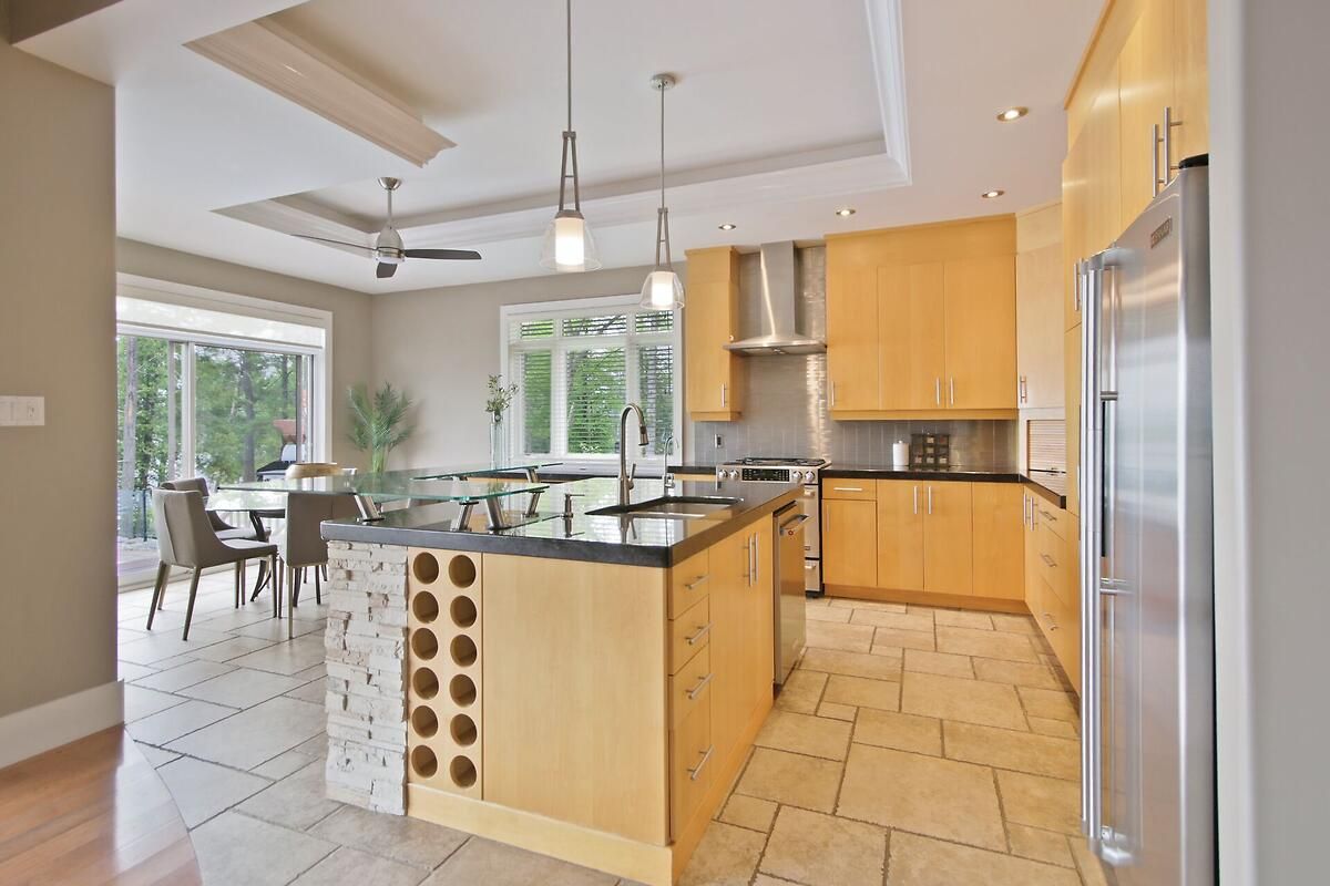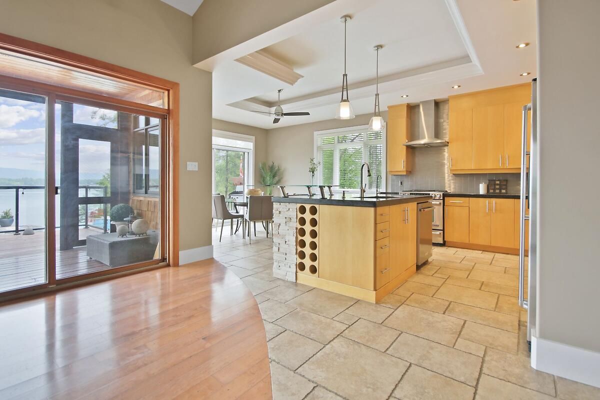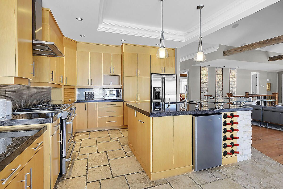 This gorgeous 5 bedroom, 3 bathroom waterfront home is truly one of a kind. Enter into the foyer and immediately be taken away by the breath taking views of the hills across the stunning waterfront. The foyer opens up to the spectacular living room featuring a fireplace, 2 skylights and 2 large sliding doors leading out to the screened in deck. This grand living room is open to the eat-in kitchen featuring stainless steel appliance, built in wine racks, ample cupboard space and an addition sliding door leading out to the massive deck. On the main level you will also find the incredibly spacious primary bedroom featuring a walk-in closet, 4 piece ensuite, fireplace and additional sliding doors leading out to the deck. This is the perfect couples retreat in your very own home. On the lower level you will find a centrally built wet bar and home theatre, perfect for entertaining, along with addition sitting space, 4 bright bedrooms and a 6 piece bathroom. The 1800 sqft heated garage with high ceilings offers ample storage space and opportunity for car lifts. The most notable part of this one of a kind home is by far the outdoor space. Not only is the screened in deck, massive uncovered deck, and large yard a wonderful space to enjoy all to yourselves or host guests, but the in-ground infinity pool and sandy shore line is every outdoor lovers dream. Enjoy a day of boating on the Ottawa River from your very own private dock. The spectacular waterfront offers prime views of sunrise and sunset all summer long and year round sunsets that are truly remarkable. No detail was missed inside or out in the design of this stunning property. NEW IN 2025 : NEW ULTRA VOILET SYSTEM, REVERSE OSMOSIS SYSTEM, FRIDGE, MICROWAVE, WASHER, DISHWASHER,HEAT PUMPS, POOL COMPUTER, POWDER ROOM TOILET, 3 WATER SOFTENERS , new 17k BOILER & JET PUMP - ALL NEW THIS YEAR.