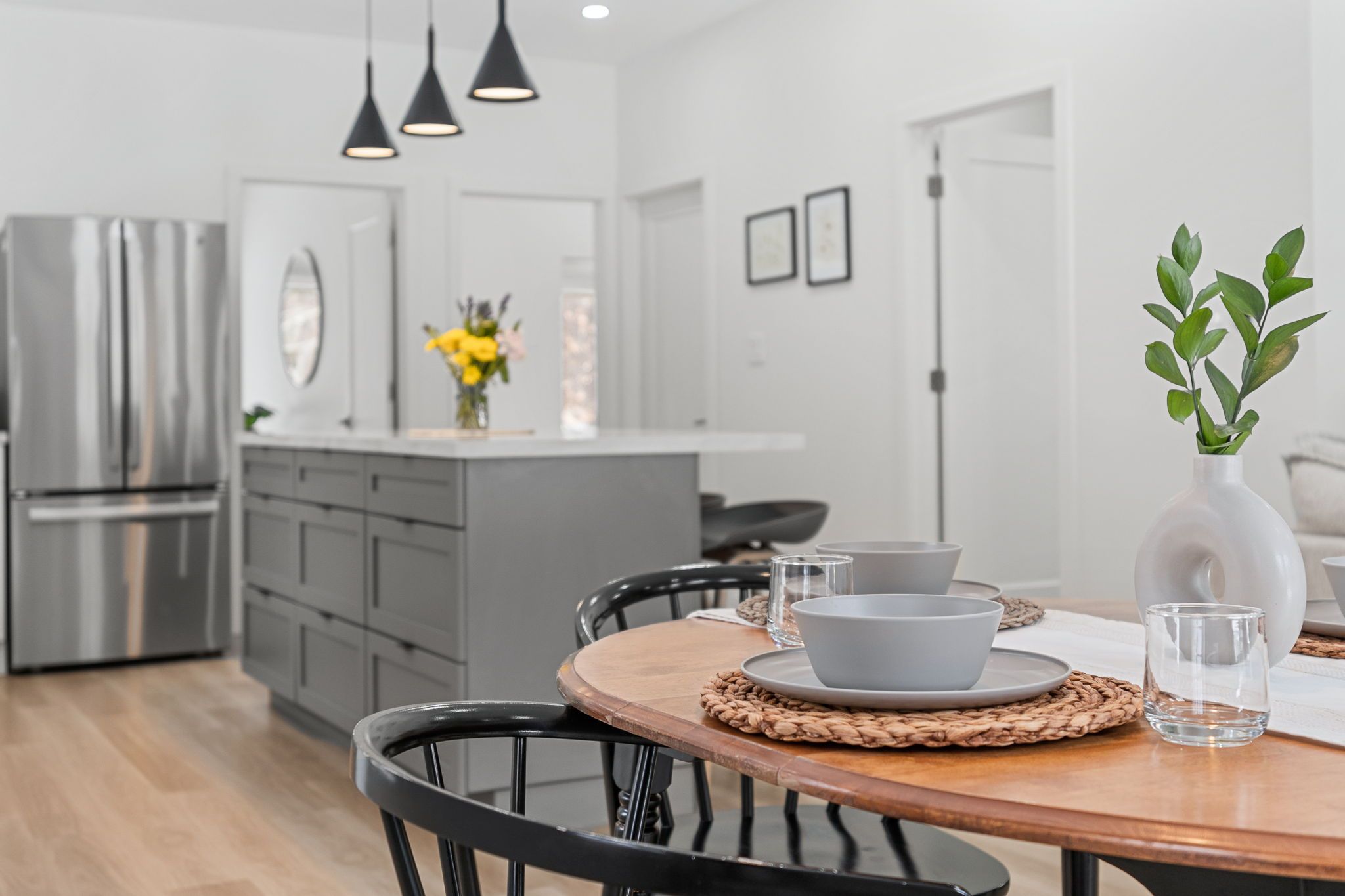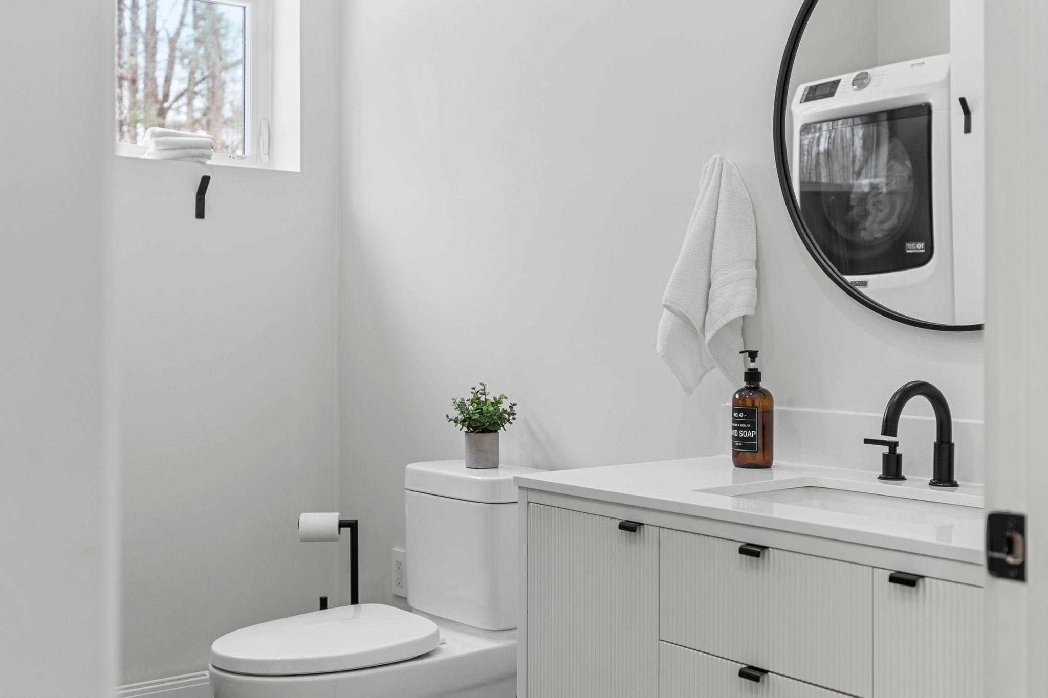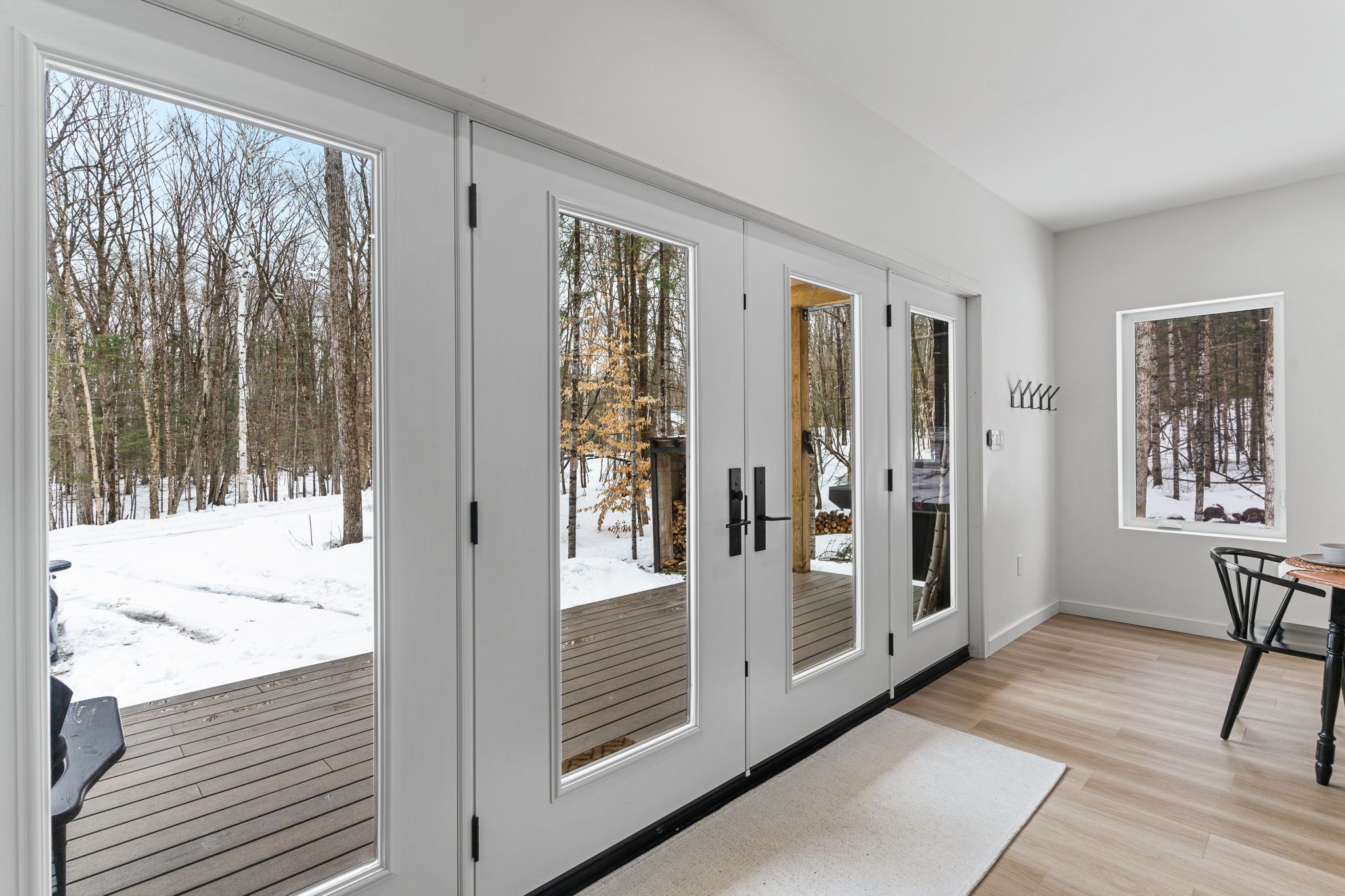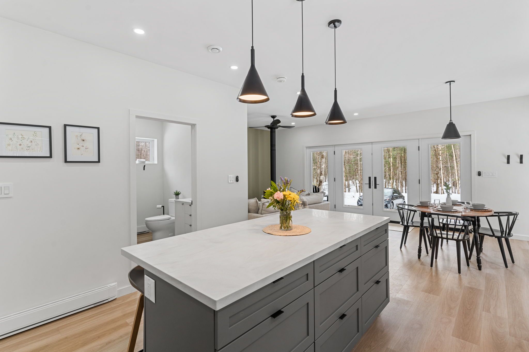 Experience the ultimate 4-season Eagle Lake retreat at 1366 Basshaunt Lake Road, a stunning modern bungalow completed in 2023. Nestled on a private, well-treed lot, this home welcomes you with a spacious covered front veranda - the perfect spot to enjoy your morning coffee while surrounded by the quiet of the forest. Inside, the bright and airy open-concept living space is defined by natural light and a cozy woodstove that provides a warm, central hearth for winter gatherings. The sleek, contemporary kitchen is a chef's delight, featuring Corian countertops, stainless steel appliances, and an oversized island designed for social gatherings and casual dining. The home offers two generous bedrooms, including a primary suite with a private walkout to the backyard. Outside, the level property offers plenty of usable space, a dedicated firepit area for starlit evenings, and a handy storage shed. Built for low-maintenance living, the home features a durable metal roof, efficient mini-split heating and cooling, and a sleek, modern bathroom with an integrated stackable laundry. Located in the premium Eagle Lake area, you are within walking distance of the Basshaunt Lake public access and just minutes from Eagle Lake's best amenities. Spend your days at Sir Sam's Ski & Ride, indulge in the spa and fine dining at Sir Sam's Inn, or enjoy the public sandy beach and boat launch at Eagle Lake. With an successful short-term rental history, this turn-key property is ready to serve as your private four-season retreat or a high-performing investment in Haliburton.