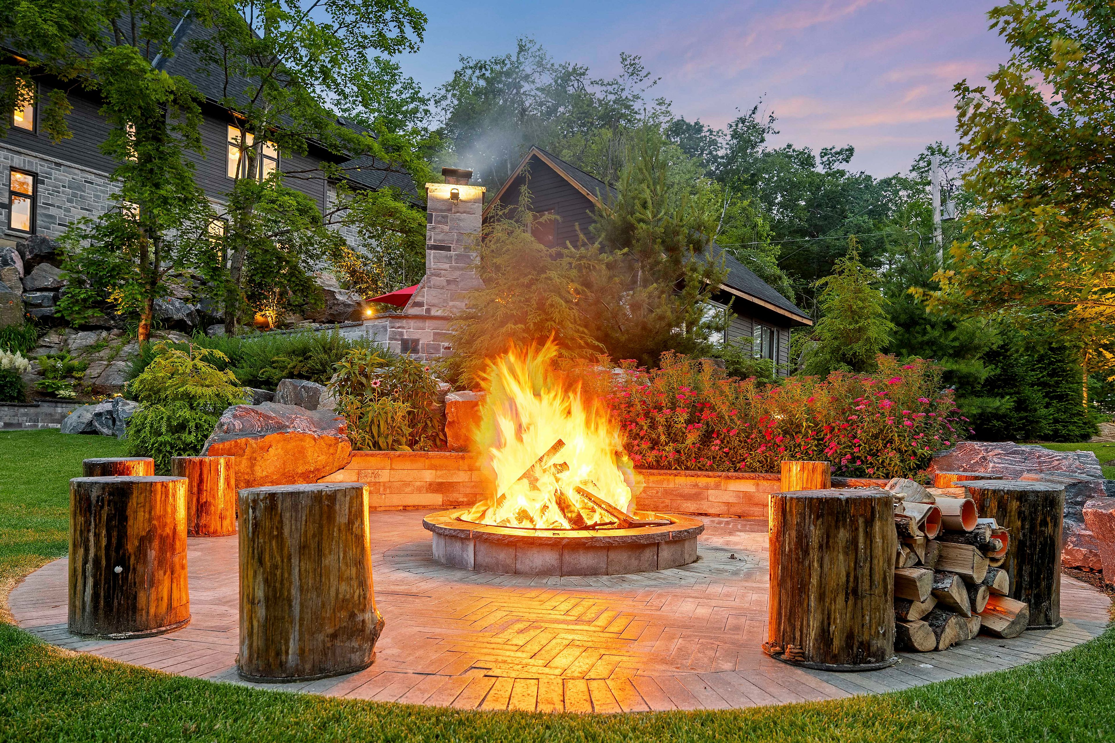 - Exterior Features: Built-In-BBQ, Deck, Hot Tub, Landscape Lighting, Landscaped, Lawn Sprinkler System, Lighting, Patio, Privacy, Year Round Living