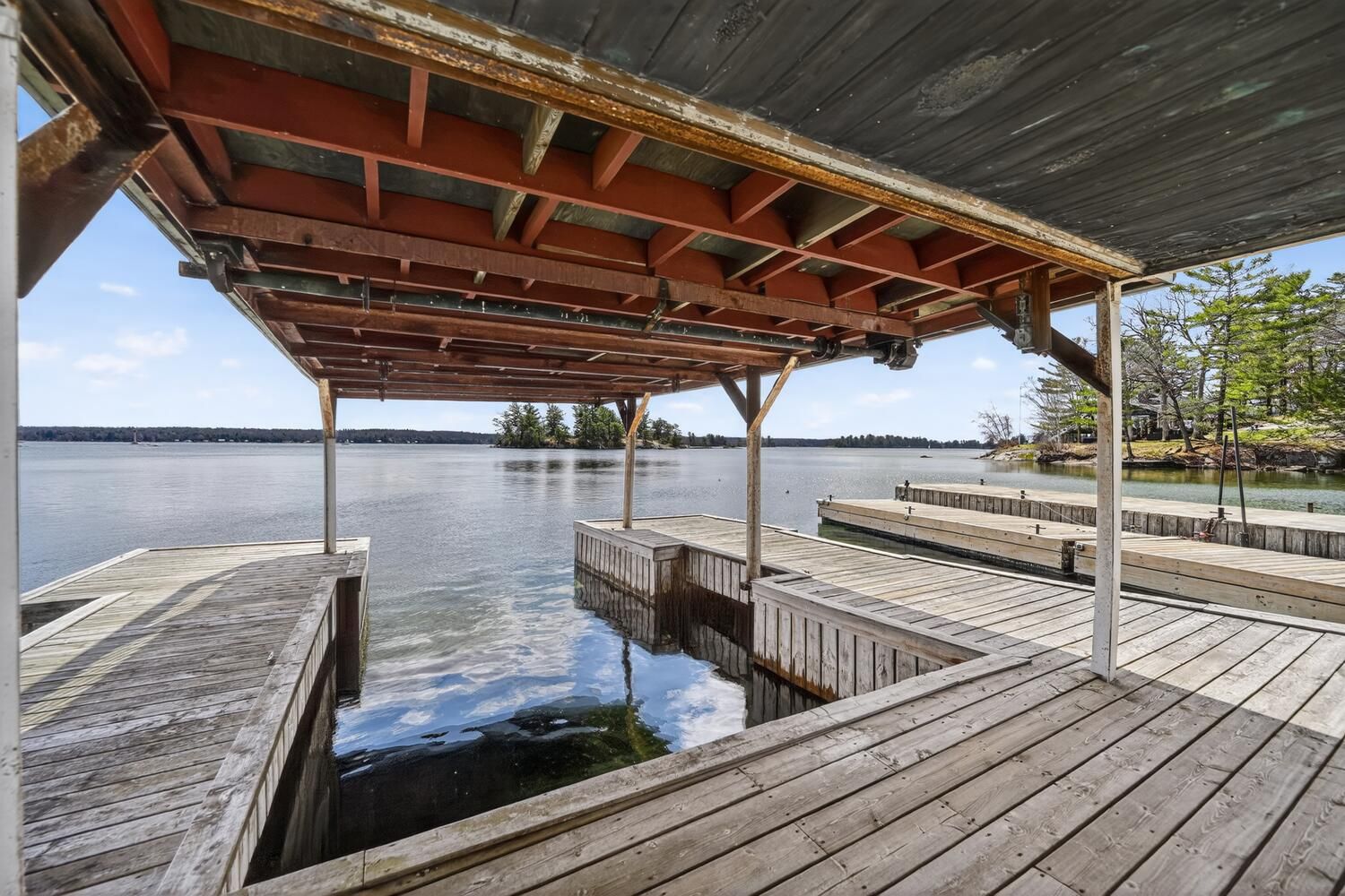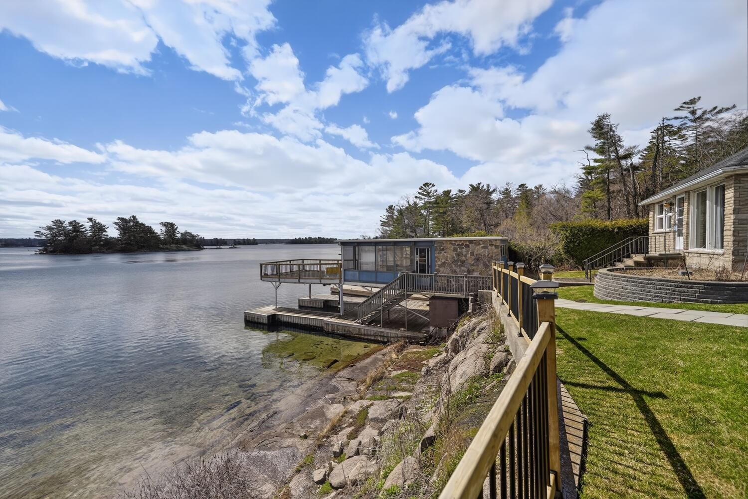 Make 2026 the year you answer the river's call. Located in the Brockville Narrows, this property sits at the gateway to the 1000 Islands, one of the most scenic and sought-after waterfront regions in the area. It's a setting that offers both natural beauty and a true sense of escape while still being close to everyday conveniences. This charming 3-bedroom, 1-bath home offers the kind of waterfront lifestyle people dream about. Set in a quiet neighborhood just minutes from Brockville, you'll enjoy peaceful surroundings and front-row views of the big ships passing by. Step inside through the foyer and into a spacious living room with an additional sitting area that could easily serve as a dining room, depending on your needs. Large windows along this level fill the home with natural light and showcase beautiful river views throughout. Further down the hall, you'll find a generous eat-in kitchen, renovated around 2015, with plenty of space for family meals and entertaining. Just a few steps away is the mudroom and laundry area for added convenience. The hallway off the kitchen leads to 2 beds, a large PR, and a 4-piece bath. Outside, the large covered dock is the perfect place for your toys. A rare find, the cantilever boathouse adds even more value and versatility to this property. It includes 2 bedrooms, living space, a convenient 2-piece bathroom, hydro (100 amp), a kitchenette with a built-in stove and fridge combination, and a railed sun deck. Perfect for guests, extended family, or simply enjoying life by the water, this unique feature truly sets the property apart. It could be a lively hangout for the kids, a space for sleepovers, a hobby room, or even a workspace, although with views like these, getting any work done might be a challenge. The detached double-car garage is a wonderful feature for winter parking or could easily serve as a workshop.
