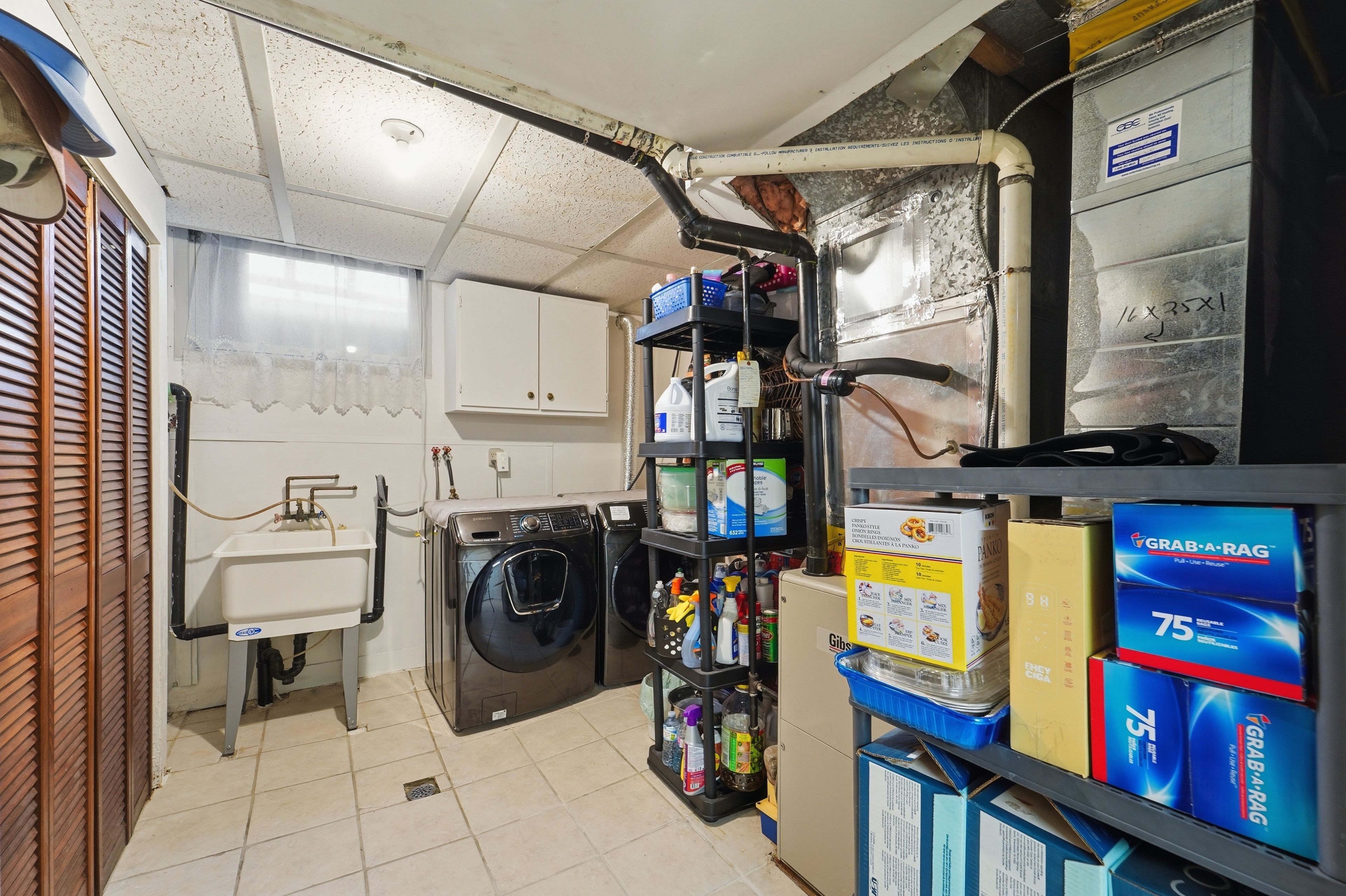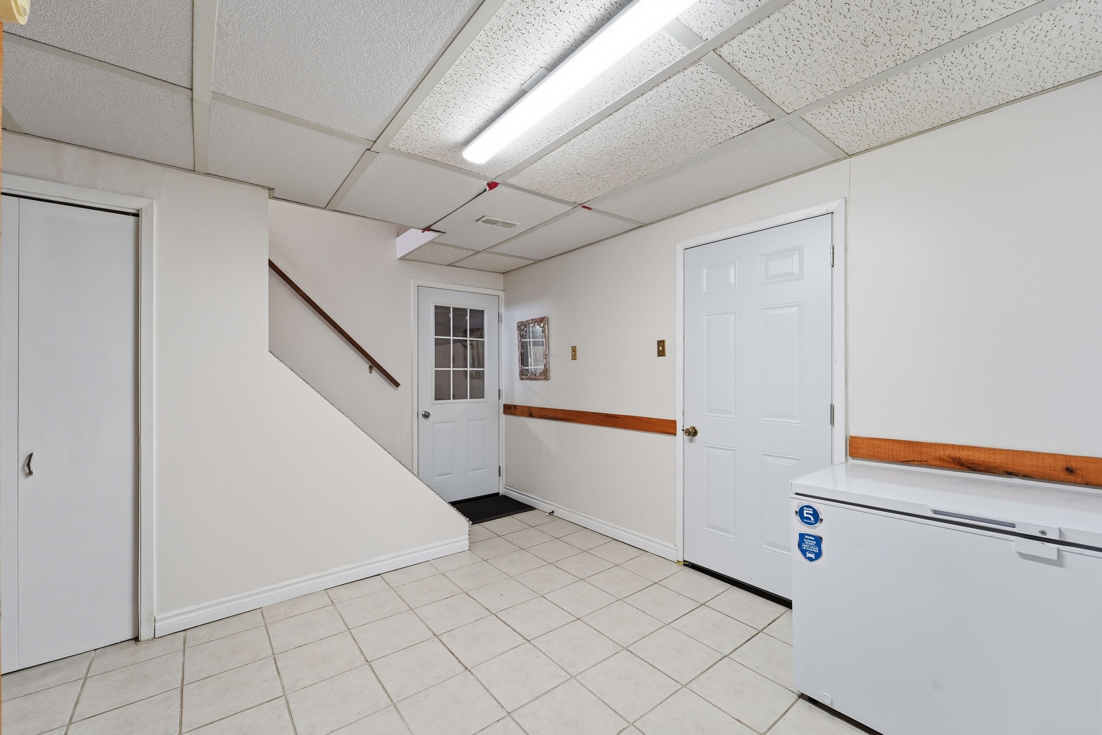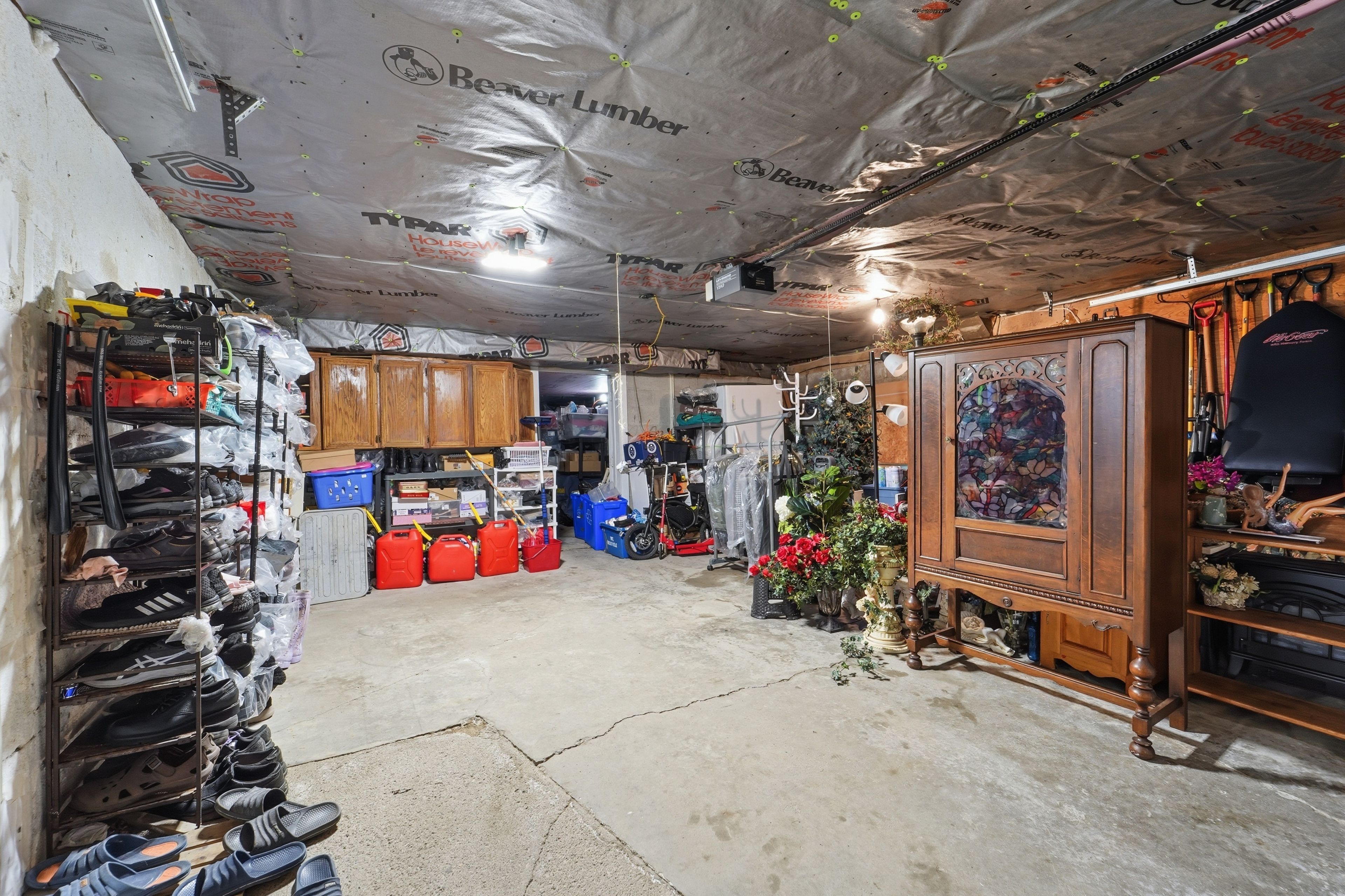 - Interior Features: Auto Garage Door Remote, Bar Fridge, Built-In Oven, Carpet Free, Countertop Range, Floor Drain, Generator - Partial, Guest Accommodations, In-Law Capability, Sewage Pump, Storage, Storage Area Lockers, Suspended Ceilings, Water Heater, Water Softener