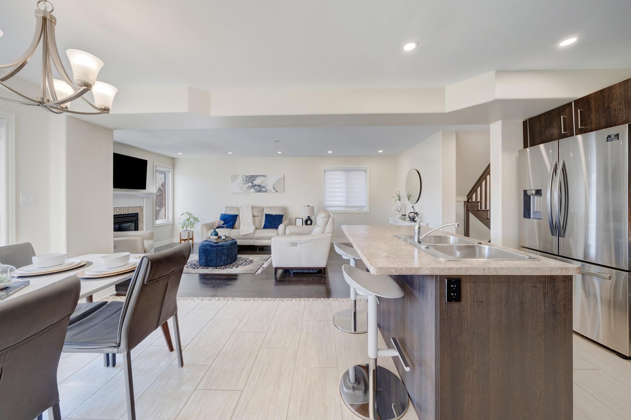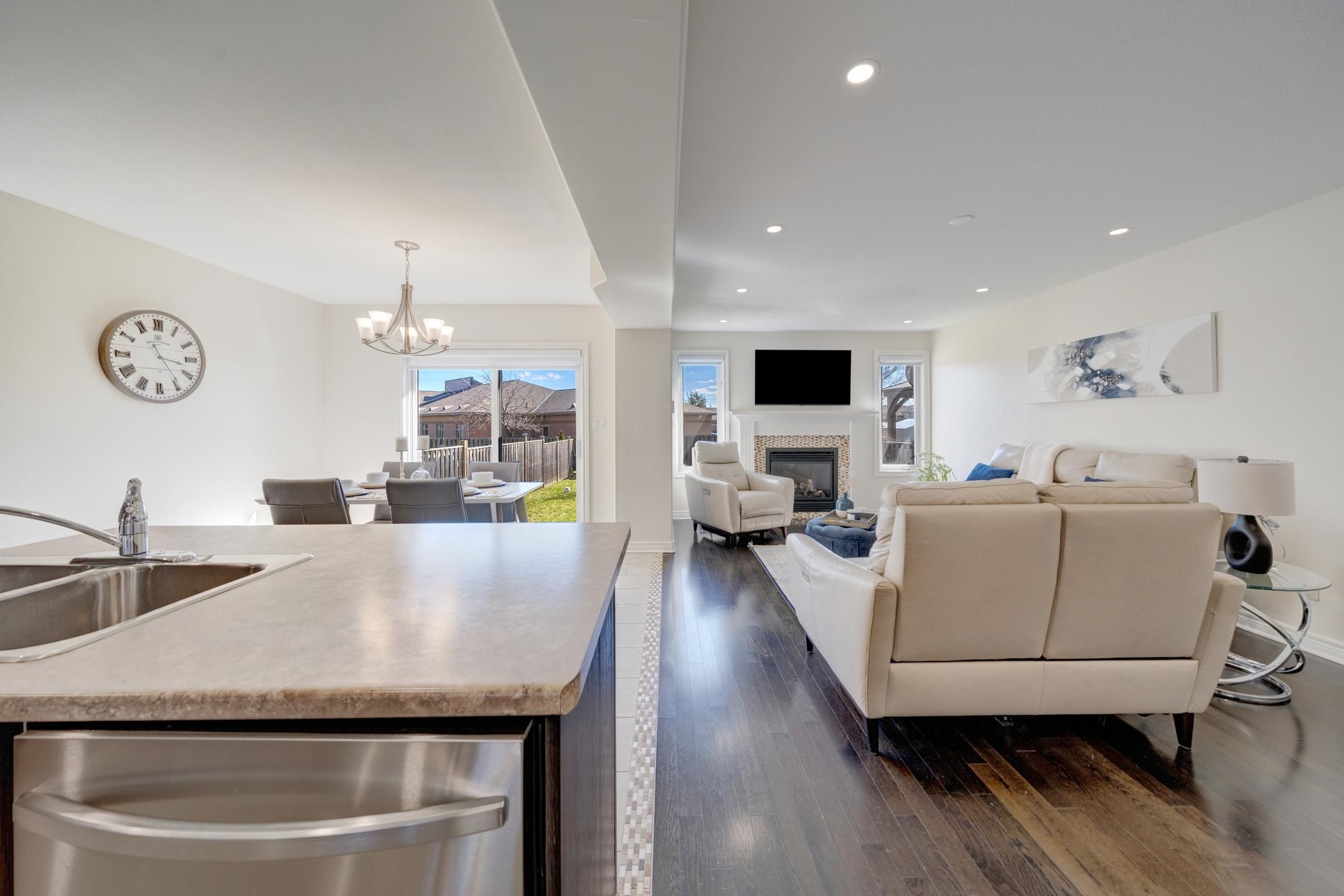 Welcome to this stunning, move-in ready detached home in one of Niagara Falls' most sought-after and rapidly growing communities. Featuring 3 spacious bedrooms plus a versatile bonus room/home office, this property offers the perfect blend of comfort, style, and functionality for today's modern lifestyle. Enjoy a bright open-concept layout with hardwood flooring throughout (no carpets) and a warm, inviting living room with a gas fireplace, ideal for both relaxing and entertaining. The beautifully designed kitchen showcases a center island, double sinks, stylish backsplash, and ample cabinetry, flowing seamlessly into the dining area with a walk-out to a large, fully fenced backyard-perfect for family gatherings and outdoor enjoyment. The upper level features a spacious primary retreat with a walk-in closet and a luxurious 5-piece ensuite, along with brand new vanities in the bathrooms and generously sized additional bedrooms. The bonus room provides flexibility for a home office, nursery, or additional living space. Additional highlights include a double car garage with inside entry, a deep 134.85 ft lot offering exceptional outdoor potential, second-floor laundry for added convenience, and a true turnkey, move-in ready condition. Located in a prime, family-friendly neighborhood, just minutes to top-rated schools, shopping, Niagara YMCA, QEW access, and Costco, and a short drive to Niagara Falls' world-class attractions .An exceptional opportunity for families, professionals, or investors to own in a high-demand, high-growth area.