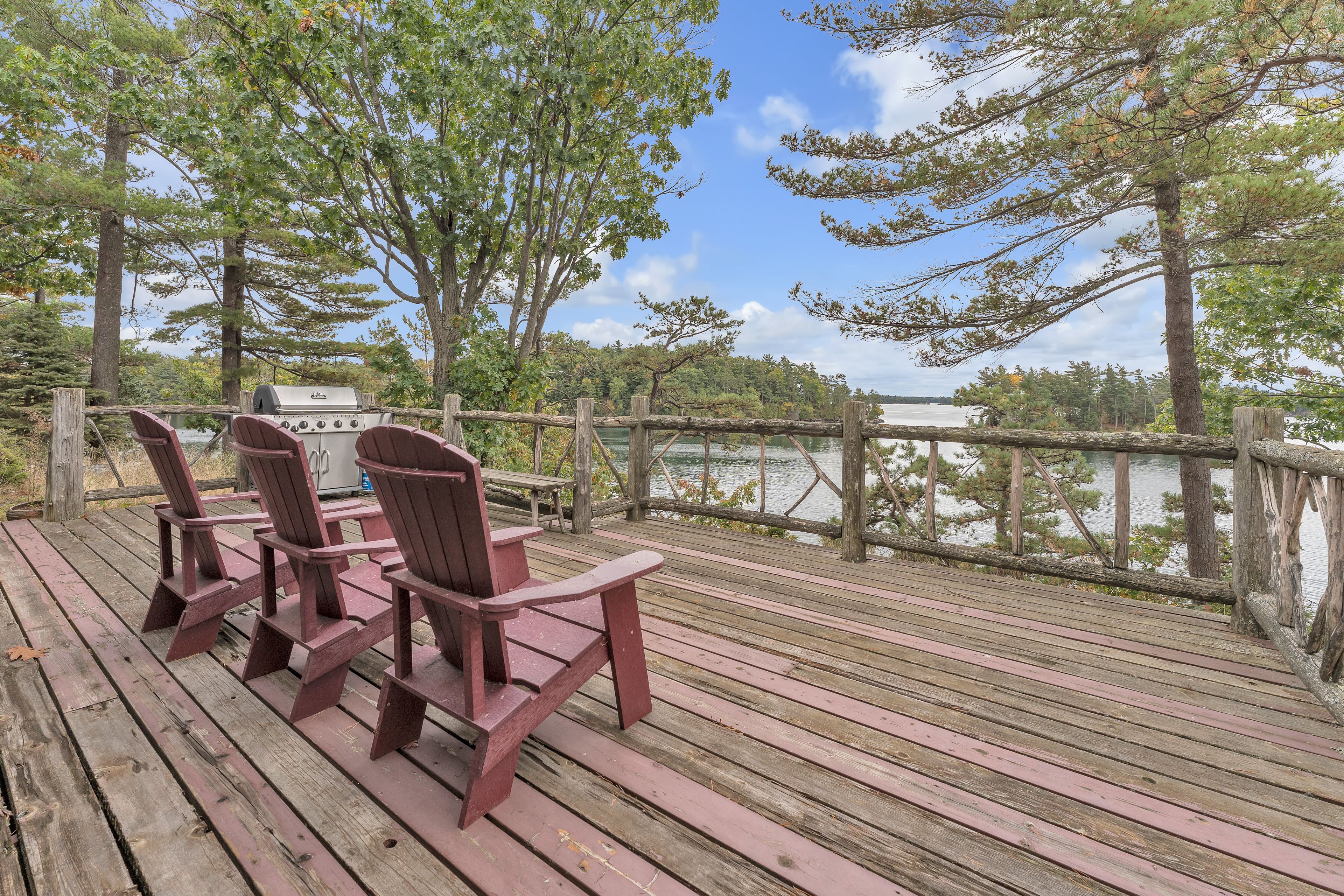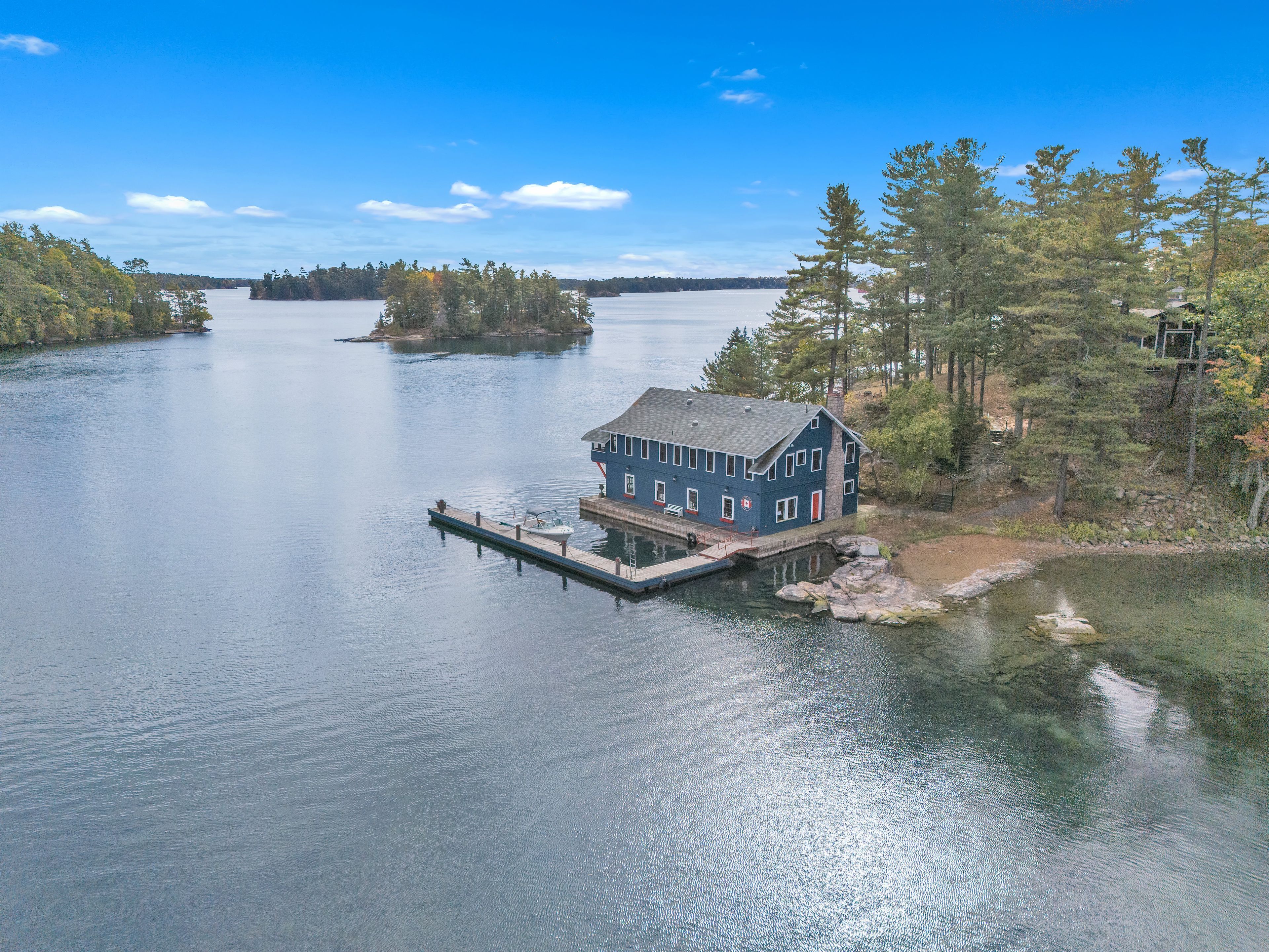 A once-in-a-generation opportunity to own an exceptional private island retreat in the heart of the Thousand Islands. Located minutes from Rockport, this iconic family compound offers total privacy with the added convenience of proximity to the mainland. Included are two additional lots on neighbouring Tar Island, expanding the estate's potential. This legacy property has one of the most magnificent boathouses on the Canadian side of the rivera rare architectural gem.The gracious MAIN HOUSE offers 2/3-bedrooms and was designed for elegant waterfront living, featuring a glassed-in veranda with panoramic south and west river views, a dramatic stone fireplace,and a luxurious 3-room primary suite complete with its own fireplace, ensuite bath, and glassed-in sitting porch. A 2nd bedroom suite opens directly to the island and includes its own sitting area, and 44-piece bath, perfect for quiet relaxation or hosting guests.The GUEST HOUSE is a completely renovated 3-bedroom cottage that blends contemporary comfort with island charm. Enjoy an open-concept great room with stone fireplace, a new kitchen, and a stunning glass-walled dining room cantilevered over the island. The primary suite offers an ensuite and walk-out to an east-facing deck, while the lower-level houses a stylish wine cellar.The spectacular 2-storey, 5-bedroom BOAT HOUSE is a destination in itself. The main floor offers 2 wet slips with lifts, a 3-piece bath with sauna, utility room, and expansive storage. Upstairs, discover a beautifully appointed, totally renovated, 5-bedroom summer residence with a cozy living room, fireplace, kitchen/dining area, and an expansive screened-in porch over the river. The primary suite boasts a stone fireplace and ensuite; two other bedrooms enjoy semi-ensuite baths.Signature properties like this are rarely available. Baby Tar Island is a timeless estate where generations can gather, relax, and enjoy the best of island life in unmatched privacy and comfort.