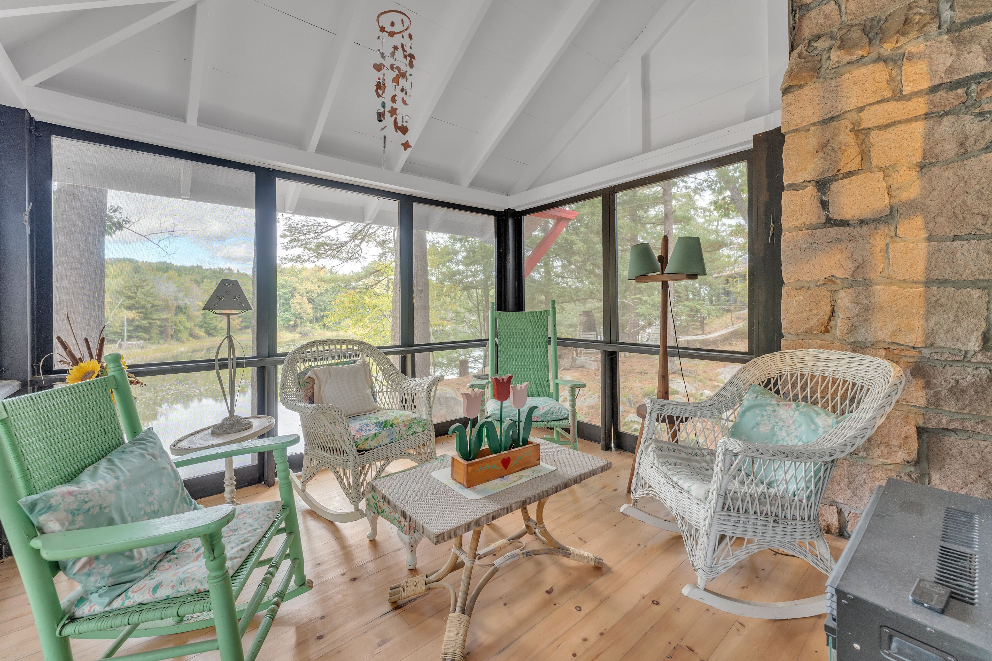 - Exterior Features: Privacy, Porch Enclosed, Porch, Seasonal Living, Deck, Fishing