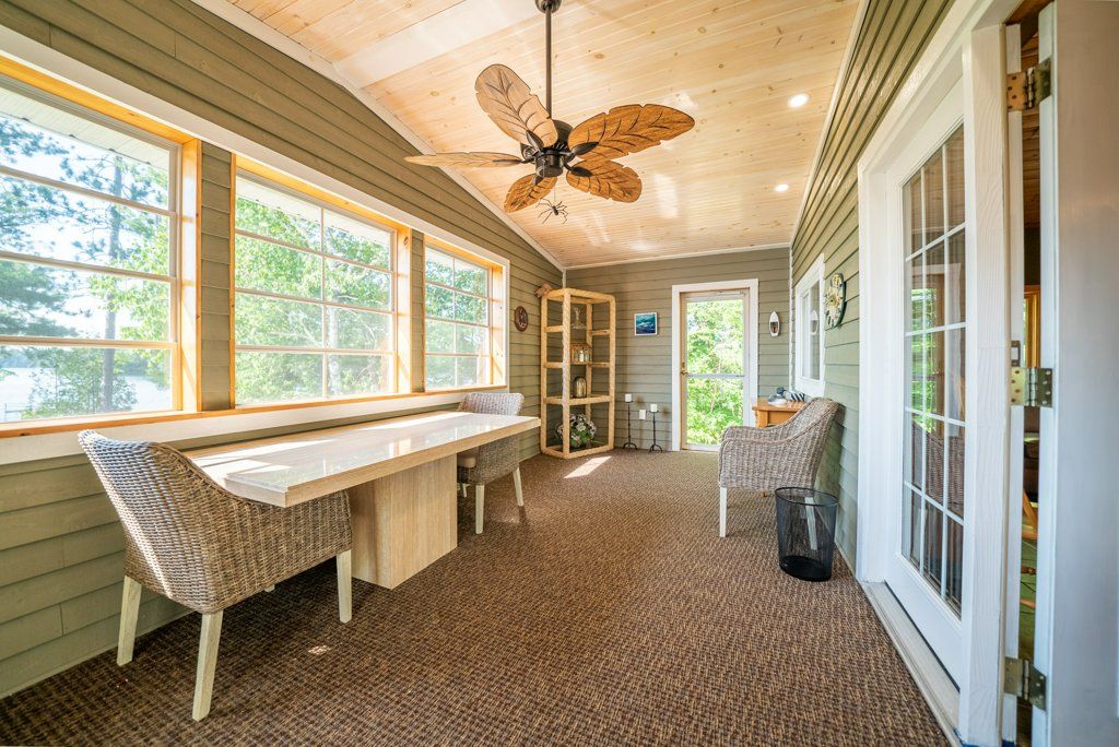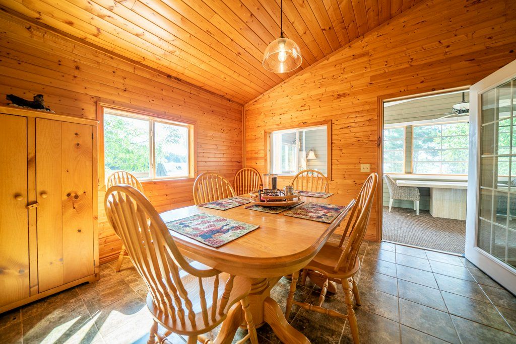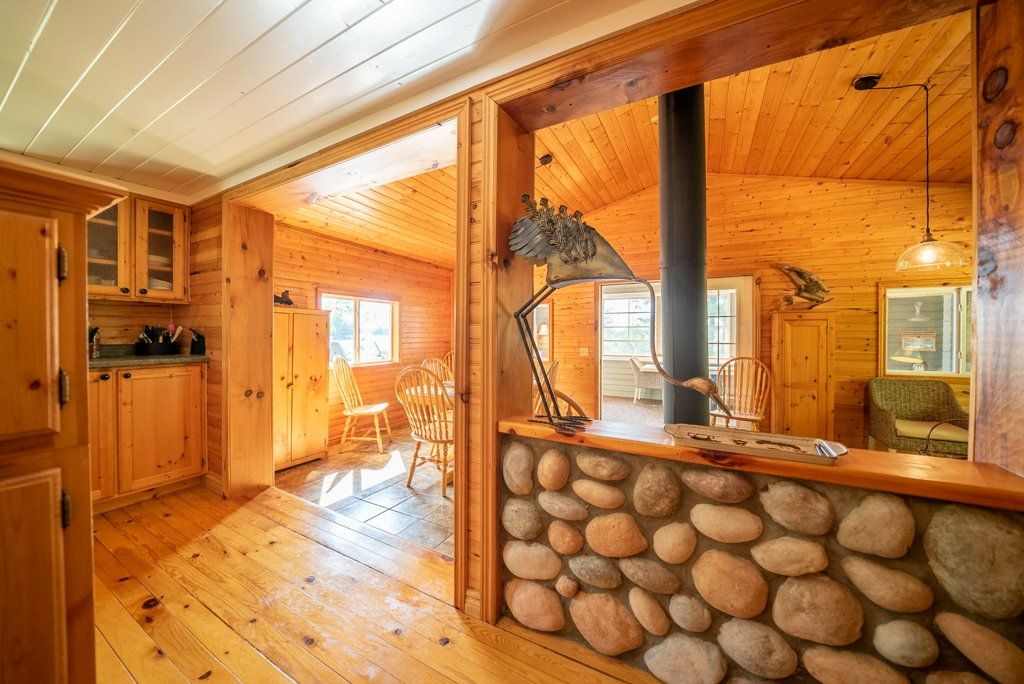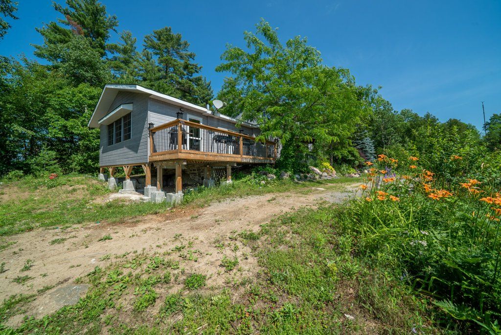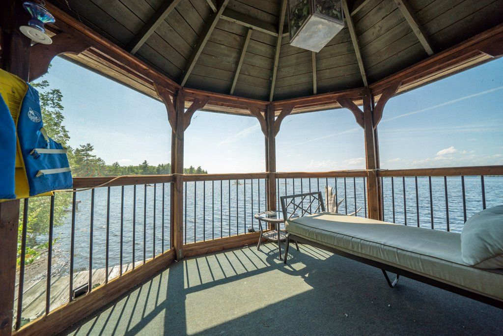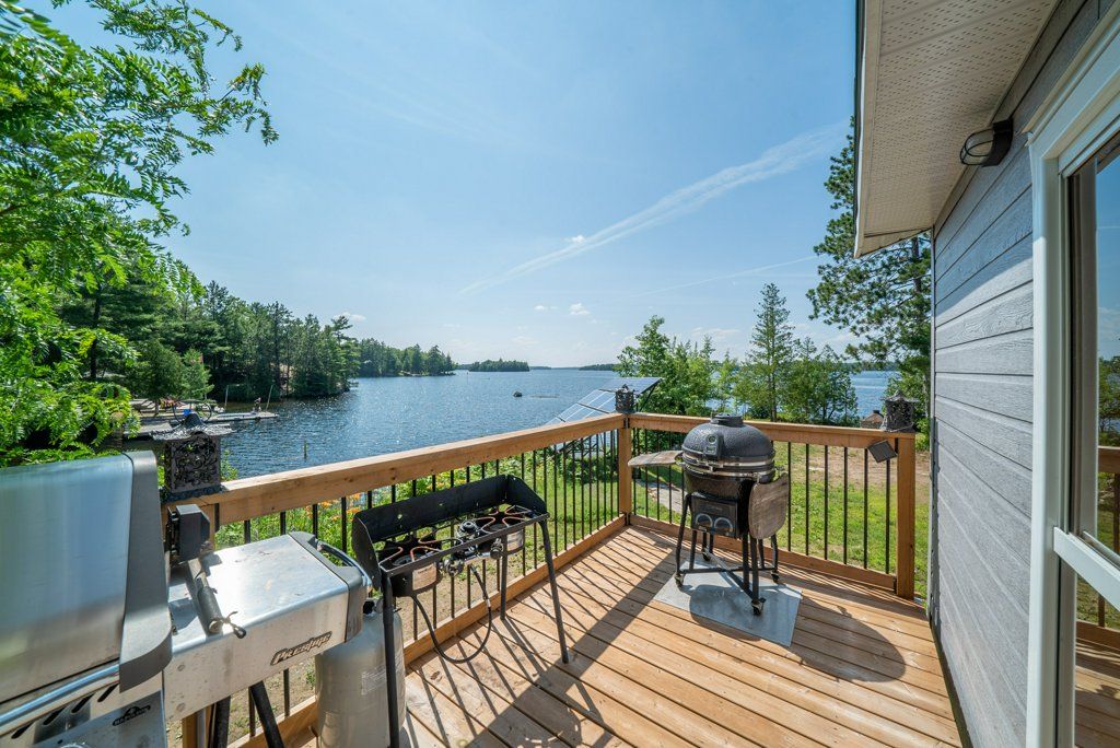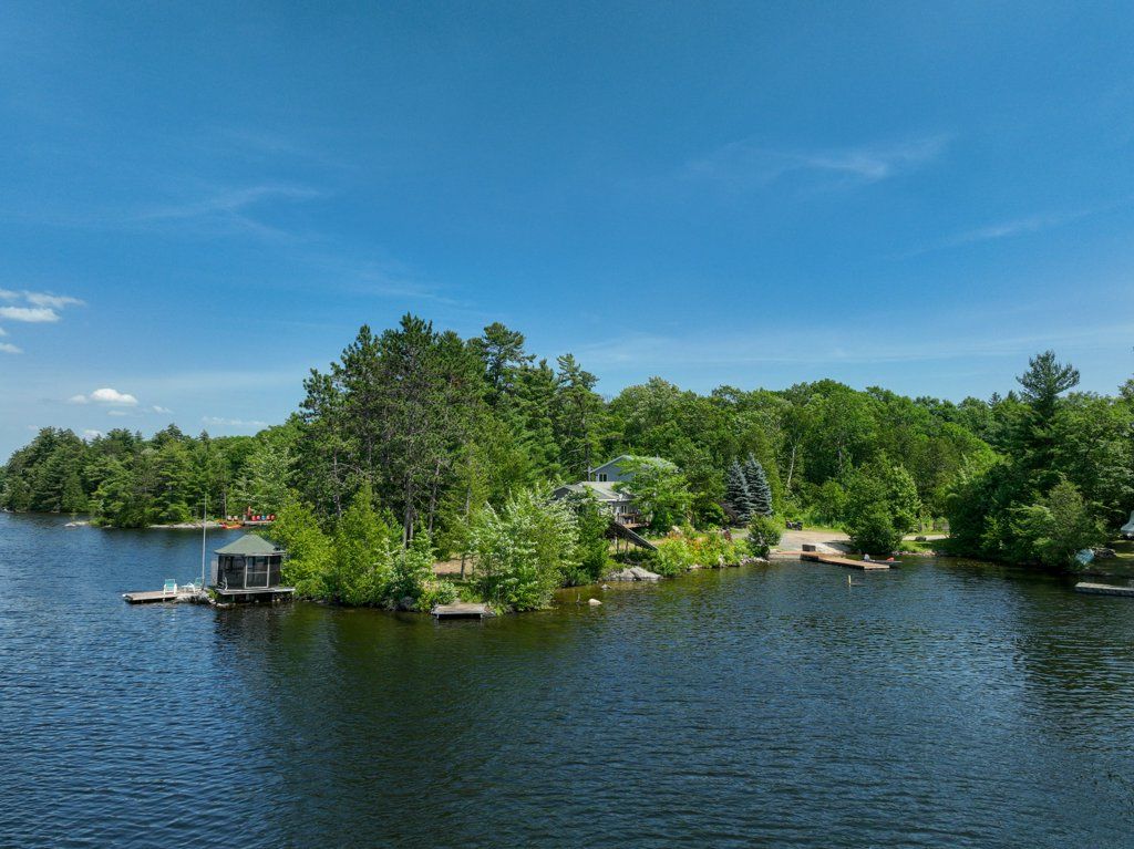 Nestled on 1.9 acres of land with an impressive 393 feet of waterfront access, this property features a private beach, docks for your watercraft, and deep swimming areas. As you gather in your lakeside gazebo, the west-facing orientation ensures you'll be treated to glorious sunsets sparkling over the lake and surrounding Canadian shield landscape every evening. This custom built 4 season solar powered home is a sanctuary boasting 5 bedrooms, 2 bathrooms, a primary bedroom with ensuite, main floor laundry, and entertaining kitchen, a living/family room with a cozy stone fireplace, and a dining/living room offering breathtaking lake views with a walkout to the screened sun porch. In addition the property provides a garage & workshop, boat port with steel shed, private boat launch, gardens shed and Bunkie with hydro and plenty of grounds for all your family entertainment. For those who crave adventure, fishing, hunting, and trails are just a stone's throw away from your future doorstep. Big Gull Lake itself is an 18 km long gem featuring 75% crown land for you to explore at your leisure. The lake is teeming with abundant fish species for the avid angler; 2 marinas with boat services & groceries. The Outback Solar System is capable of 2875 watts, 12 panel (250 watts each), 12 batteries 6 volt (48 volt storage system) 100 amp service, house & garage; propane powered HWT on demand, stove, dryer & back up 2020 Cummins generator; 1 Napolean Wood Firestove & Stone Fireplace.
