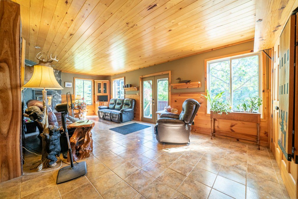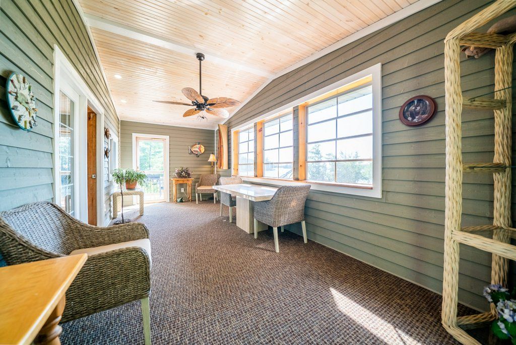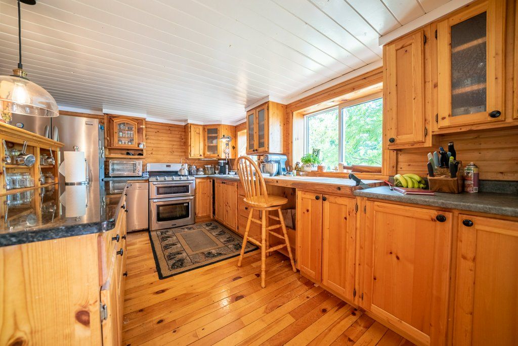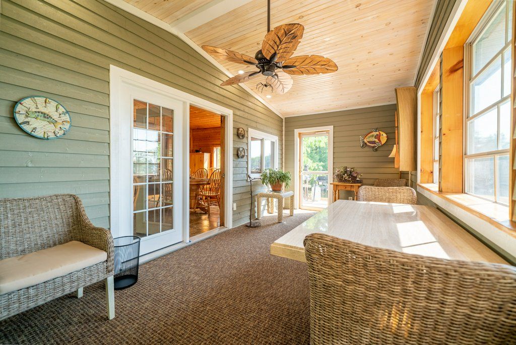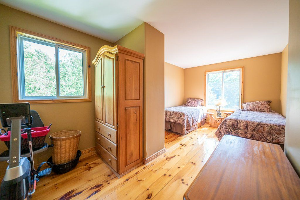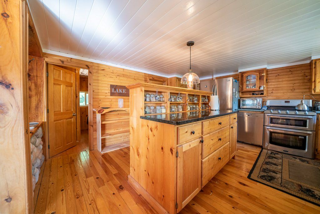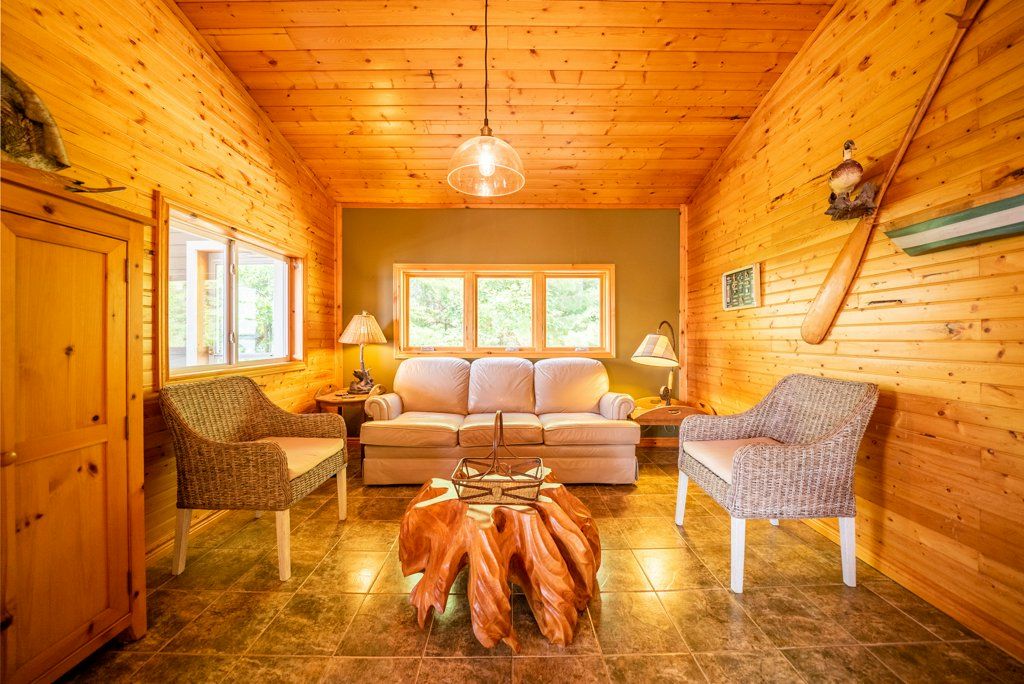 Nestled on 1.9 acres of land with an impressive 393 feet of waterfront access, this property features a private beach, docks for your watercraft, and deep swimming areas. As you gather in your lakeside gazebo, the west-facing orientation ensures you'll be treated to glorious sunsets sparkling over the lake and surrounding Canadian shield landscape every evening. This custom built 4 season solar powered home is a sanctuary boasting 5 bedrooms, 2 bathrooms, a primary bedroom with ensuite, main floor laundry, and entertaining kitchen, a living/family room with a cozy stone fireplace, and a dining/living room offering breathtaking lake views with a walkout to the screened sun porch. In addition the property provides a garage & workshop, boat port with steel shed, private boat launch, gardens shed and Bunkie with hydro and plenty of grounds for all your family entertainment. For those who crave adventure, fishing, hunting, and trails are just a stone's throw away from your future doorstep. Big Gull Lake itself is an 18 km long gem featuring 75% crown land for you to explore at your leisure. The lake is teeming with abundant fish species for the avid angler; 2 marinas with boat services & groceries. The Outback Solar System is capable of 2875 watts, 12 panel (250 watts each), 12 batteries 6 volt (48 volt storage system) 100 amp service, house & garage; propane powered HWT on demand, stove, dryer & back up 2020 Cummins generator; 1 Napolean Wood Firestove & Stone Fireplace.