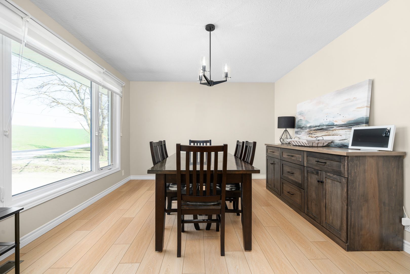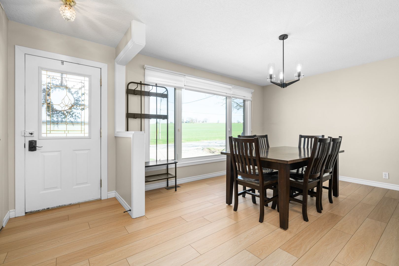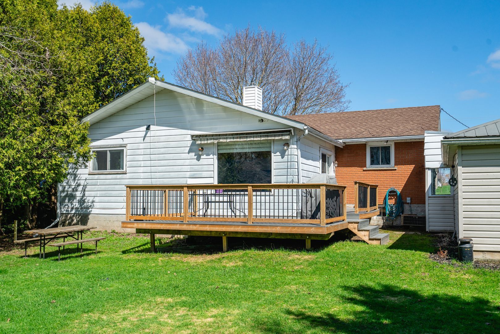 This three-bedroom bungalow on the edge of town offers a perfect balance of modern interior updates and country views. Situated on a spacious lot overlooking open fields, the home welcomes you with a foyer and front dining room featuring a large picture window to capture the views. The interior flow continues into a bright eat-in kitchen and onto a beautiful living room addition. This primary gathering space is anchored by a cozy propane fireplace and surrounded by large windows that provide views of the backyard, with direct access to a maintenance-free deck. The primary suite is a private retreat, featuring a versatile attached room suitable for a dressing room, nursery, or home office, includes a walk-in closet and a 3 piece private ensuite. Two additional bedrooms and an updated four-piece bathroom complete the main floor. The lower level adds significant functional square footage with a large family room--ideal for a gym or play area--plus a storage room and a utility room that includes laundry facilities and a two-piece washroom. Total finished square footage is almost 1900 sq feet. Mechanical reliability is a priority here, with a complete water treatment system including reverse osmosis, UV light, water softener, iron filter plus central air and a two year old furnace. A full appliance package is included for a seamless move-in. The exterior is a wonderful space, offering a large backyard with mature trees, space to garden, play and have campfires, a deck for morning coffee and barbeque, plus a carport which leads into a garage topped with a durable steel roof. Enjoy the quiet of the countryside while remaining within walking distance to Ayton's amenities in this well-maintained residence. Fibre optics at the lot line, flexible closing and no expensive water/sewer charges in Ayton.