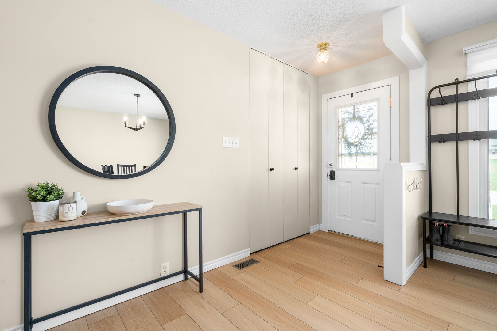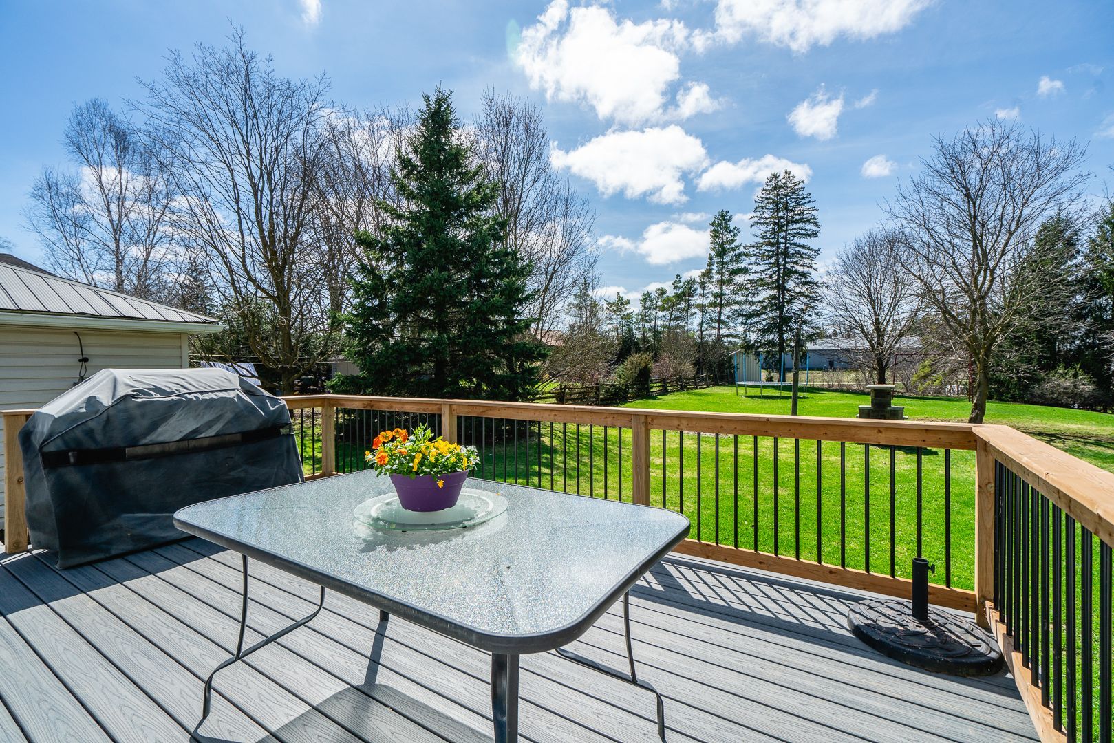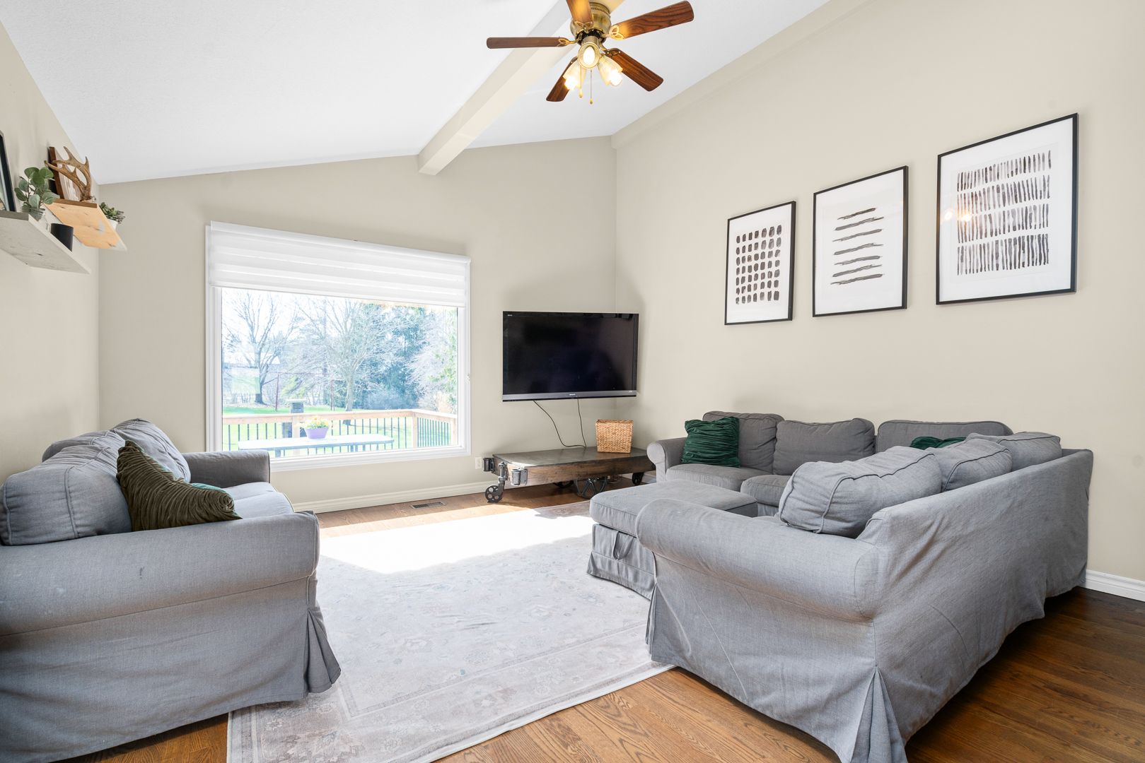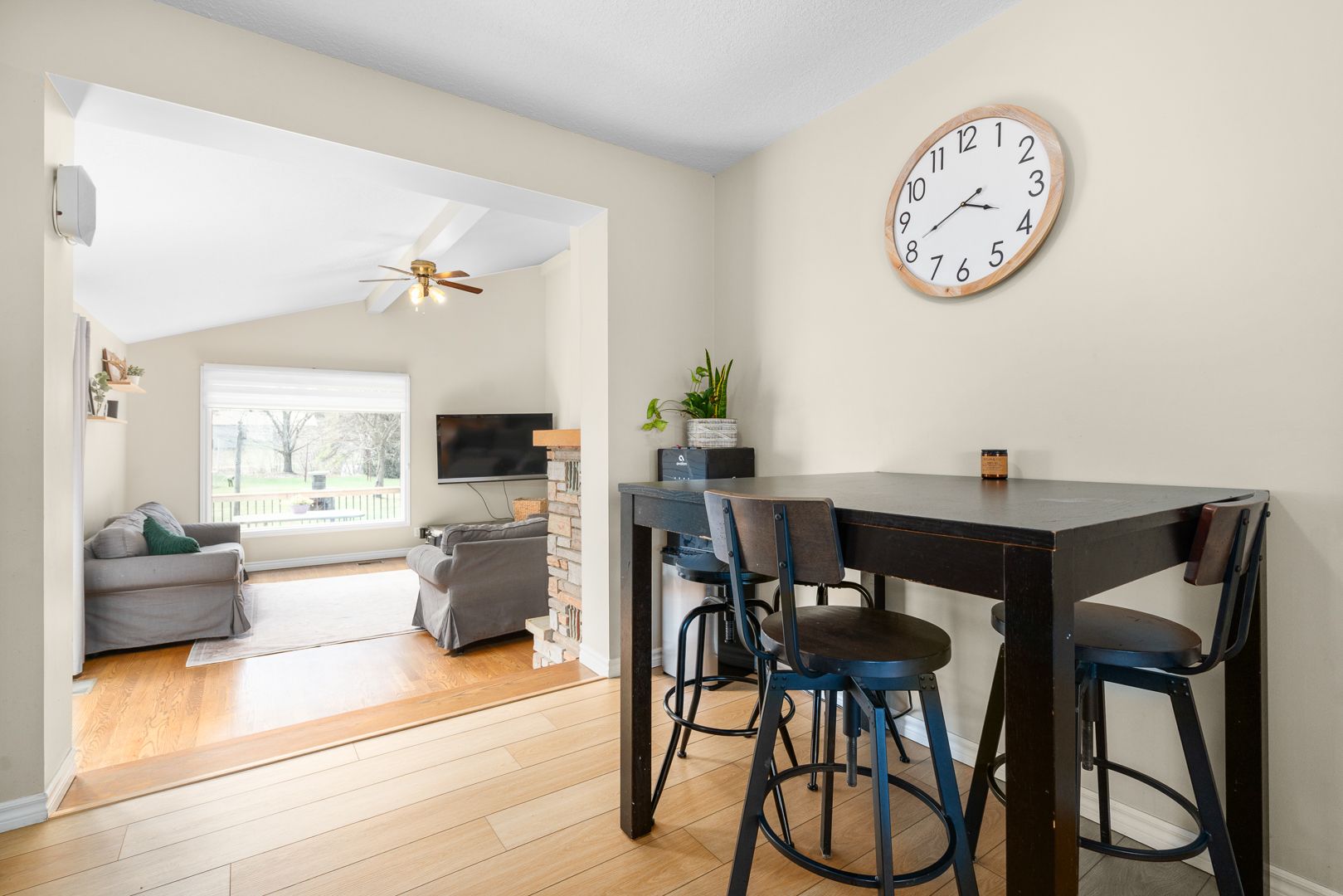 This three-bedroom bungalow on the edge of town offers a perfect balance of modern interior updates and country views. Situated on a spacious lot overlooking open fields, the home welcomes you with a foyer and front dining room featuring a large picture window to capture the views. The interior flow continues into a bright eat-in kitchen and onto a beautiful living room addition. This primary gathering space is anchored by a cozy propane fireplace and surrounded by large windows that provide views of the backyard, with direct access to a maintenance-free deck. The primary suite is a private retreat, featuring a versatile attached room suitable for a dressing room, nursery, or home office, includes a walk-in closet and a 3 piece private ensuite. Two additional bedrooms and an updated four-piece bathroom complete the main floor. The lower level adds significant functional square footage with a large family room--ideal for a gym or play area--plus a storage room and a utility room that includes laundry facilities and a two-piece washroom. Total finished square footage is almost 1900 sq feet. Mechanical reliability is a priority here, with a complete water treatment system including reverse osmosis, UV light, water softener, iron filter plus central air and a two year old furnace. A full appliance package is included for a seamless move-in. The exterior is a wonderful space, offering a large backyard with mature trees, space to garden, play and have campfires, a deck for morning coffee and barbeque, plus a carport which leads into a garage topped with a durable steel roof. Enjoy the quiet of the countryside while remaining within walking distance to Ayton's amenities in this well-maintained residence. Fibre optics at the lot line, flexible closing and no expensive water/sewer charges in Ayton.