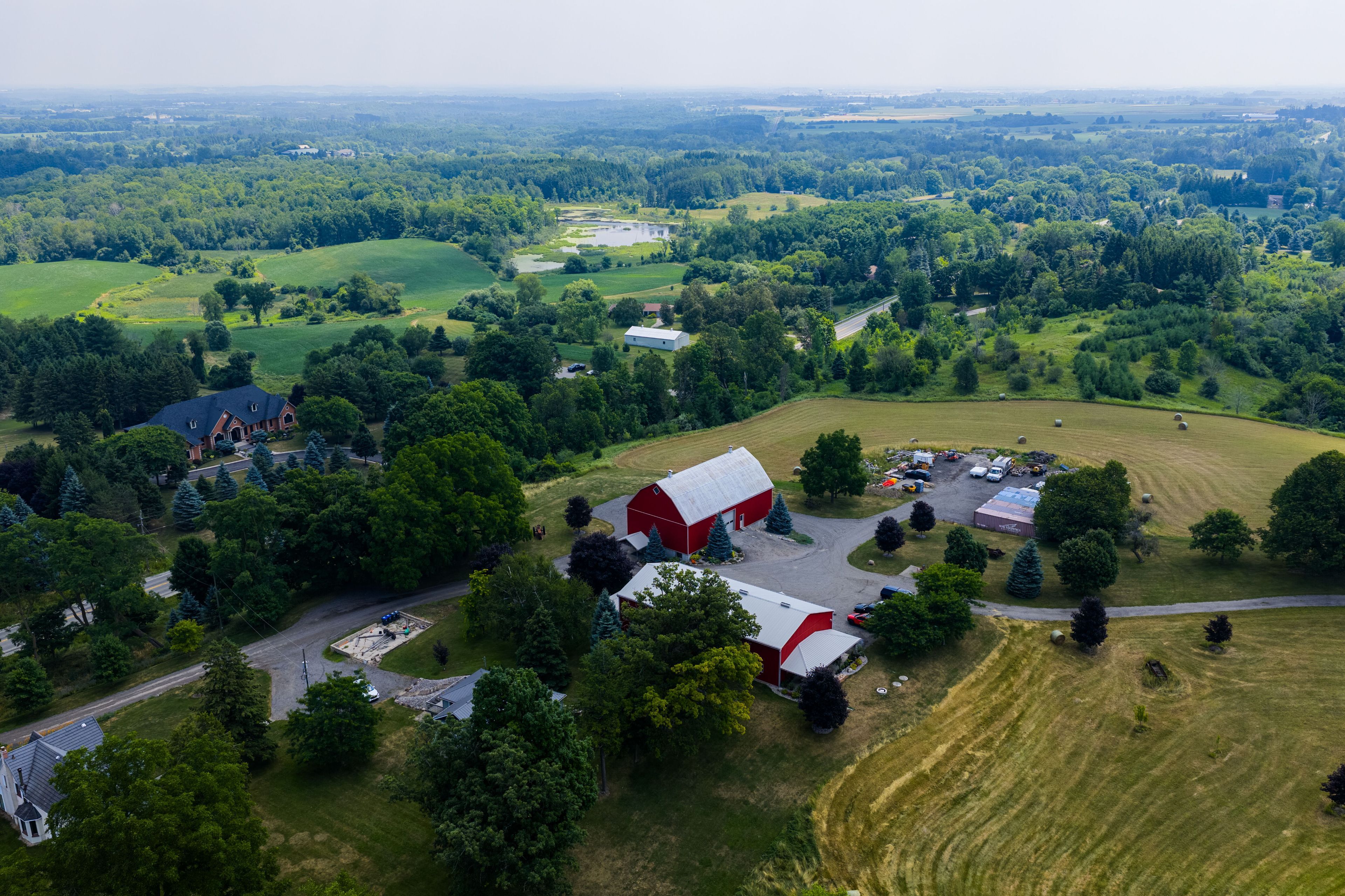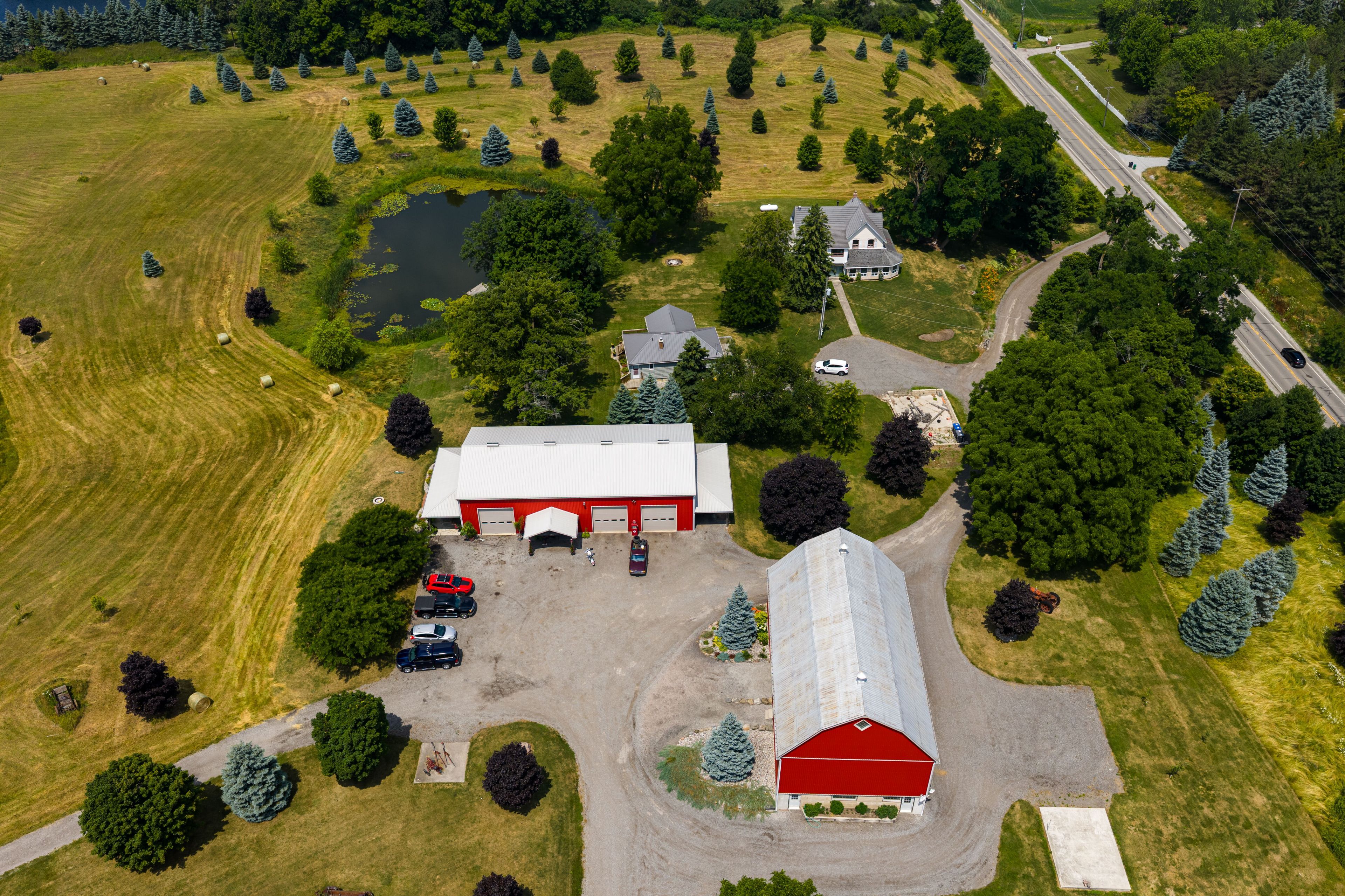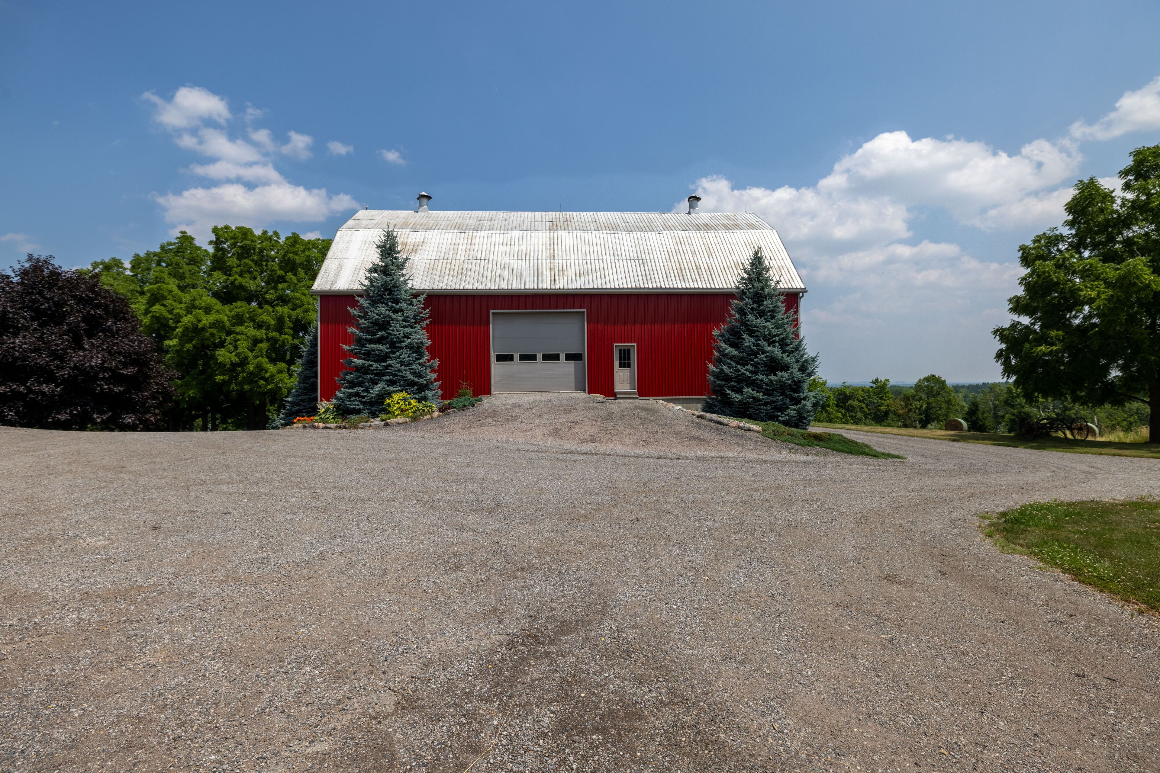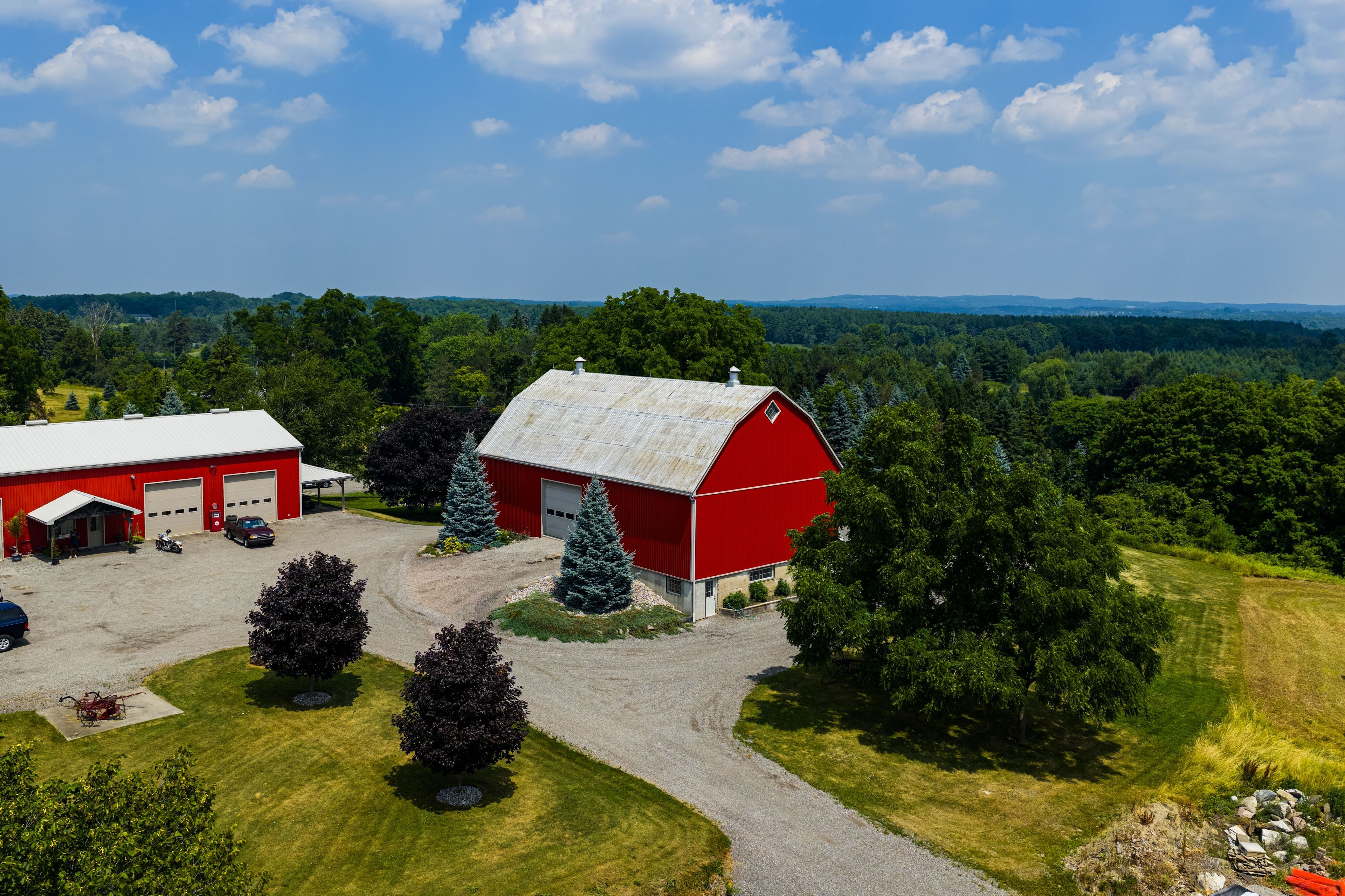 Welcome to this exceptional 96-acre farm estate, offering a rare combination of natural beauty, functionality, and long-term potential. Framed by sweeping south-easterly views of the Toronto skyline, the property features a fully renovated bank barn, a large immaculate workshop, and two charming residences the original 3-bedroom, 2-bathroom farmhouse and a detached 1-bedroom, 1-bath guest house. The landscape is a stunning blend of worked acreage, hardwood forest, multiple large ponds, and a cozy bunkie, providing incredible versatility for both lifestyle and business use. Situated on a regional road, the location offers excellent exposure and accessibility, making it an ideal candidate for a future business venture. Currently, the guest house is rented for $1,400/month plus utilities, and the farmland generates an additional $1,000/year, adding to the appeal of this unique and income-producing countryside retreat.