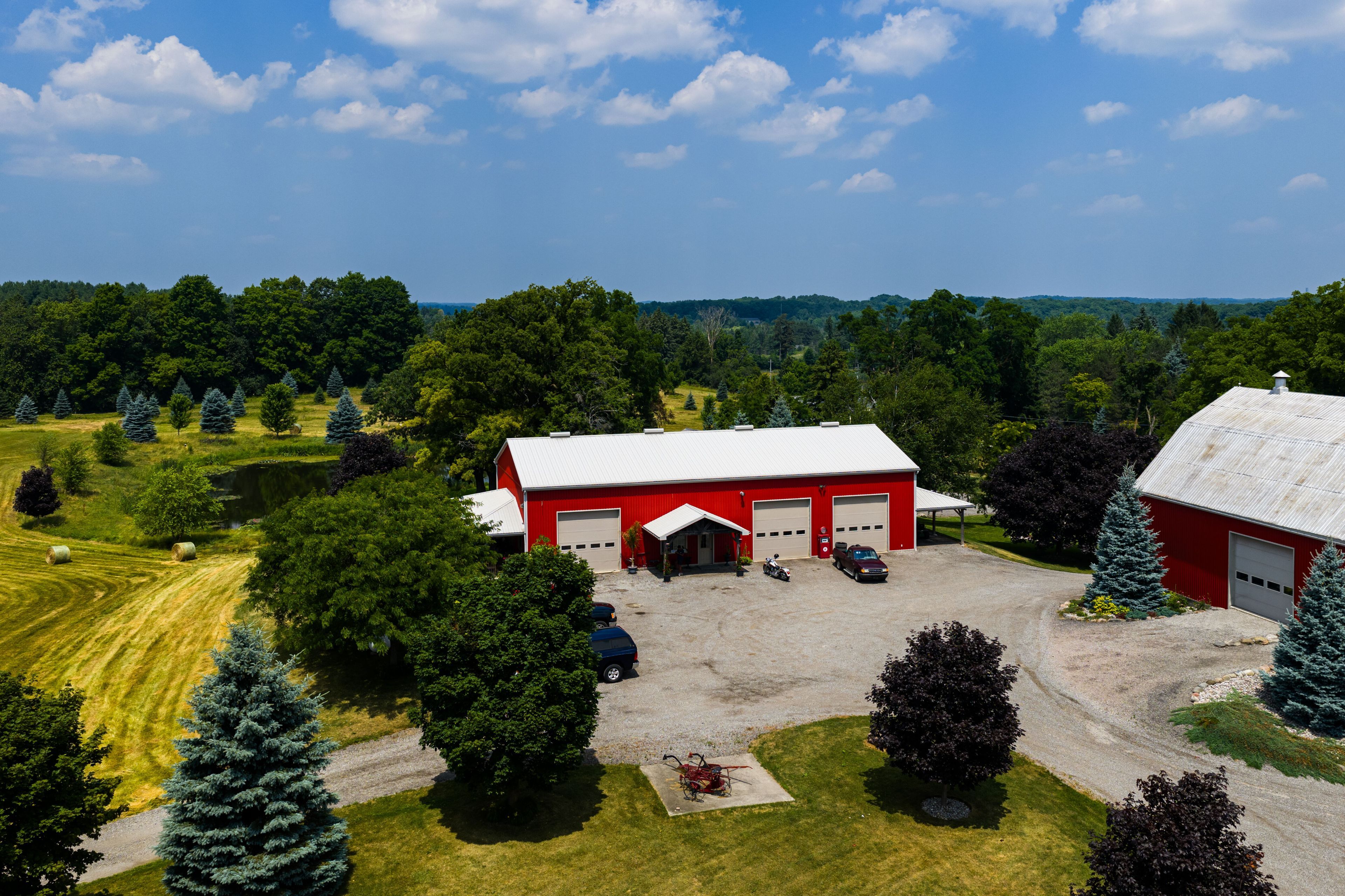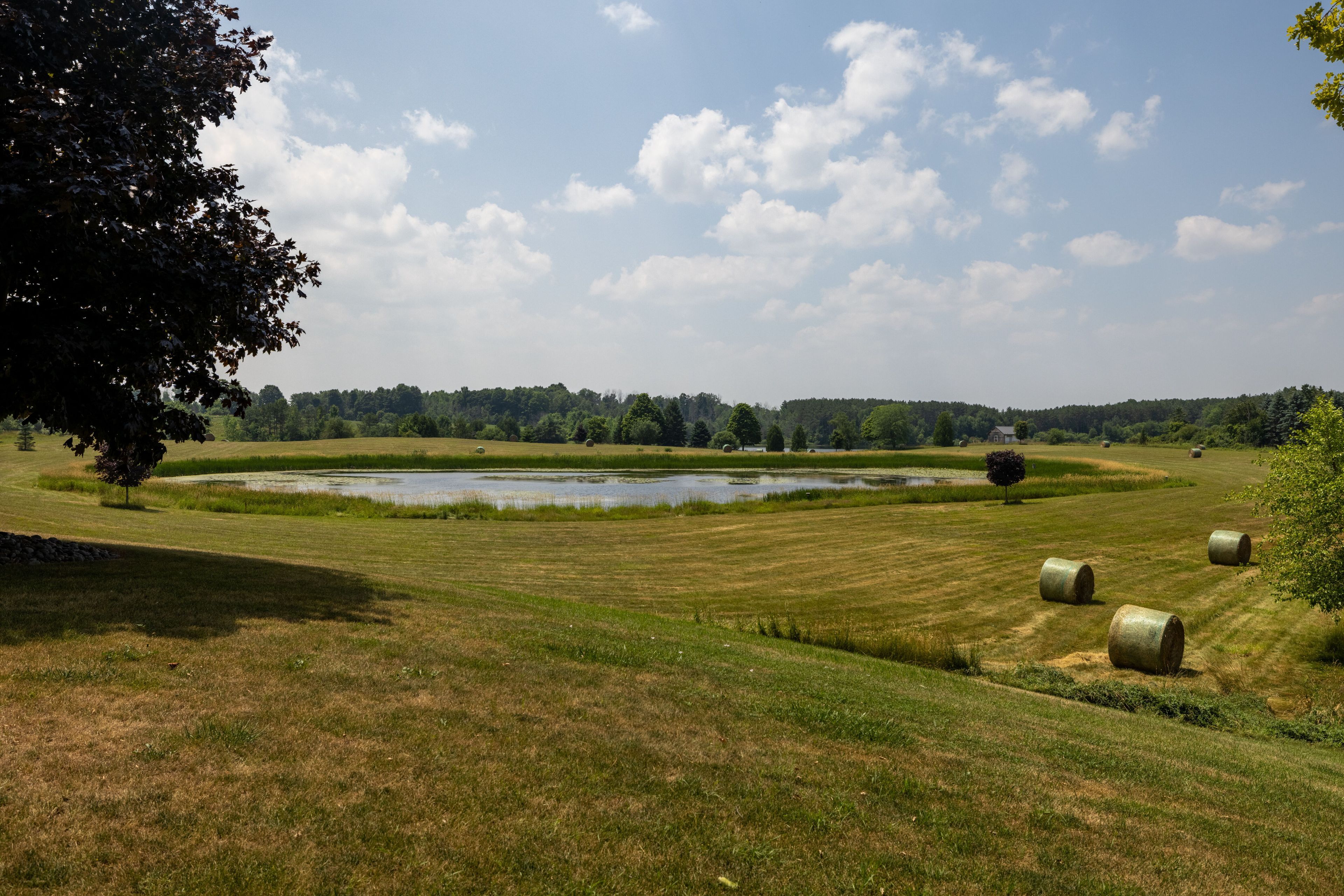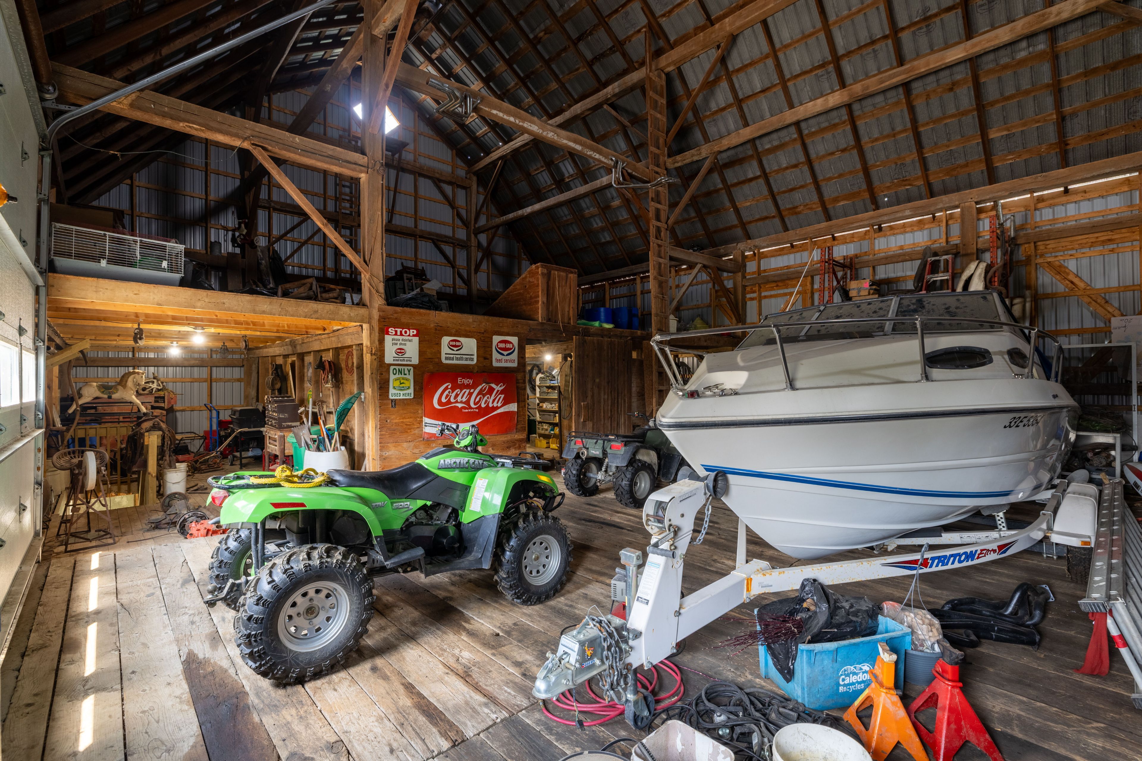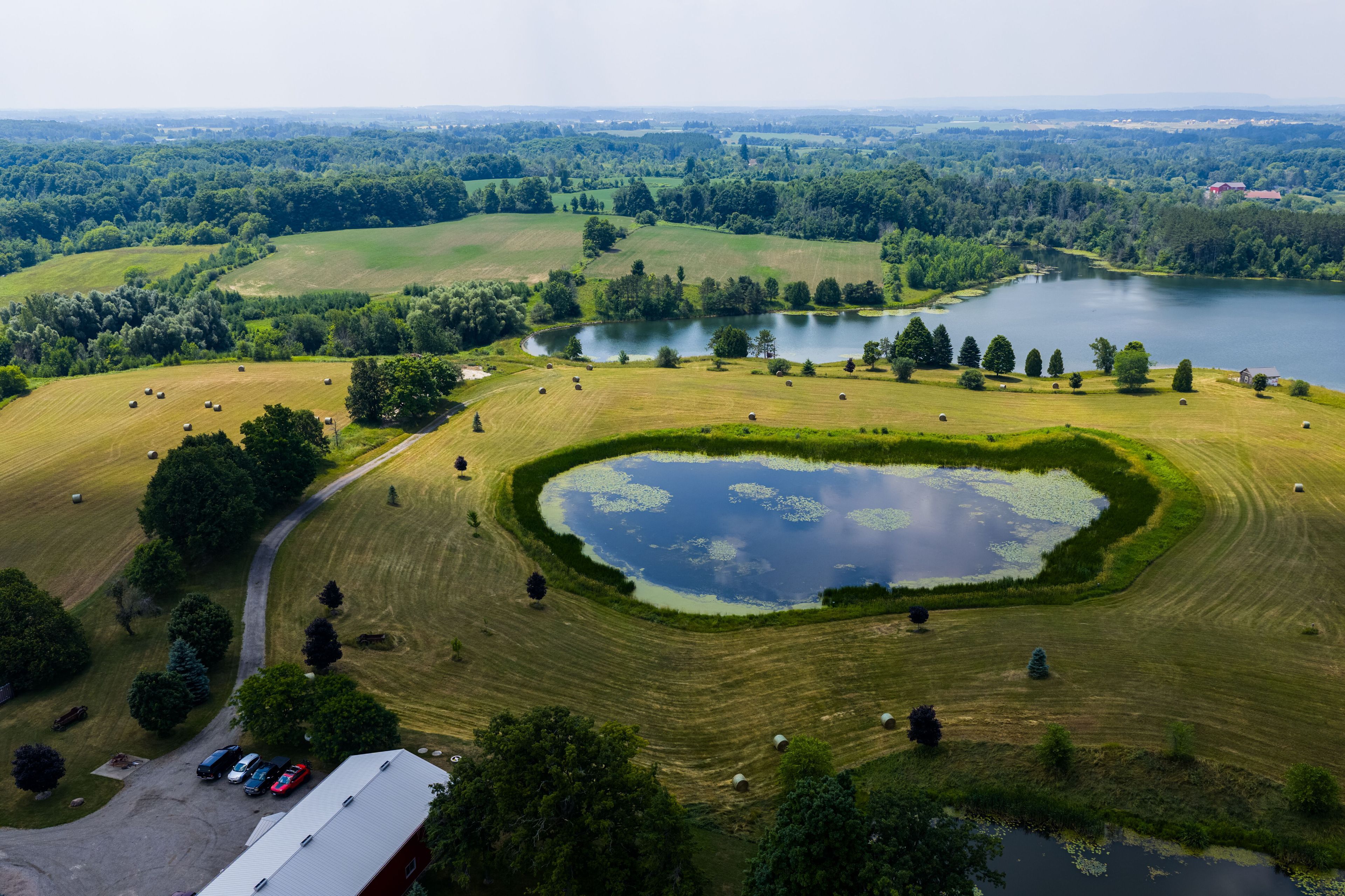 Welcome to this exceptional 96-acre farm estate, offering a rare combination of natural beauty, functionality, and long-term potential. Framed by sweeping south-easterly views of the Toronto skyline, the property features a fully renovated bank barn, a large immaculate workshop, and two charming residences the original 3-bedroom, 2-bathroom farmhouse and a detached 1-bedroom, 1-bath guest house. The landscape is a stunning blend of worked acreage, hardwood forest, multiple large ponds, and a cozy bunkie, providing incredible versatility for both lifestyle and business use. Situated on a regional road, the location offers excellent exposure and accessibility, making it an ideal candidate for a future business venture. Currently, the guest house is rented for $1,400/month plus utilities, and the farmland generates an additional $1,000/year, adding to the appeal of this unique and income-producing countryside retreat.