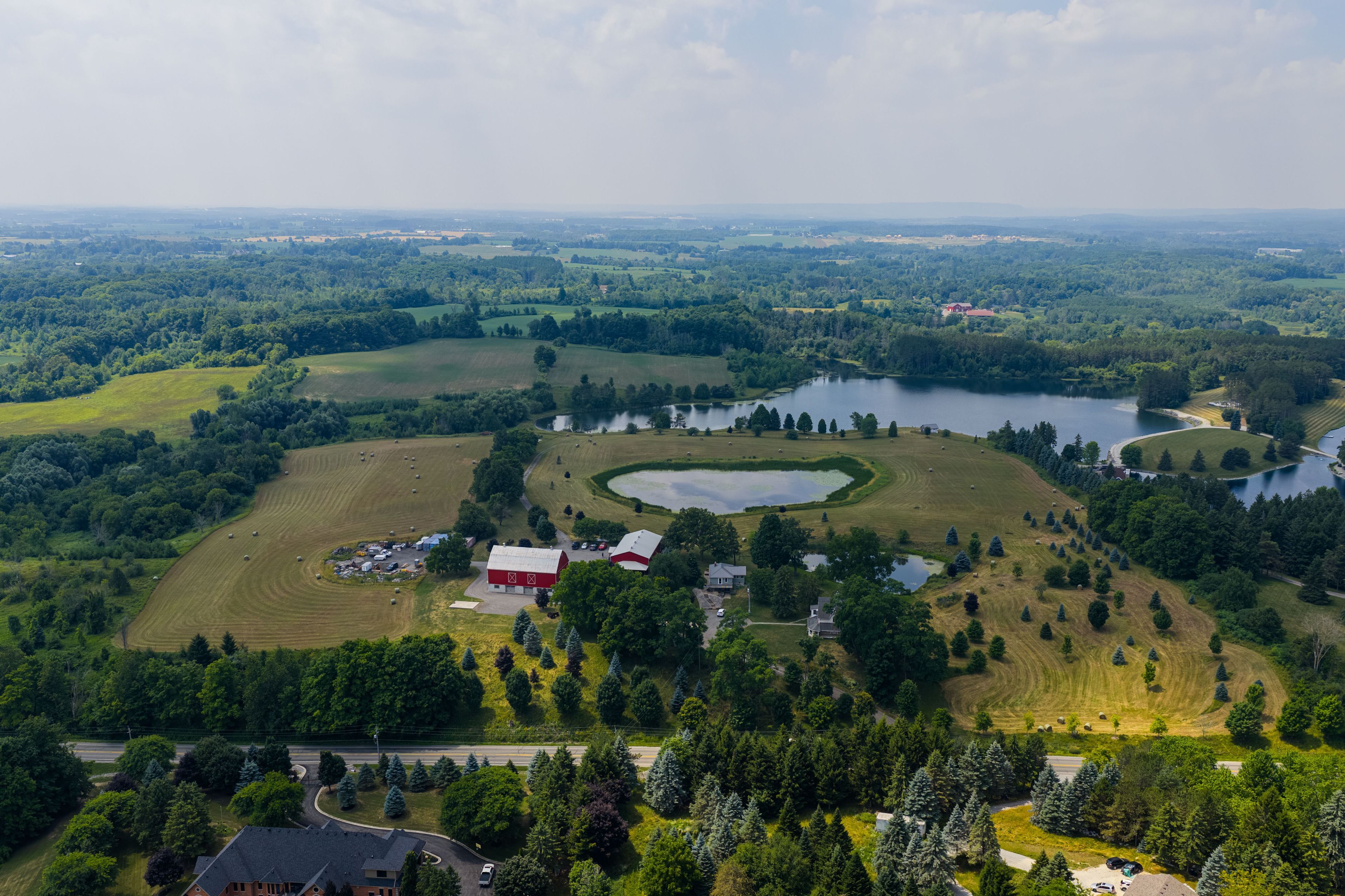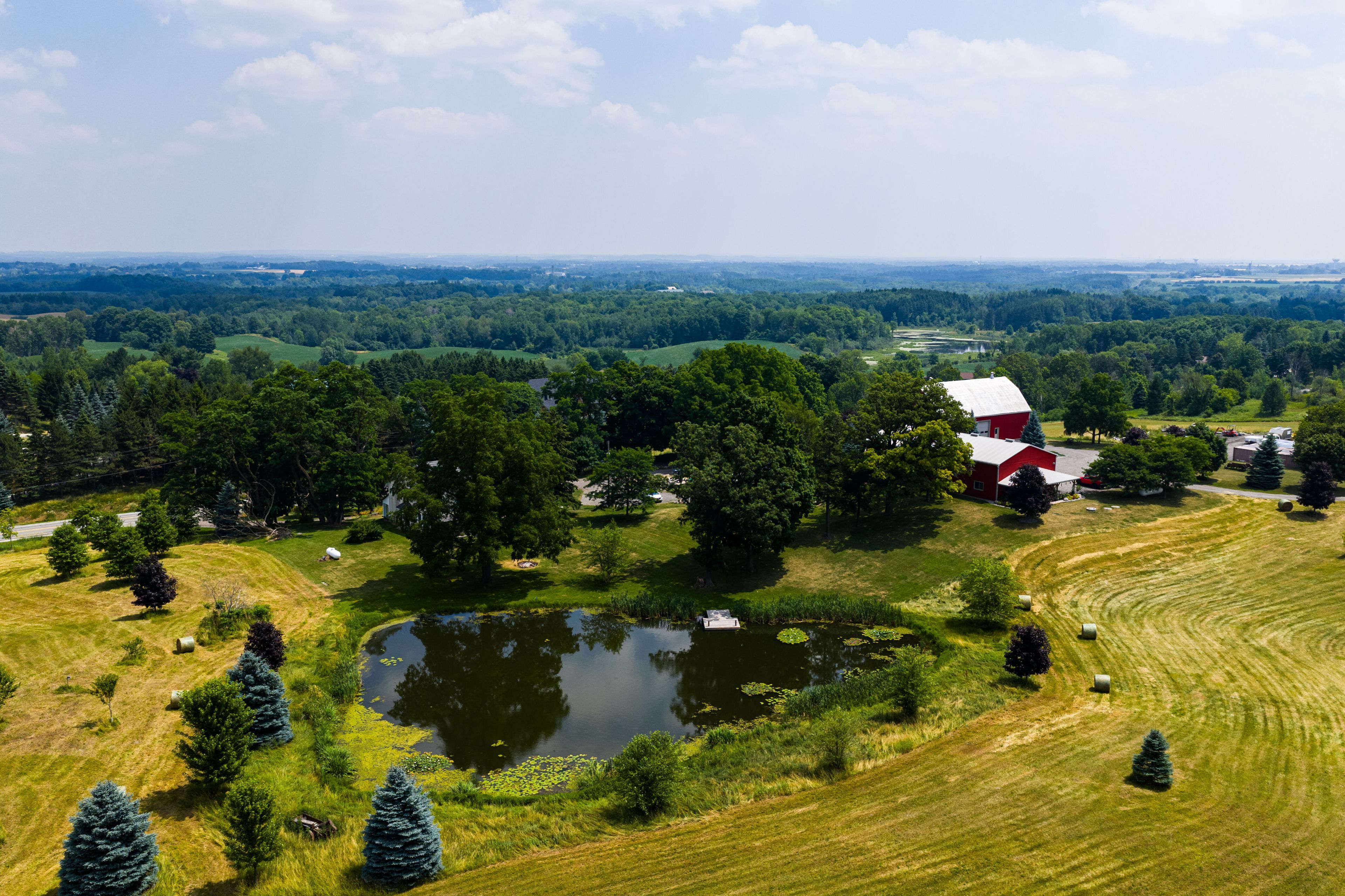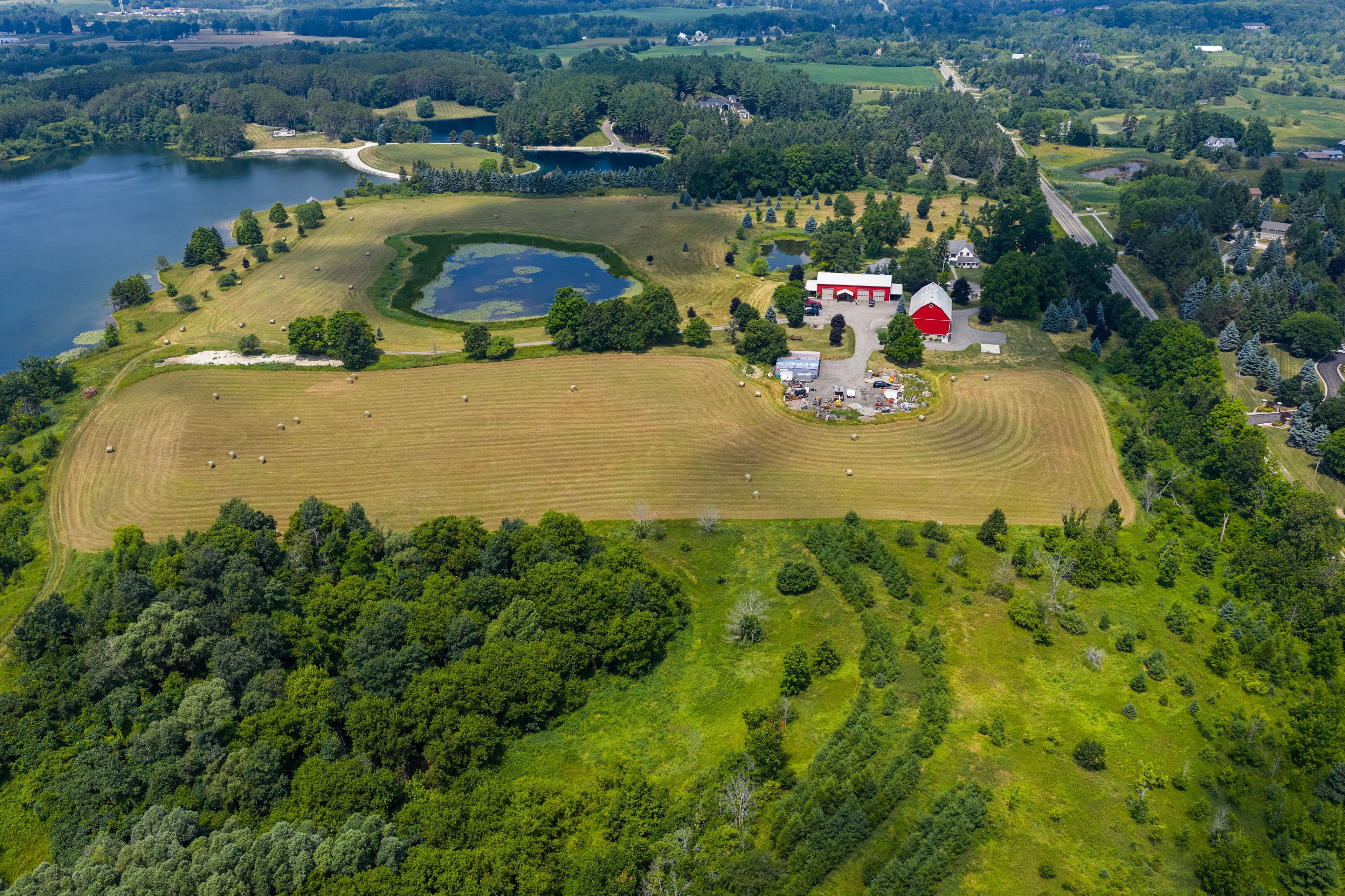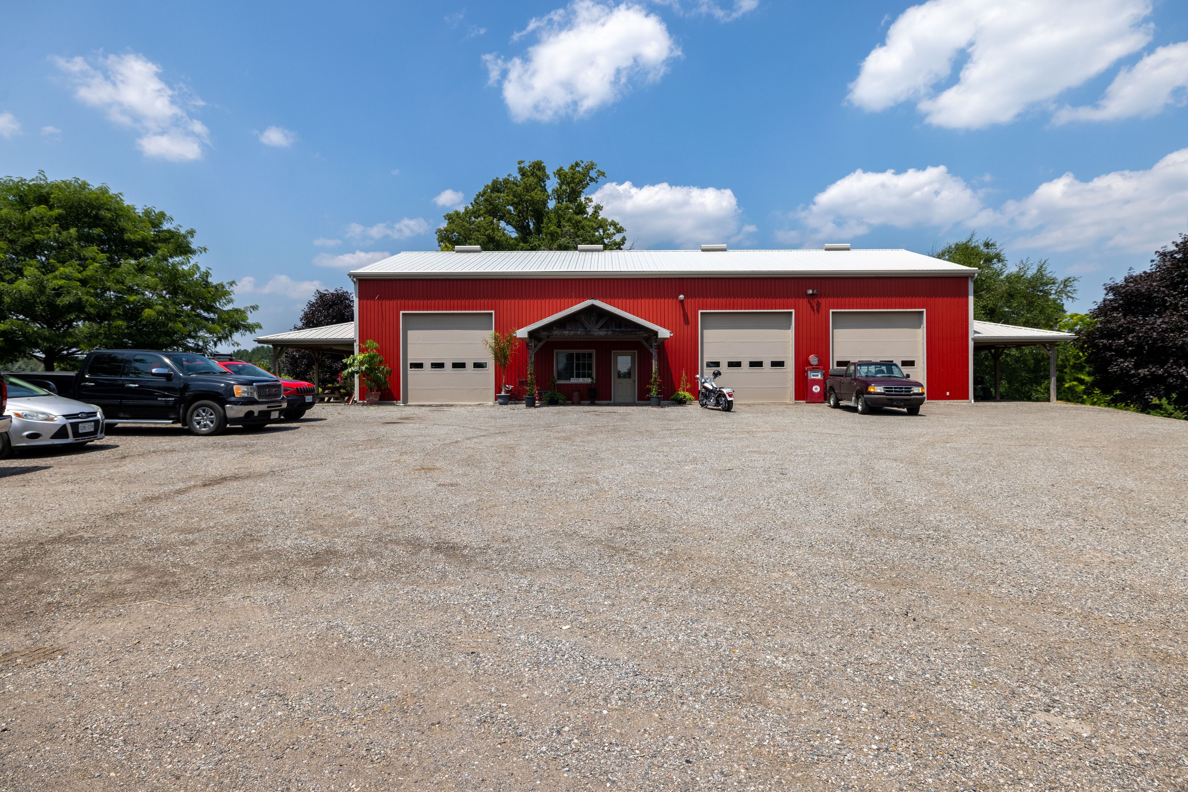 Welcome to this exceptional 96-acre farm estate, offering a rare combination of natural beauty, functionality, and long-term potential. Framed by sweeping south-easterly views of the Toronto skyline, the property features a fully renovated bank barn, a large immaculate workshop, and two charming residences the original 3-bedroom, 2-bathroom farmhouse and a detached 1-bedroom, 1-bath guest house. The landscape is a stunning blend of worked acreage, hardwood forest, multiple large ponds, and a cozy bunkie, providing incredible versatility for both lifestyle and business use. Situated on a regional road, the location offers excellent exposure and accessibility, making it an ideal candidate for a future business venture. Currently, the guest house is rented for $1,400/month plus utilities, and the farmland generates an additional $1,000/year, adding to the appeal of this unique and income-producing countryside retreat.
