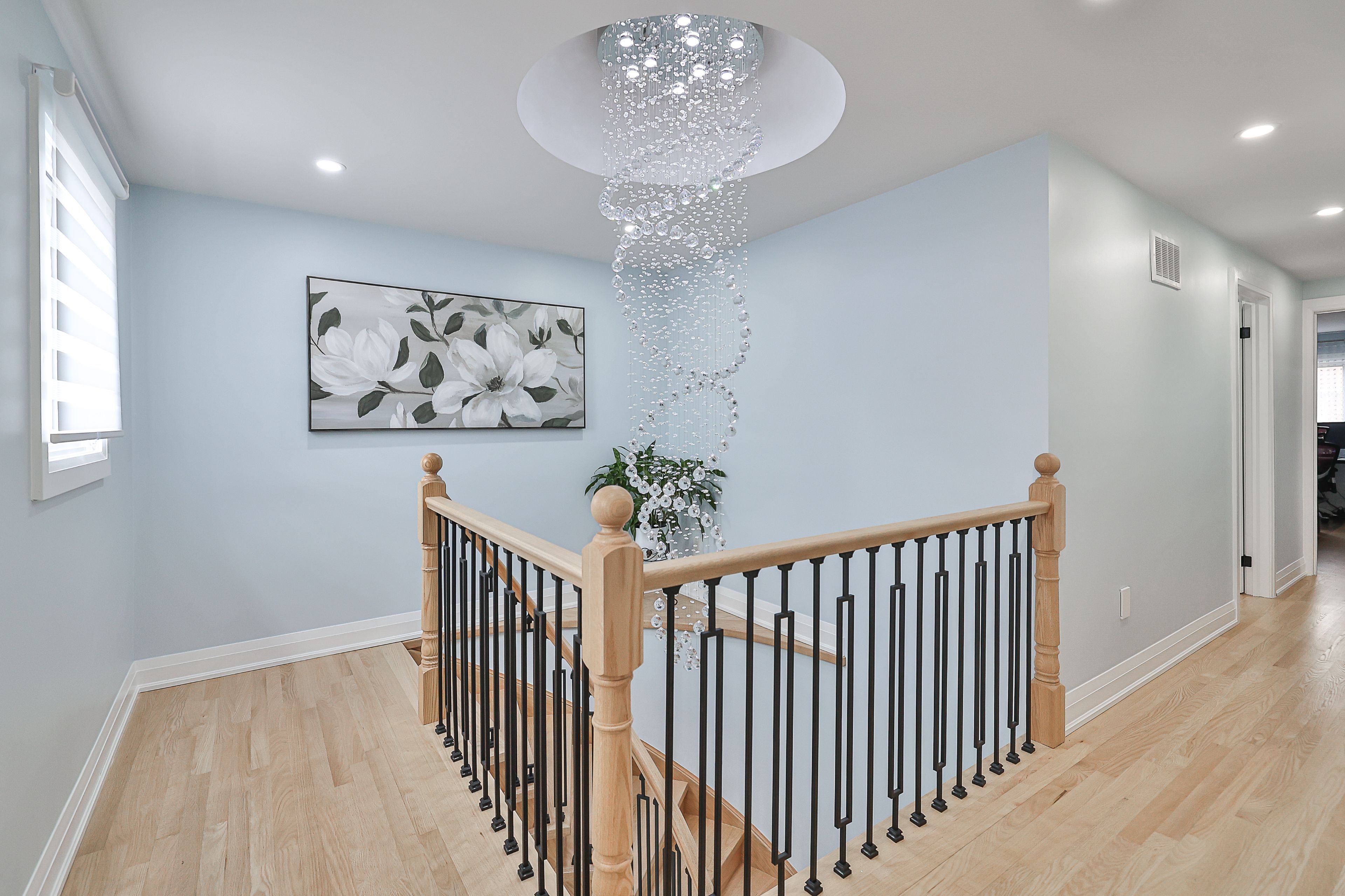 This stunning fully renovated home boasts 4 large bdrs and 4 baths, modern kitchen with quartzcountertop and new smart appls, offering ample space for comfortable living. Completelyrenovated 4bathrms, 1st and 2d floor solid hardwood, basement vinyl floor, updated windows,doors, stone front porch with glass railings, new fence. 2d floor has skylights in bathrmsbrightening the space with natural light; customized multi-level ceiling accentuated with LEDlights in bdrms, and a stunning staircase crystal chandelier. Bold color choice of tiles around afireplace brings a stylish touch to the open-concept kitchen. Two laundry sets including a smartwash tower upstairs and the second laundry in a basement. AC 2023.