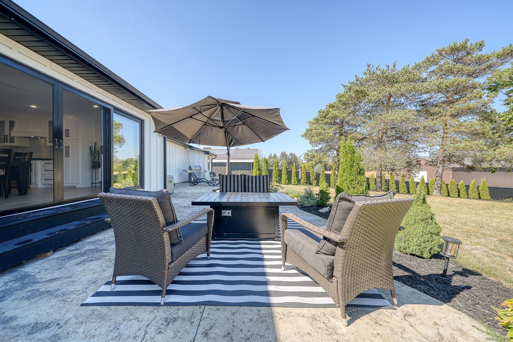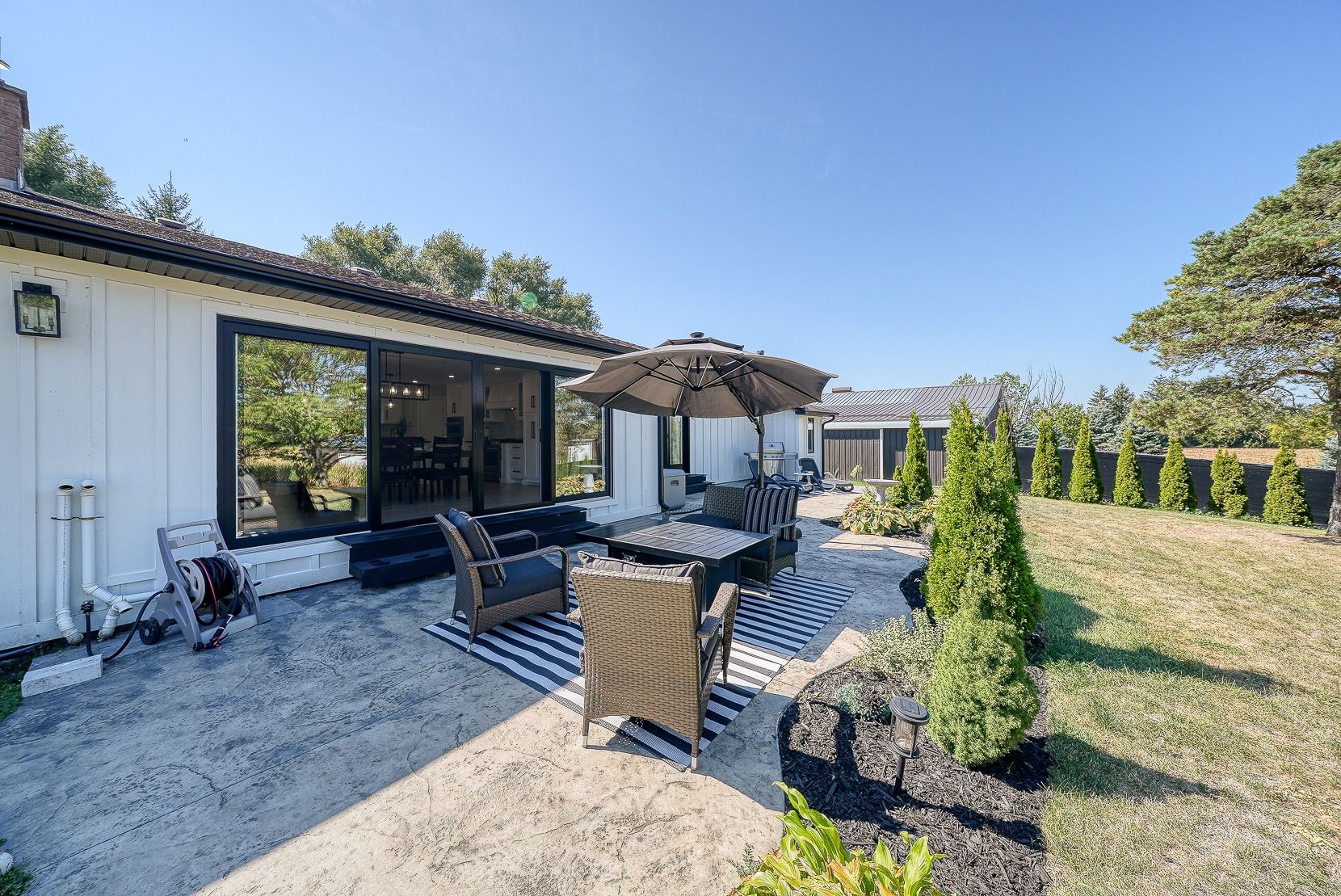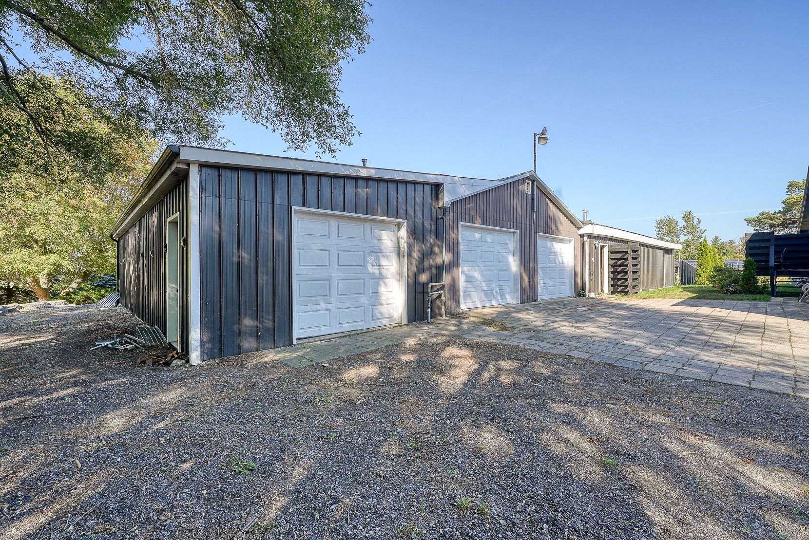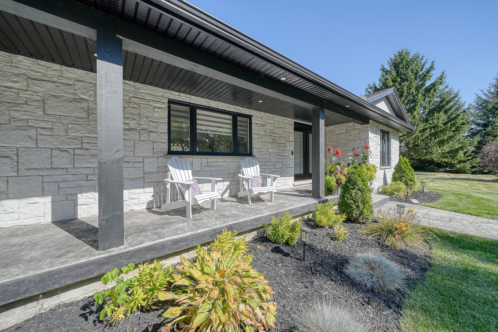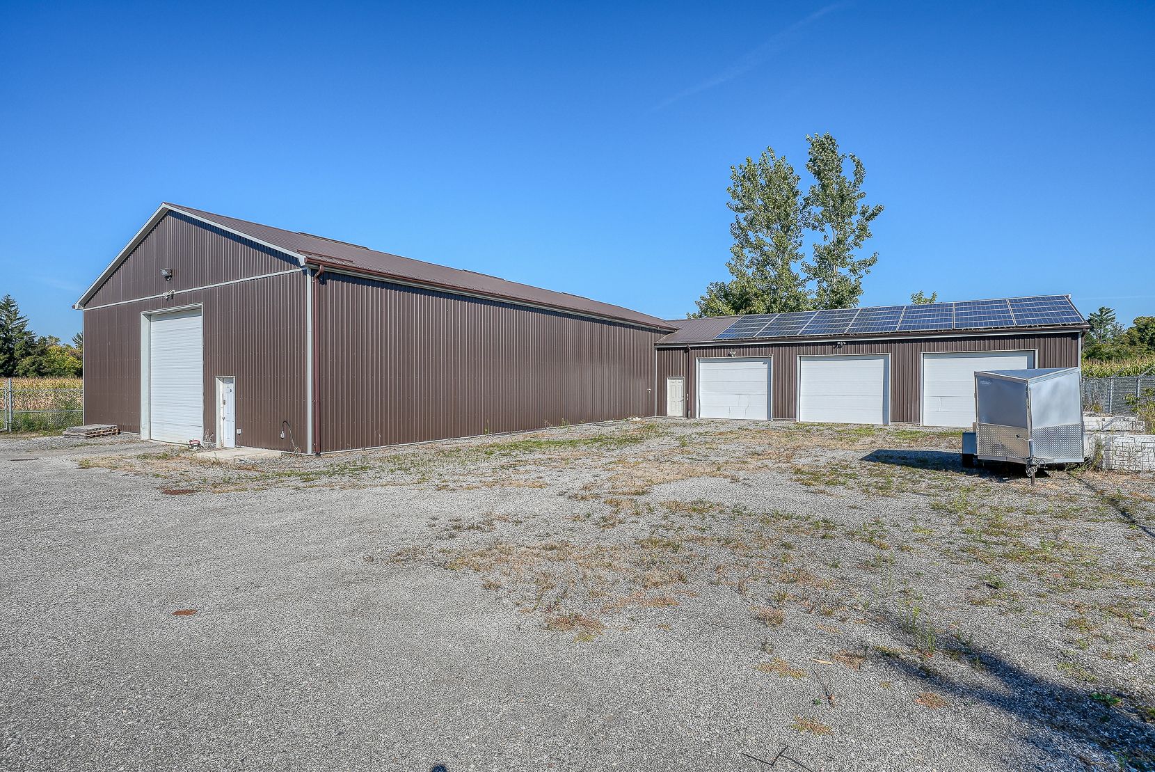 Welcome to a private ranch-style retreat, set on 37.85-42 acres and designed for those who value elegance, comfort, and space. A tree-lined laneway leads to this stunning residence, where contemporary stone and brickwork, a paved entry, and multiple garages (9 in total, including a heated and air-conditioned 2-car attached) set the tone for sophistication. Inside, the open-concept layout pairs luxury with functionality. The chefs kitchen features custom cabinetry, granite counters, and premium stainless appliances, seamlessly flowing to the dining area and stamped concrete patio, perfect for entertaining. A granite fireplace with WETT-certified insert offers warmth and style.The primary suite is a sanctuary with vaulted ceilings, a gas fireplace, two walk-in closets, a private terrace, and a spa-inspired ensuite with dual vanities, freestanding tub, walk-in shower, and separate bidet room. A spacious in-law suite with its own deck and ensuite offers comfort for extended family or guests.The light-filled lower level features oversized windows, a full bath, and versatile space for a gym, office, or rec room. Solid wood oversized doors and vaulted ceilings add timeless character throughout. Beyond the home, income opportunities abound with rental shop/office space, farmland, solar panels, and a fenced compound. Modern upgrades include on-demand hot water, water treatment system, and a 15kw roof-mounted solar system with off-grid potential.This estate blends luxury living with country serenity, offering space, privacy, income potential and lifestyle all in one just outside of town.