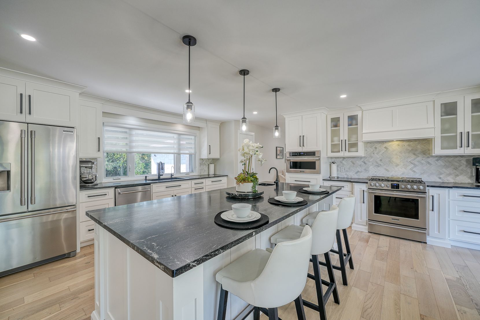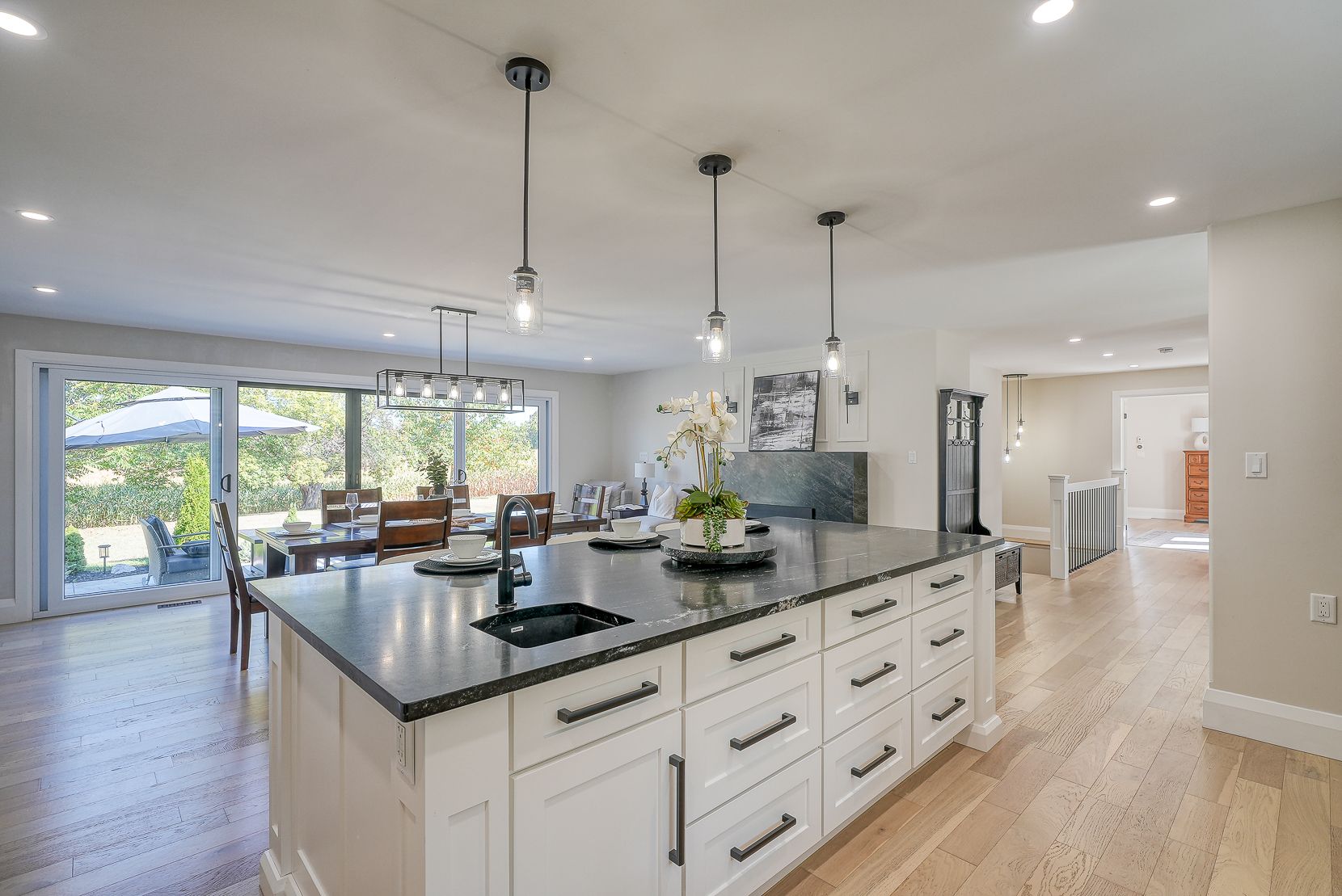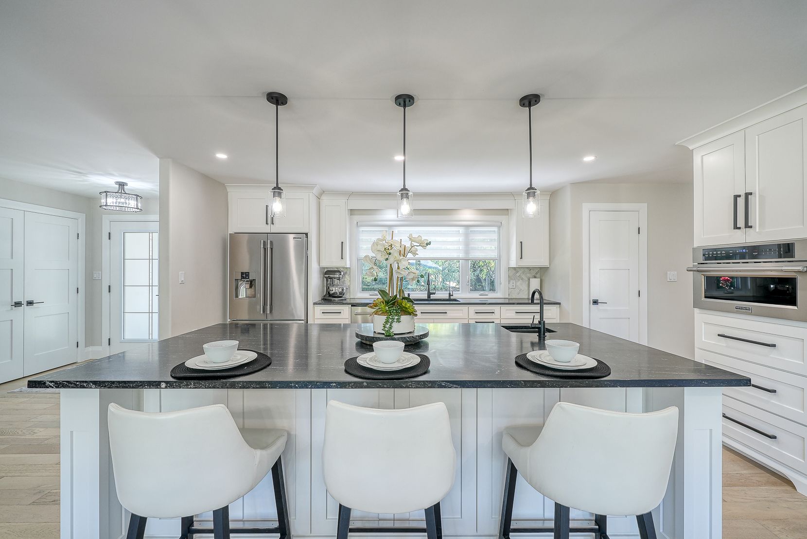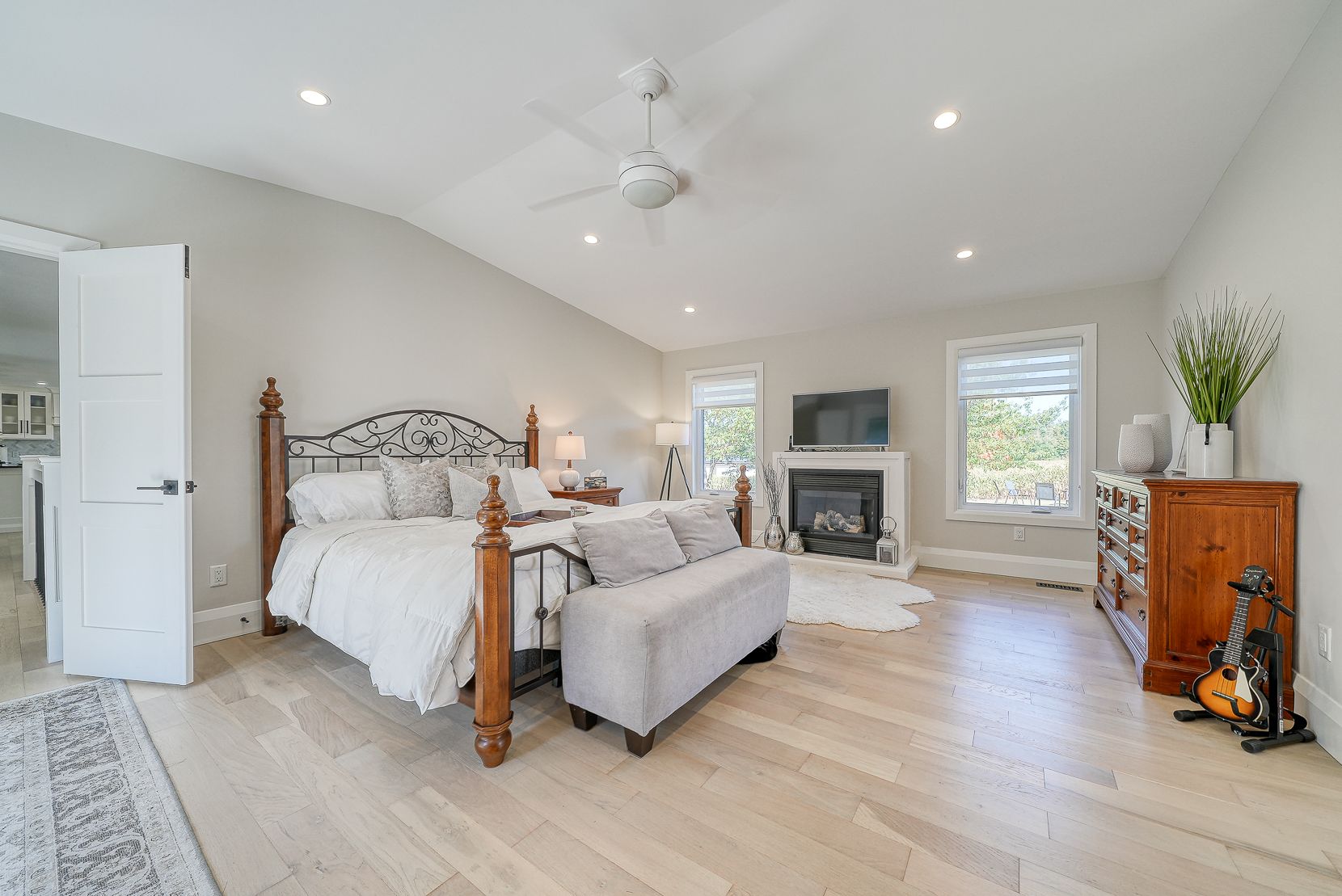 Welcome to a private ranch-style retreat, set on 37.85-42 acres and designed for those who value elegance, comfort, and space. A tree-lined laneway leads to this stunning residence, where contemporary stone and brickwork, a paved entry, and multiple garages (9 in total, including a heated and air-conditioned 2-car attached) set the tone for sophistication. Inside, the open-concept layout pairs luxury with functionality. The chefs kitchen features custom cabinetry, granite counters, and premium stainless appliances, seamlessly flowing to the dining area and stamped concrete patio, perfect for entertaining. A granite fireplace with WETT-certified insert offers warmth and style.The primary suite is a sanctuary with vaulted ceilings, a gas fireplace, two walk-in closets, a private terrace, and a spa-inspired ensuite with dual vanities, freestanding tub, walk-in shower, and separate bidet room. A spacious in-law suite with its own deck and ensuite offers comfort for extended family or guests.The light-filled lower level features oversized windows, a full bath, and versatile space for a gym, office, or rec room. Solid wood oversized doors and vaulted ceilings add timeless character throughout. Beyond the home, income opportunities abound with rental shop/office space, farmland, solar panels, and a fenced compound. Modern upgrades include on-demand hot water, water treatment system, and a 15kw roof-mounted solar system with off-grid potential.This estate blends luxury living with country serenity, offering space, privacy, income potential and lifestyle all in one just outside of town.
