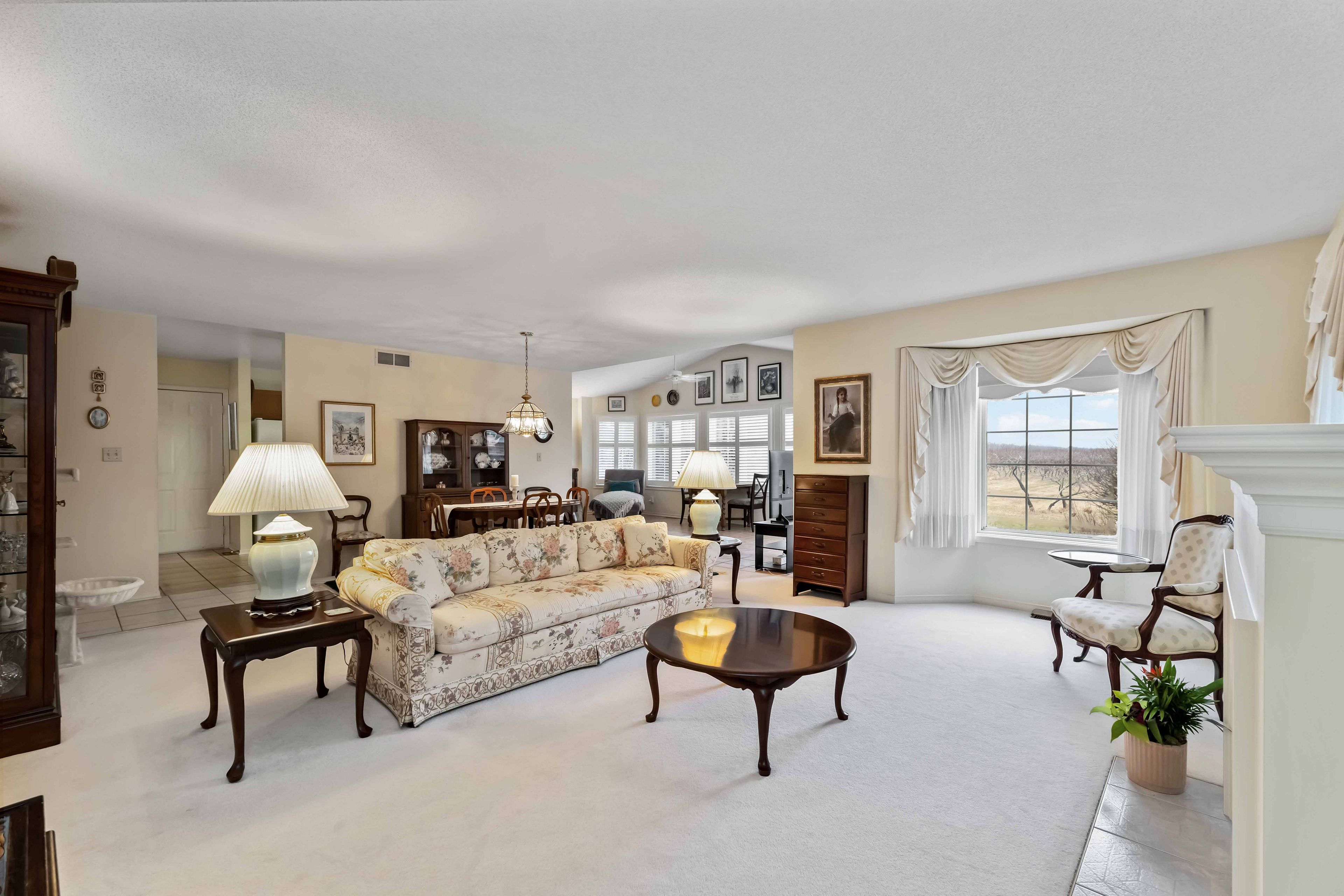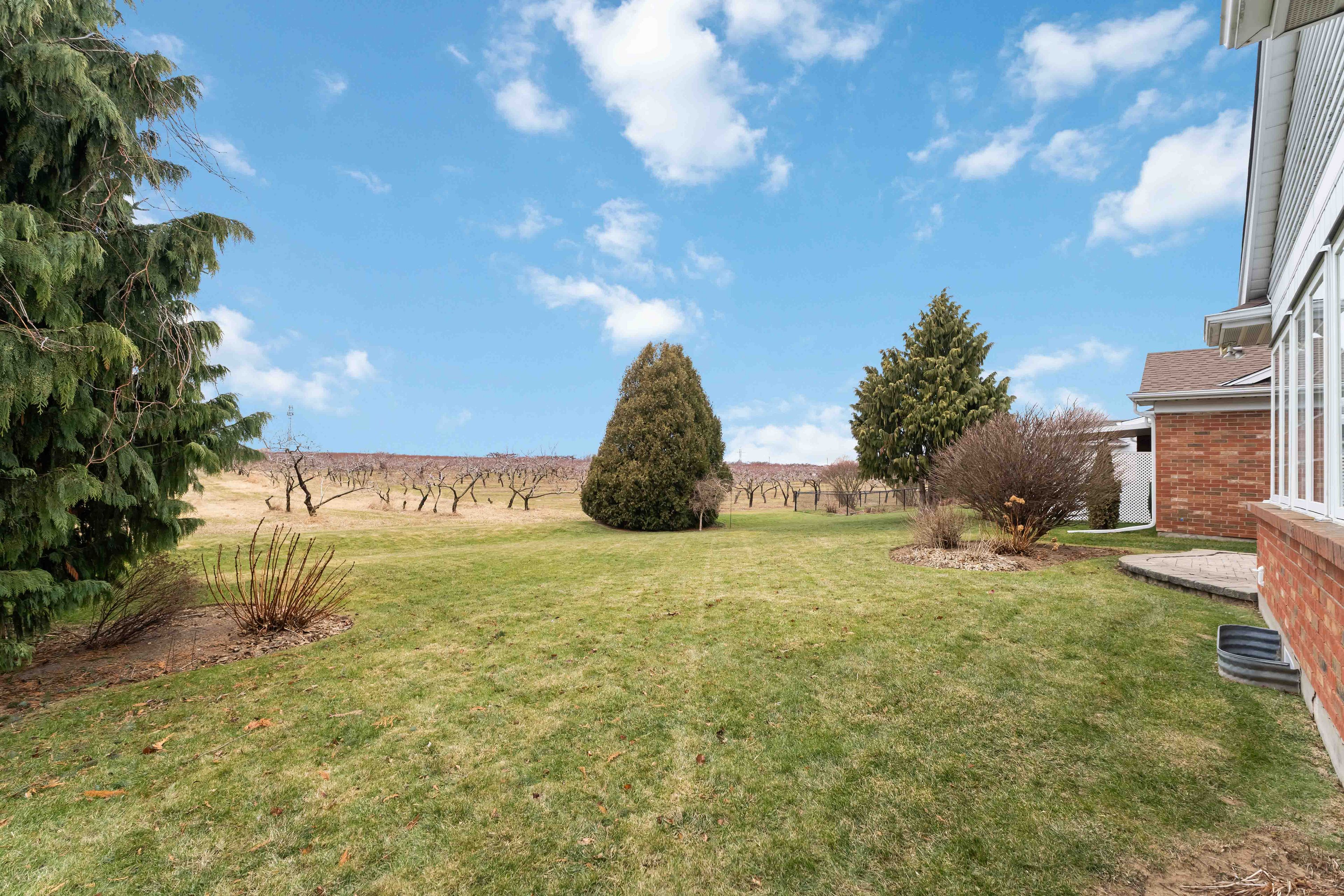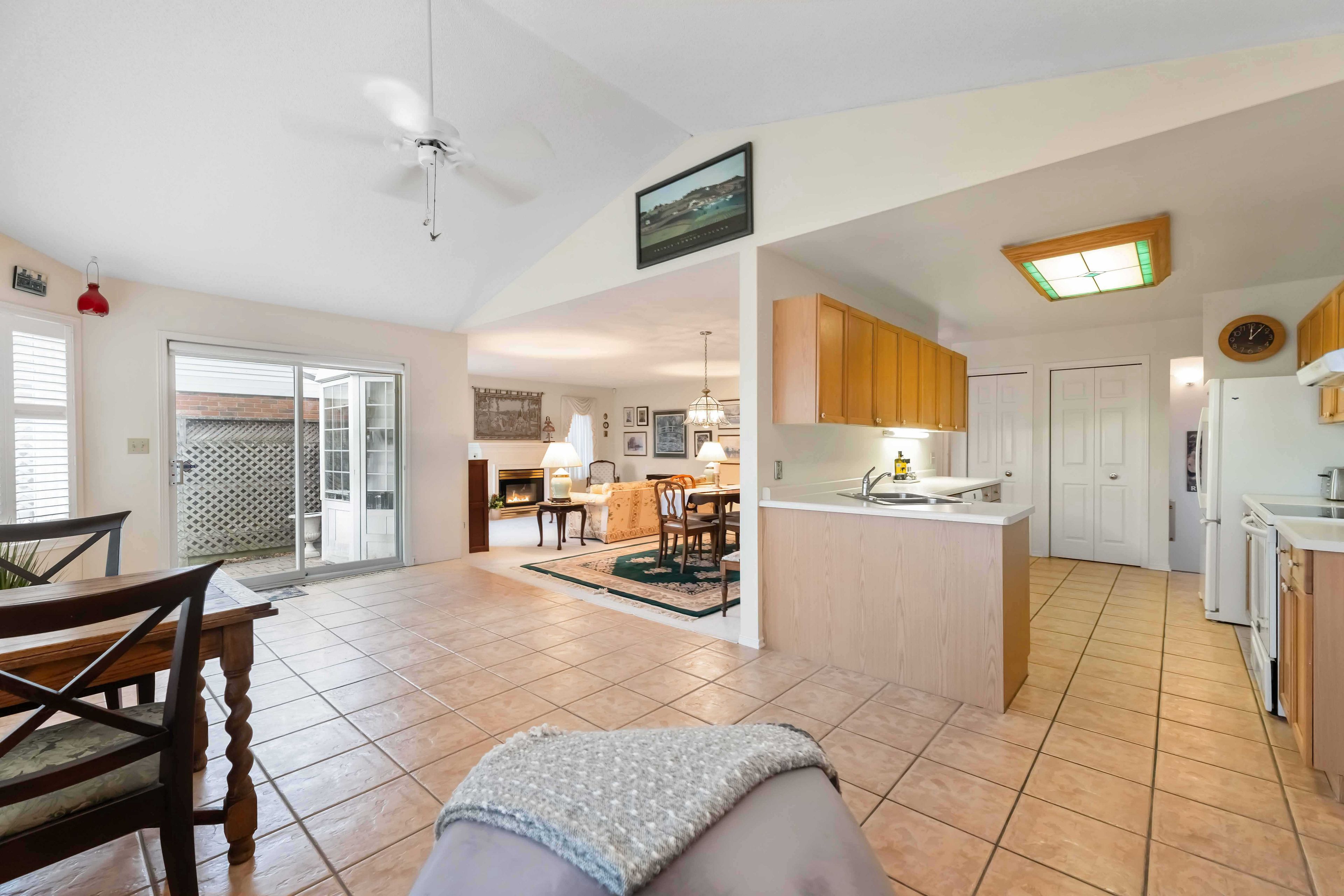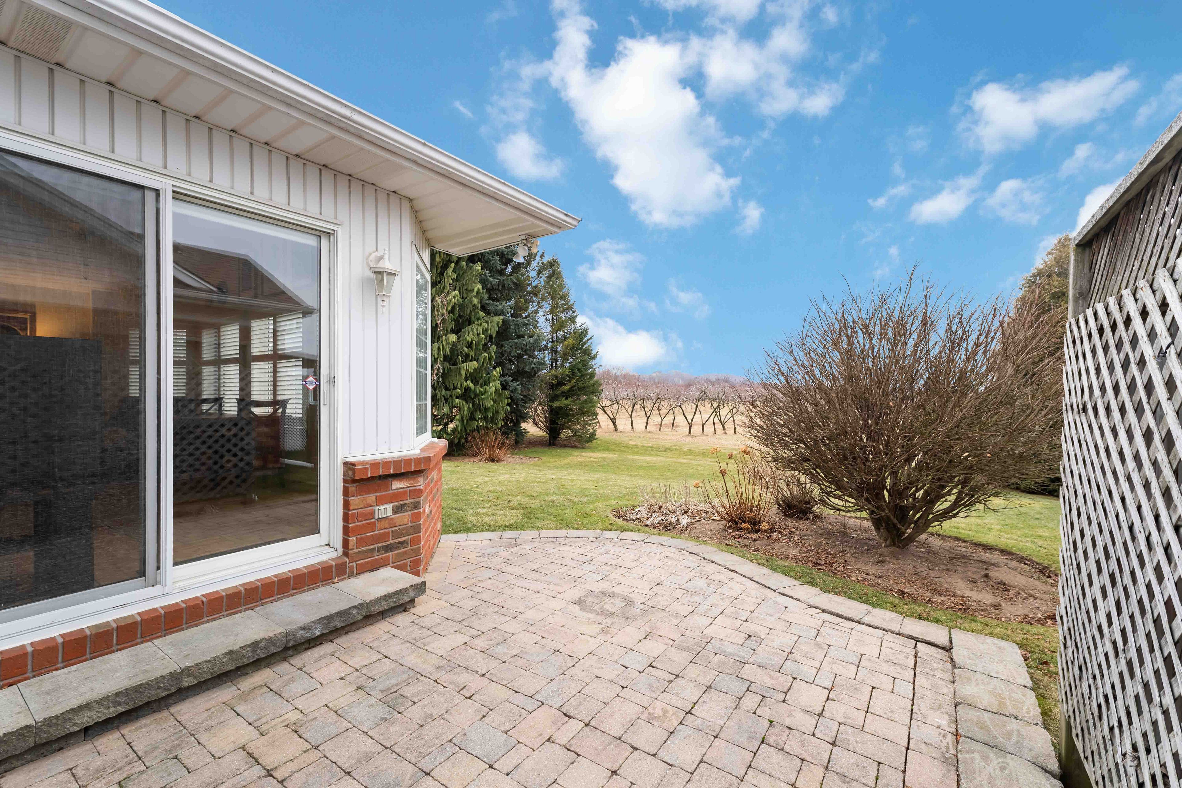Backing onto a peach tree orchard with stunning western escarpment views, this freehold bungalow with linked garage in Heritage Village offers a rare blend of privacy, comfort and wine-country lifestyle. The home enjoys a peaceful setting in a sought-after location close to award-winning wineries, conservation areas and scenic walking trails. With over 1500 sq ft on the main floor plus a finished basement, this inviting bungalow features 2 spacious bedrooms, 2.5 bathrooms with a bright, welcoming flow designed for easy everyday living. The heart of the home is the spacious country kitchen offering abundant cabinetry, California shutters and a generous dining area - perfect for lingering over morning coffee while taking in the orchard views. Sliding doors lead to a lockstone patio, ideal for summer enjoyment, relaxing surrounded by nature. The sun-filled living room showcases a cozy gas fireplace and an abundance of natural light. The main floor primary bedroom is a true retreat with plenty of room for a king-size bed, a generous walk-in closet and a private ensuite bathroom. The second bedroom is also impressively sized with great closet space and convenient access to the adjacent four-piece bathroom. Additional features include main floor laundry plus direct entry to the attached single car garage. The garage also has access to the backyard, making it easy to bring out the lawnmower and gardening tools - plus the extra-long driveway provides parking for up to three other vehicles. Downstairs, enjoy a large, finished recreation space, 2-piece powder room, handy workshop area with wall mounted storage for tools and supplies plus lots of extra closet space. Ownership in Heritage Village includes exclusive Clubhouse privileges ($70. p/month) with heated saltwater indoor pool, gym, wet & dry saunas, craft room, woodworking shop and a full calendar of activities and events. A rare chance to enjoy Niagara's best lifestyle - right from your own backyard!