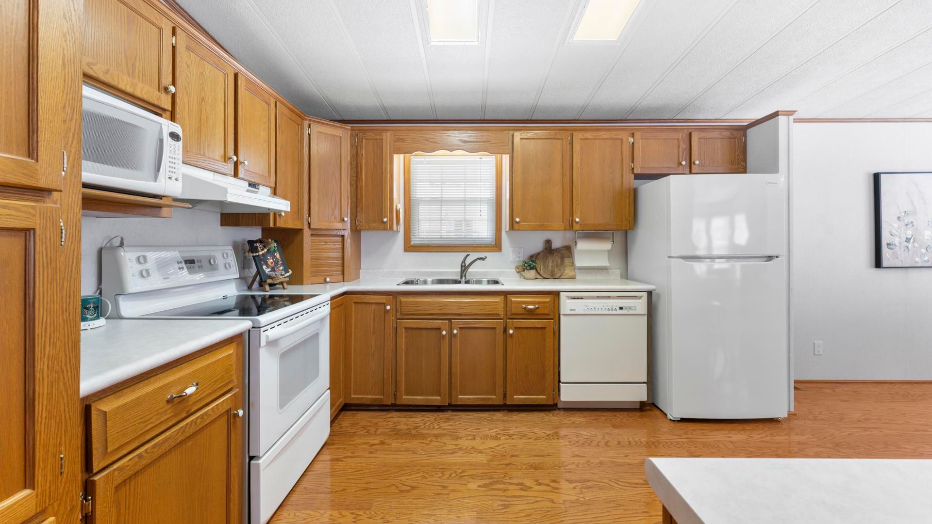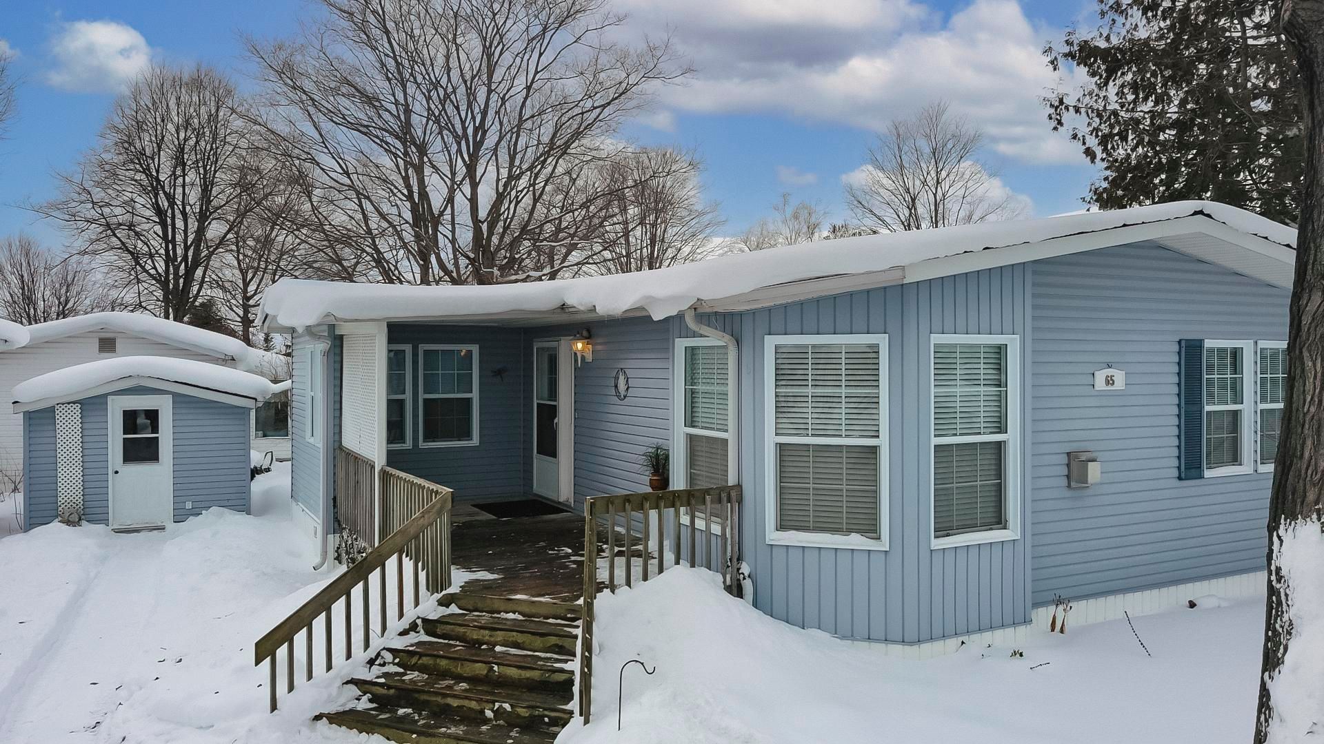 Settle into easy, low-maintenance living at 65 Cherokee Lane in sought-after Meneset on the Lake, a friendly community offering private community access to the beautiful shores of Lake Huron. This meticulously maintained 2 bedroom, 2 bathroom home is filled with natural light and offers a comfortable, functional layout. The spacious primary bedroom features its own ensuite, while the second bedroom and additional full bath provide ideal space for guests. Enjoy the open flow through the generous kitchen and dining area into the inviting living room, complete with a cozy gas fireplace for relaxing evenings. The den offers further flexibility for an at home gym, office, hobbies or quiet sitting area. Outside, a nice big deck is perfect for entertaining, BBQs, or quiet mornings, and a detached storage shed adds excellent storage for tools, seasonal items, and outdoor gear. Just minutes to the shops, dining, and amenities of Goderich, this is a wonderful opportunity to enjoy a peaceful lifestyle near the lake.