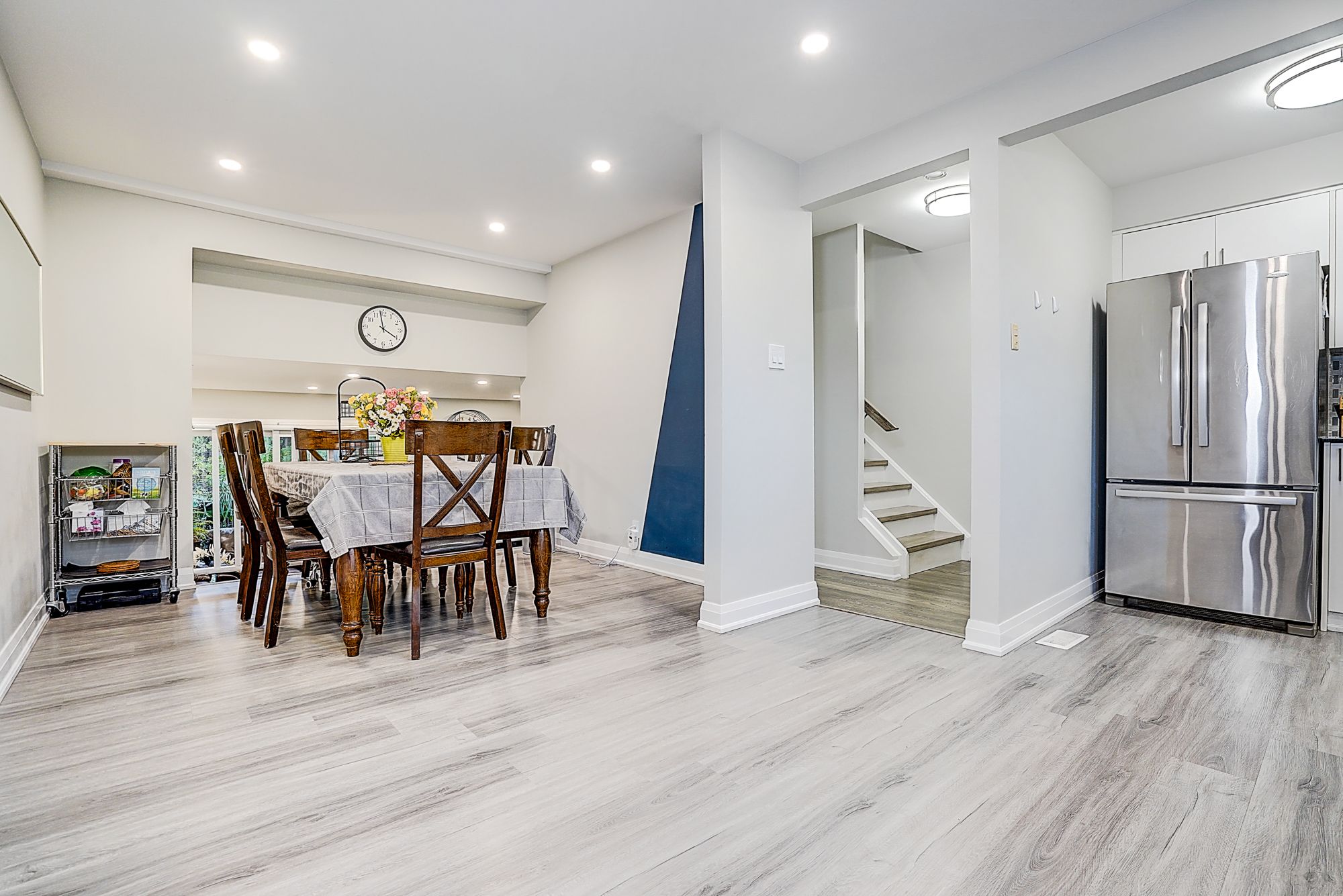 Welcome to this bright, well-maintained, and move-in-ready 3-bedroom townhouse located in the highly desirable L'Amoreaux neighbourhood. Freshly painted and featuring newer engineered hardwood flooring throughout. The home boasts a functional open-concept layout, including a spacious living room with a walk-out to a private balcony, a family-sized kitchen with a breakfast nook overlooking the dining area, and airy, sun-filled rooms thanks to its south-facing exposure. The finished basement features a convenient laundry room and walk-out access to the backyard, providing added functionality and outdoor enjoyment. Situated in a safe, family-oriented complex, this property is steps away from TTC, parks, schools, and just minutes to Hwy 404/401, Fairview Mall, Don Mills Subway, groceries, and dining. Lots of upgrades: Roof 2020, Furnace, Hot Water & A/C 2017, flooring 2021, smooth ceiling 2021. Zoned for top-rated schools, including Fairglen (Gifted Program) and MacDonald (AP Program), this home provides exceptional value in a prime location. Perfect for first-time buyers and growing families, don't miss your chance to own in this sought-after community.
