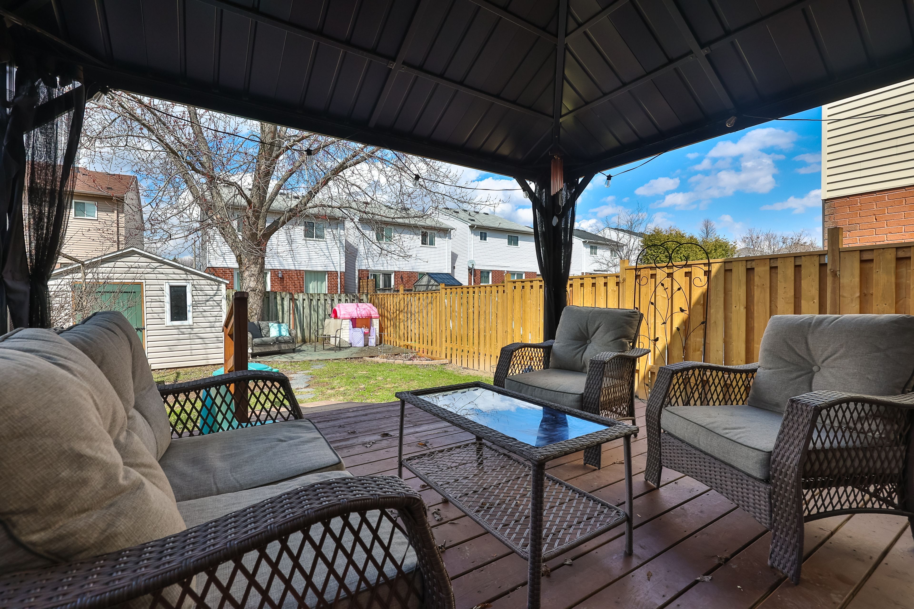 Welcome to this beautifully maintained, move-in ready end unit townhome in Bowmanville! With just over 1800sq ft of living space this freshly painted throughout freehold end unit townhome consists of 3 generous size bedrooms upstairs that consist of a primary bedroom with triple door closets. Recently reno'd(2023) inlaw suite in basement allows for room for a growing family or potential extra income. With above grade windows this basement feels airy and bright. Extra storage located throughout the home, as well with a double door closet in the hallway on the second floor. The main floor has an open concept layout with living and dining room, large galley style eat in kitchen with access to fenced in backyard. Enjoy your summers in your large backyard with a deck recently done in 2021, with a gazebo and shed. Or stay cool with the new AC installed in 2025. Driveway extension done in 2023 to allow for more parking. Fantastic location of this home with everything being conveniently close by. Top rated public and catholic schools all within 10-14min walking distance, multiple parks within walking distance, closest being only a 1 min walk away. The bus stop for public transit is a short 14min walk. Lakeridge health hospital 8 min drive away and popular rec center just a short 5min drive away. Don't miss out on this one, offer anytime!