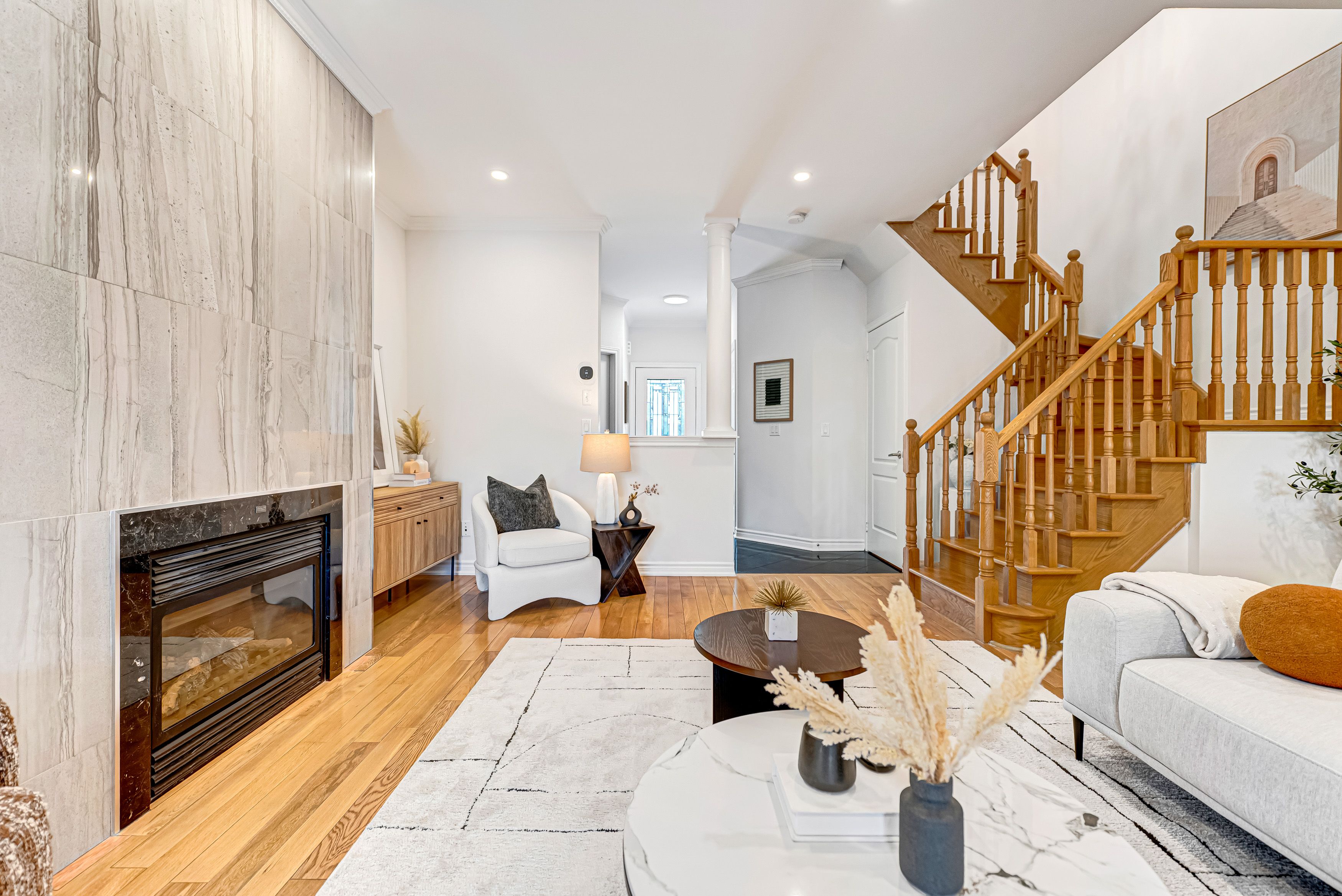 Stunning 3-Bedroom Freehold Townhome in Prime Richmond Hill. Rarely offered extra-deep lot (144.64 ft) in a highly desirable neighbourhood. This beautifully maintained home features 9' smooth ceilings with abundant pot lights on the main level, hardwood flooring throughout the first and second floors, and elegant oak staircases. The functional layout is anchored by a cozy gas fireplace, creating a warm yet sophisticated living space. The modern kitchen offers stone countertops, stainless steel appliances, and a spacious dining area with a walk-out to a large deck-perfect for entertaining and outdoor gatherings. The oversized primary suite includes a generous walk-in closet and a luxurious 5-piece ensuite. Enjoy the convenience of direct garage access. The finished basement features a large recreation area and a 3-piece bathroom, ideal for a home office or family movie nights. A widened driveway with no sidewalk allows parking for three vehicles, plus one in the garage-four parking spaces in total. Located within top-ranking school zones (Richmond Rose P.S. & Bayview S.S.) and close to parks, schools, transit, and community center. A must-see property that shows beautifully and offers exceptional value. Recent upgrades includes: New Roof Shingles Was Replaced In 2024, Still With Warranty. New Central Air Conditioner Was Replaced In Jul 2025. New Furnace Was Replaced In 2024.