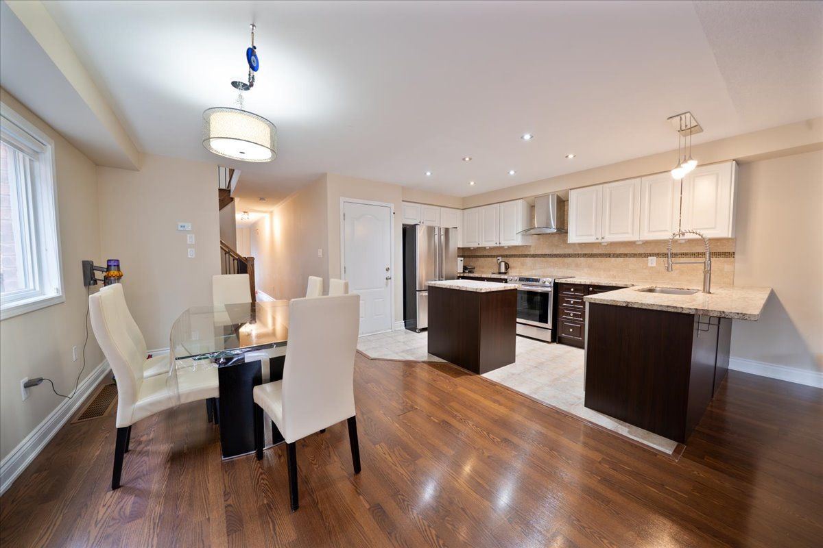 Must see this exceptional, approximately 2,020 sq ft end-unit townhome is finished to the highest quality materials throughout and boasts a layout with the potential for an in-law suite via a separate entrance to the finished basement. The main floor features a stunning open-concept design with 9-foot ceilings, a large kitchen with a centre island, two-tone cabinetry, stainless steel appliances, and a living room bathed in natural light from ample windows, combined with dining room. Upstairs, you'll find four (4) spacious bedrooms, upper level laundry room. including a primary bedroom with large windows, an ensuite bathroom, and a walk-in closet, plus a second (2) bedroom with balcony access. Finished basement in-law suite, above grade windows throughout. with separate entrance, New Kitchen with S/S appliances, Combined living room and dining room. Immaculate and move-in ready, this home is perfectly located close to all amenities, schools, parks, transportation, and major highways