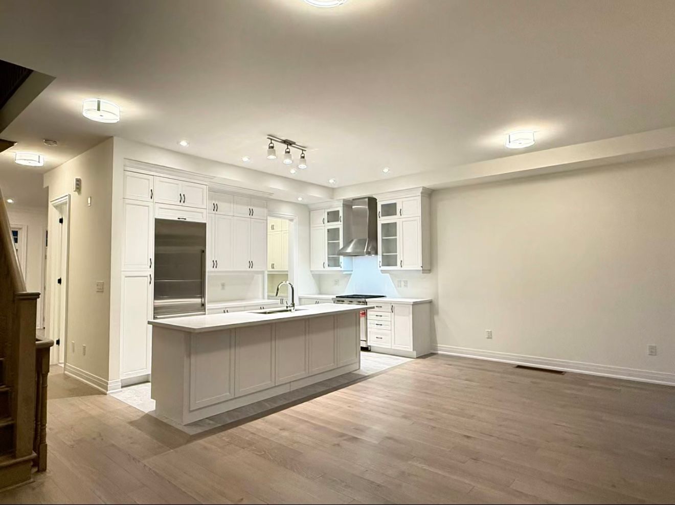 Discover unparalleled luxury in this brand-new, move-in-ready end-unit Kylemore executive townhome in prestigious Angus Glen. This rare 4-bed, 4-bath home (approx. 2,620 sq. ft.) is set on a premium lot backing onto a private, treed ravine. Beyond the front door, the home has been extensively upgraded with smooth ceilings and premium White Oak hardwood flooring throughout the entire property.The stunning main floor features 10-ft ceilings and pot lights, with a formal room opening to a spacious front balcony. The gourmet kitchen is a true showstopper, customized with stacked cabinetry with crown molding, glass insert doors, quartz counters, a massive island, a walk-in pantry, and elite Sub-Zero & Wolf appliances. It flows seamlessly into a family room with a walk-out to a private deck overlooking the tranquil ravine.The upper level is designed for convenience and comfort, featuring the relocated laundry room and a primary suite that serves as a true sanctuary. The primary boasts a dramatic cathedral ceiling, two walk-in closets, a private balcony, and a spa ensuite with a double vanity and an upgraded oversized frameless glass shower.The fully finished ground level offers incredible versatility. It includes a large 4th bedroom/media room, a custom 3-piece bathroom, and a walk-out to the fenced backyard-ideal as an in-law suite. Complete with a double-car garage and located in the top-ranked Pierre Elliott Trudeau HS district, this home is steps from parks, Angus Glen CC, and Main St. Unionville.