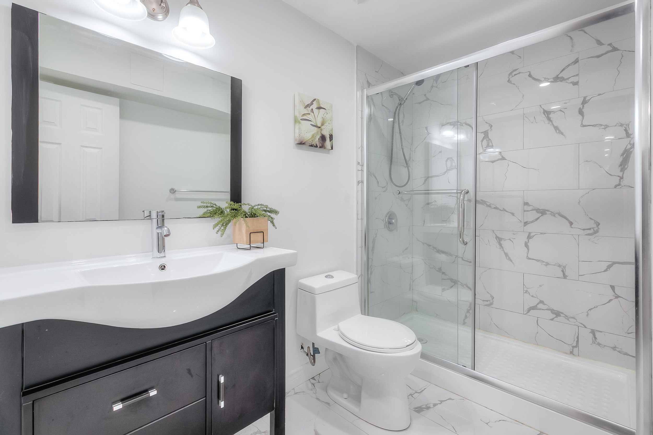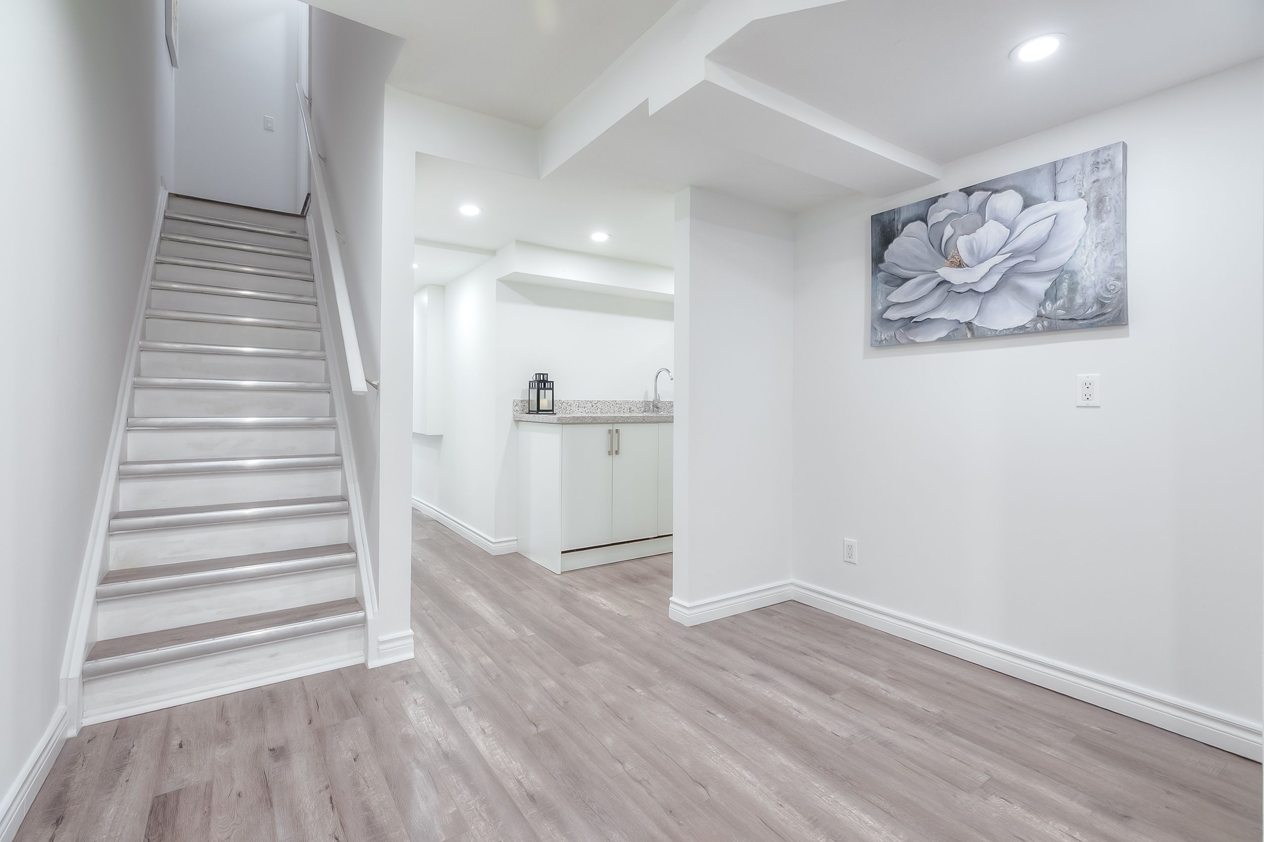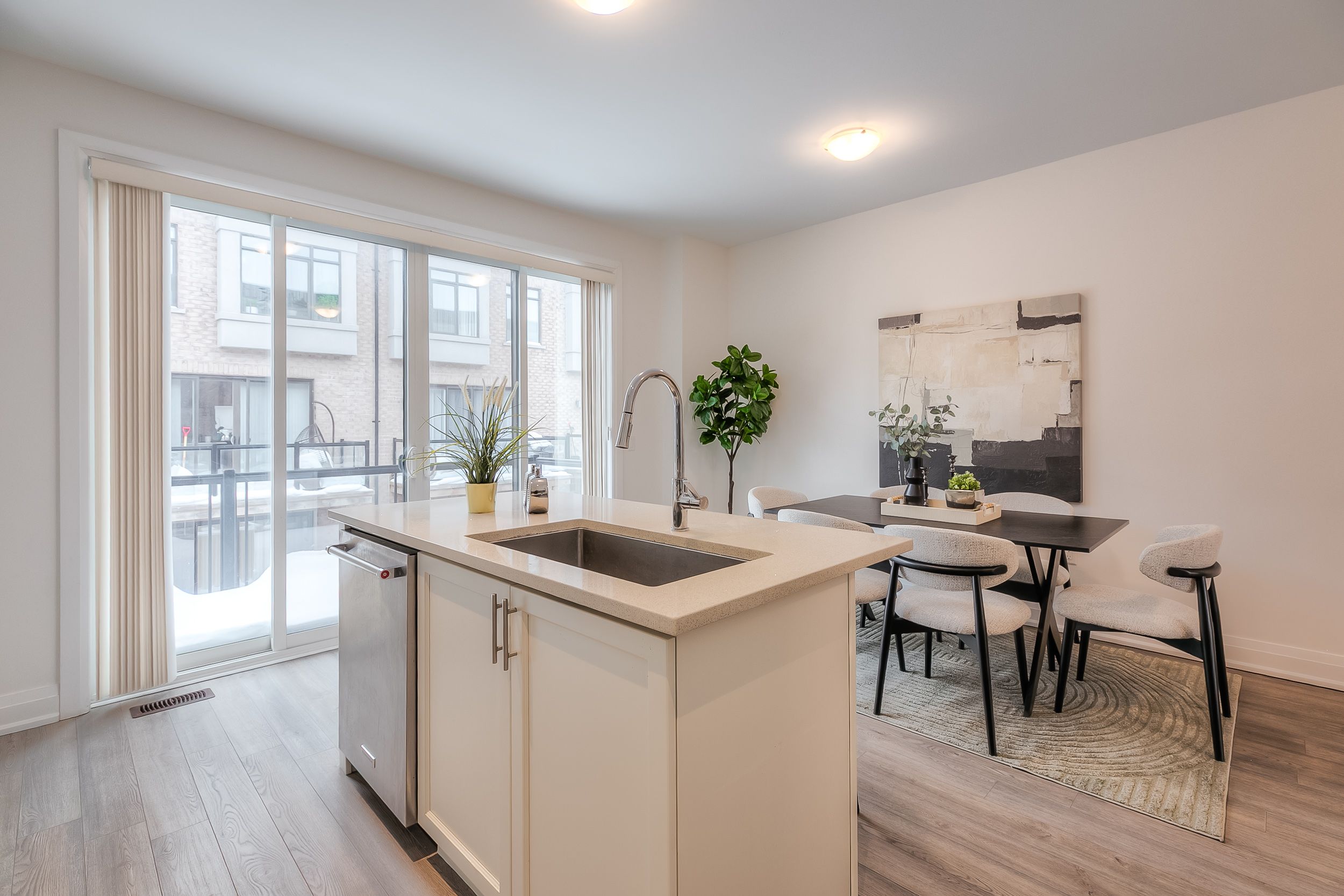Welcome To This Stylish & Sun-Filled Freehold Modern Townhome (No Maintenance Or POTL Fees!) Bright Open Concept Design W/ Oversized Windows, Pot Lights & Elegant Finishes. Chefs Kitchen Features A Large Centre Island, Quartz Countertops, Modern Backsplash, Stainless Steel Appliances & Upgraded Cabinetry W/ Tons Of Storage. 3 Spacious Bedrooms Upstairs + Renovated Basement W/ Extra Bedroom & 3-Pc Bath With Rough In Kitchen, Perfect For Guests Or In-Law Suite. Main Floor Great Room Walk-Out To Backyard. Just 2-Min Walk To GO Station, Close To Shops, Community Centre, Library & Award-Winning Eagles Nest Golf Club. Top Ranking School!!! Elementary: Michael Cranny Elementary School; Secondary: Stephen Lewis Secondary School. A True Gem That Blends Convenience, Comfort & Style Don't Miss It!