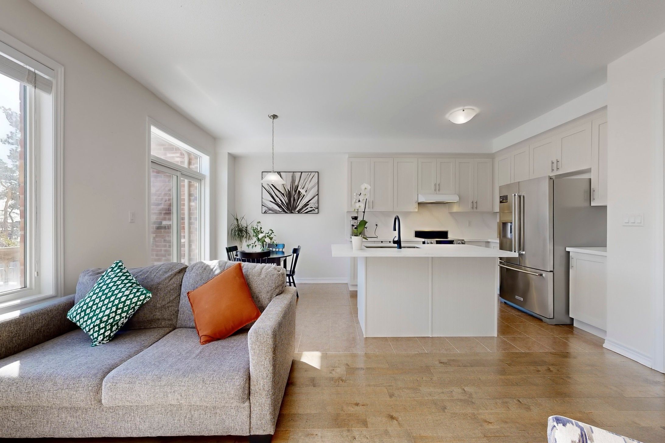 Located in one of Jefferson's most desirable neighborhoods and surrounded by protected greenbelt and golf course lands, this area benefits from minimal through-traffic and enduring privacy. Sun-filled 3-bed freehold townhouse in coveted Jefferson Forest. Bright south-facing living & breakfast areas, open-concept main floor with hardwood throughout. Primary bedroom with walk-in closet & 4-pc ensuite. Convenient 2nd-floor laundry. Upgraded hardwood staircase with runner & iron pickets. Direct garage access. Look-out basement (above-grade windows) for future rec room. Deck & private fenced backyard siding onto ravine/greenspace-enhanced privacy and nature at your door. 2-car driveway. Steps to Yonge/YRT/Viva, parks & shopping; quick access to Hwy 404. Within Richmond Hill High School area.