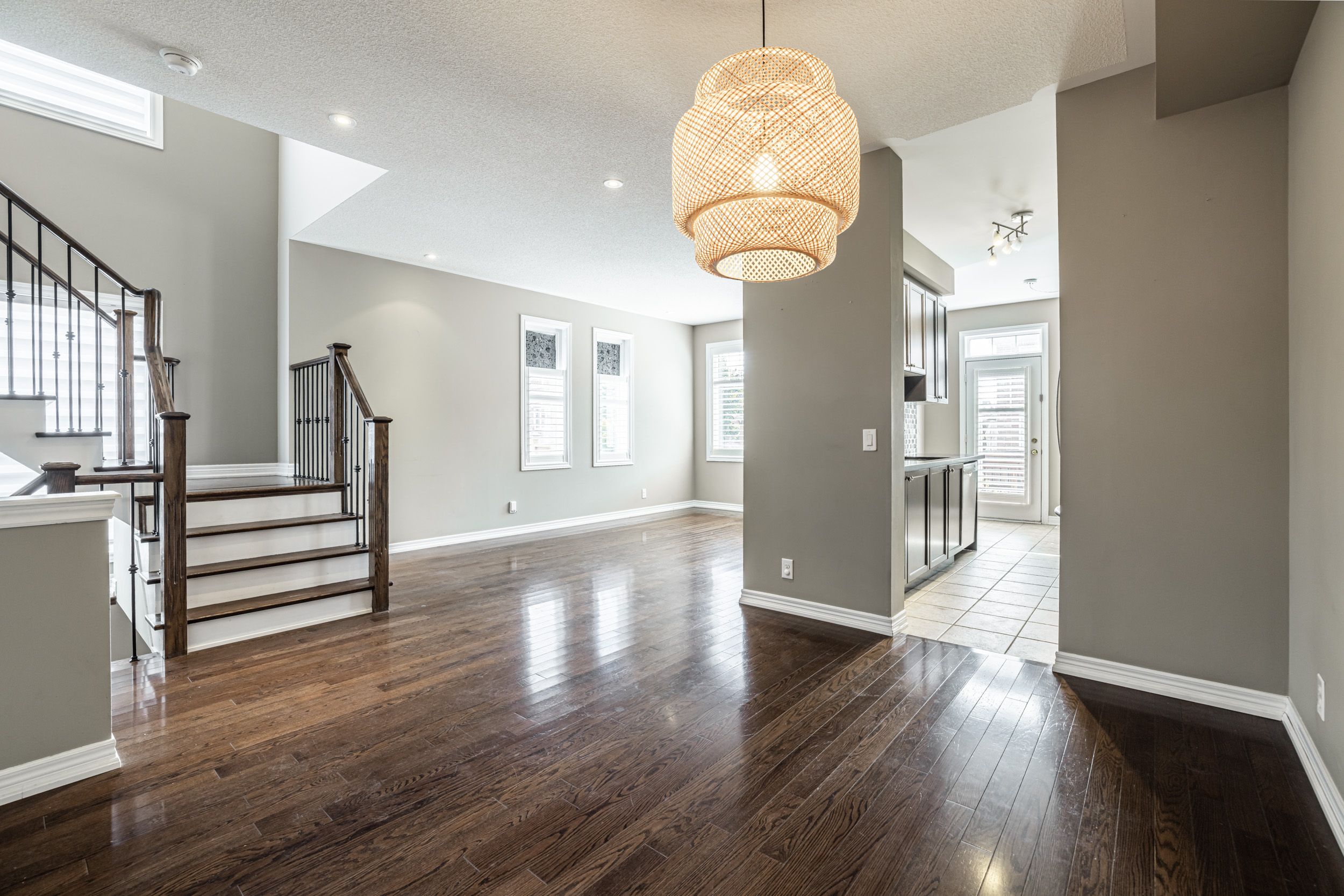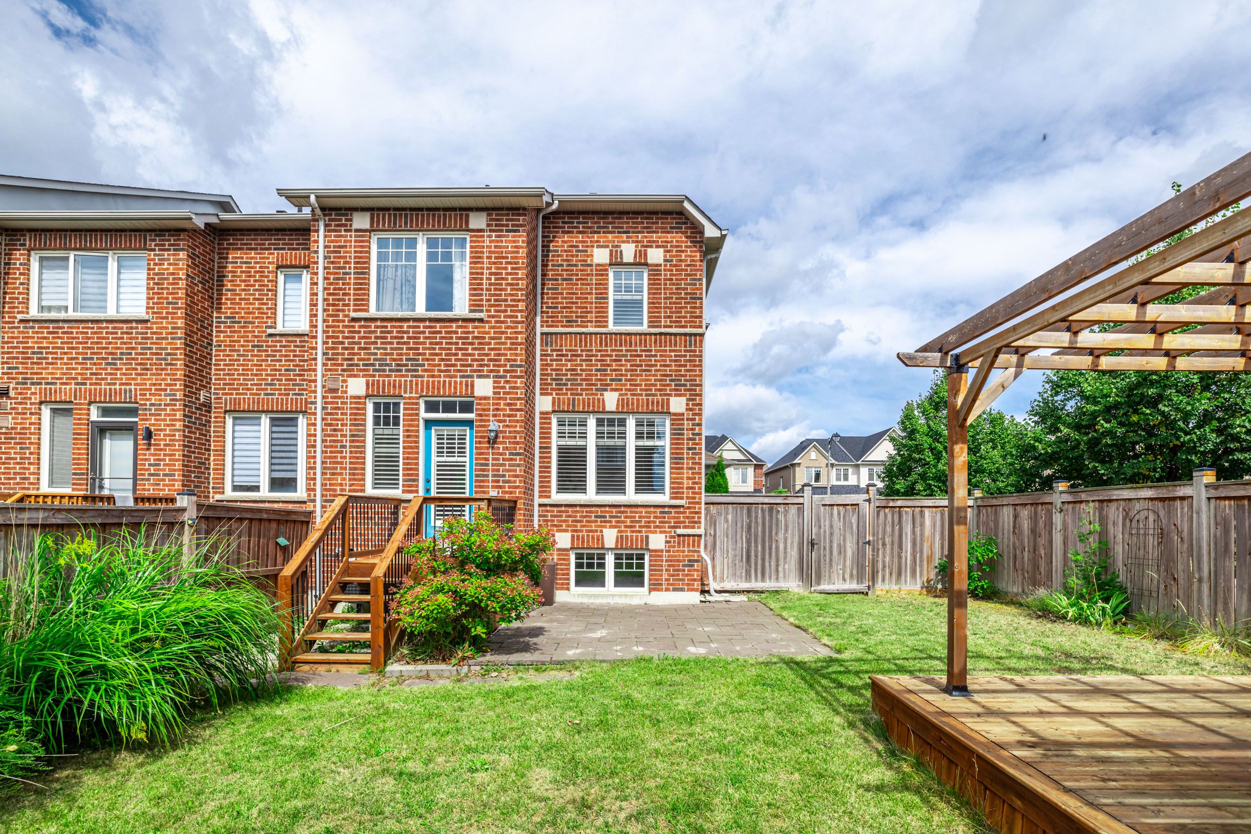 Beautiful end unit townhome in a highly desirable Harvest Hills family-friendly community. With over 2,000 sqft of living space, this home features a very functional layout and 9 ft ceilings on the main floor, creating an open feel. Enjoy direct access to the garage and sun-filled rooms with large windows. The spacious finished basement with a cozy fireplace is perfect for entertainment. Step outside to a huge backyard with a pergola, ideal for relaxing or gatherings. Conveniently located just steps away from schools, parks, trails, shopping, and transit. Minutes to Upper Canada Mall, Costco, GO train, and much more!