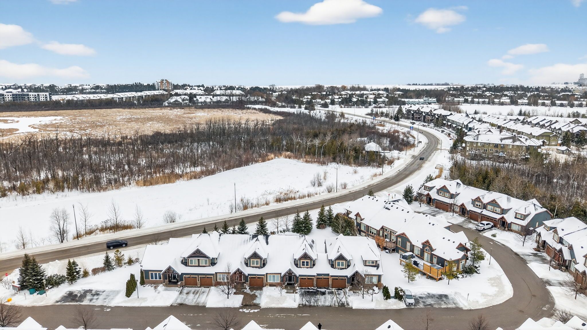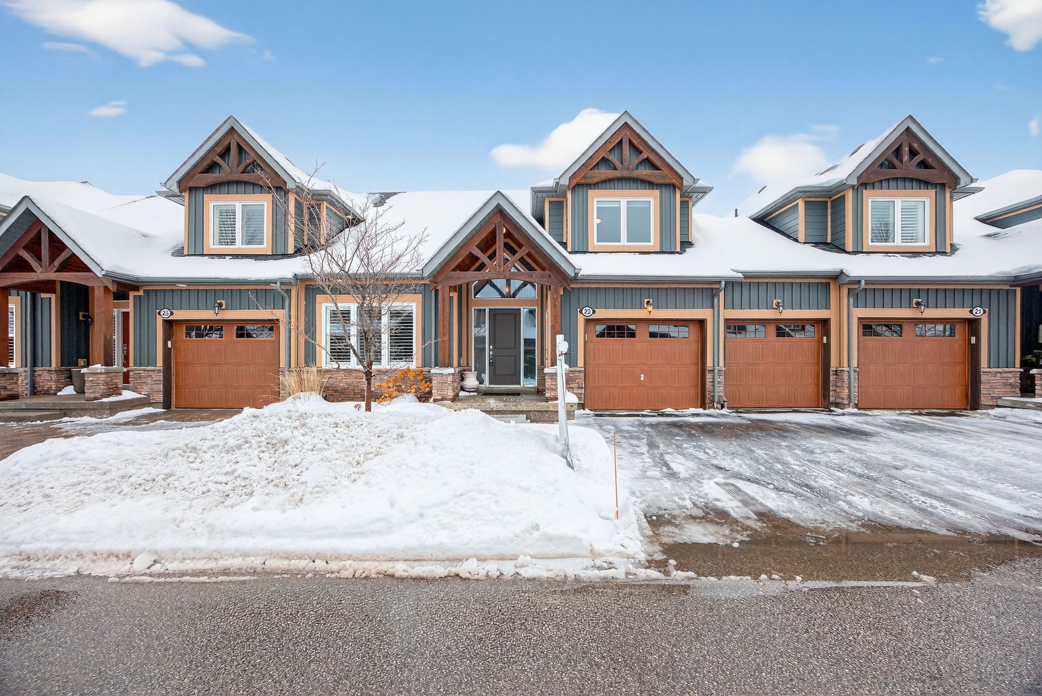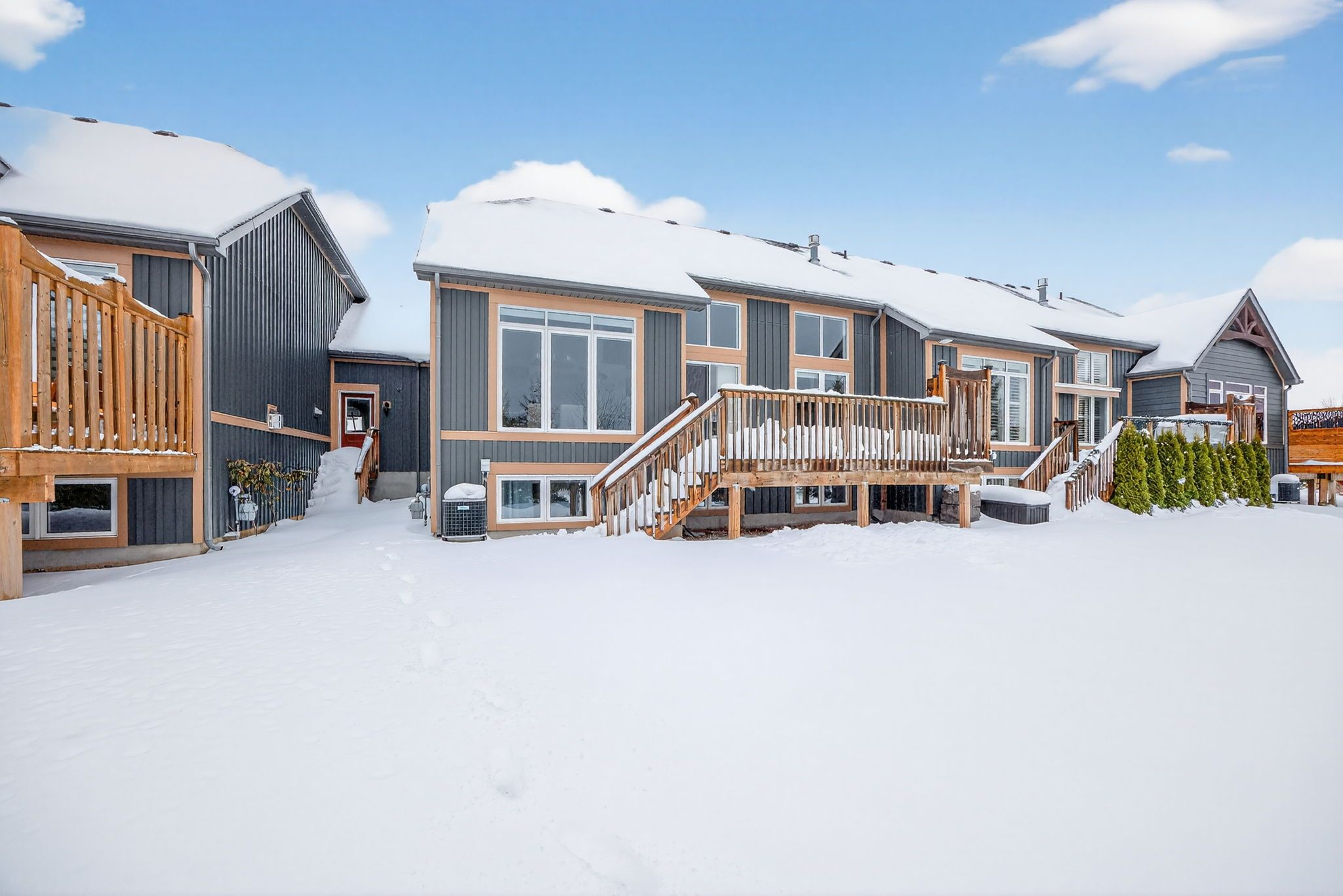 Gorgeous Bungalow Loft Townhome At The Enclave At Blue Fairway! Nestled On A Quiet, Unique Street Within The Scenic Cranberry Golf Course, This Bright And Inviting Open-Concept Townhome Features Vaulted Ceilings, Oversized Windows, And An Abundance Of Natural Light Throughout. Ideally Located Close To Blue Mountain And Downtown Collingwood, With Great Neighbours And A Peaceful Setting, This Home Is Truly Move-In Ready And Has Been Meticulously Maintained.The Kitchen Offers Builder-Upgraded Finishes Including Quartz Countertops, A Stylish Backsplash, And A Large Island-Perfect For Everyday Living And Entertaining. The Main-Floor Primary Suite Includes California Shutters And A Spacious Ensuite, While A Second-Floor Guest Bedroom With Its Own Bathroom Provides Excellent Privacy For Visitors Or Family. Enjoy Contemporary, Neutral Décor With Hardwood Flooring In The Great Room And A Floor-To-Ceiling Stone Gas Fireplace That Adds Warmth And Character. Step Out Onto The Sunny Deck Overlooking A Backyard With Natural Greenery And A Sprinkler System, Offering A Low-Maintenance Outdoor Space. The Bright Lower Level Features A Comfortable Family Room And A Separate Bedroom, Along With A Full Bathroom And Large Windows That Allow Plenty Of Natural Light. Additional Features Include Central Air, Select Upgraded Light Fixtures, And Evident Pride Of Ownership Throughout. This Exclusive Enclave Of Just 26 Homes Offers Freehold Ownership Plus One Share Of Common Elements, With Grass Cutting And Snow Removal Included In The Condo Fee. Ideally Located Close To Collingwood, Blue Mountain, Golf, The Georgian Trail, And Waterfront Parks. Don't Miss This Opportunity In One Of Collingwood's Most Desirable Enclaves.
