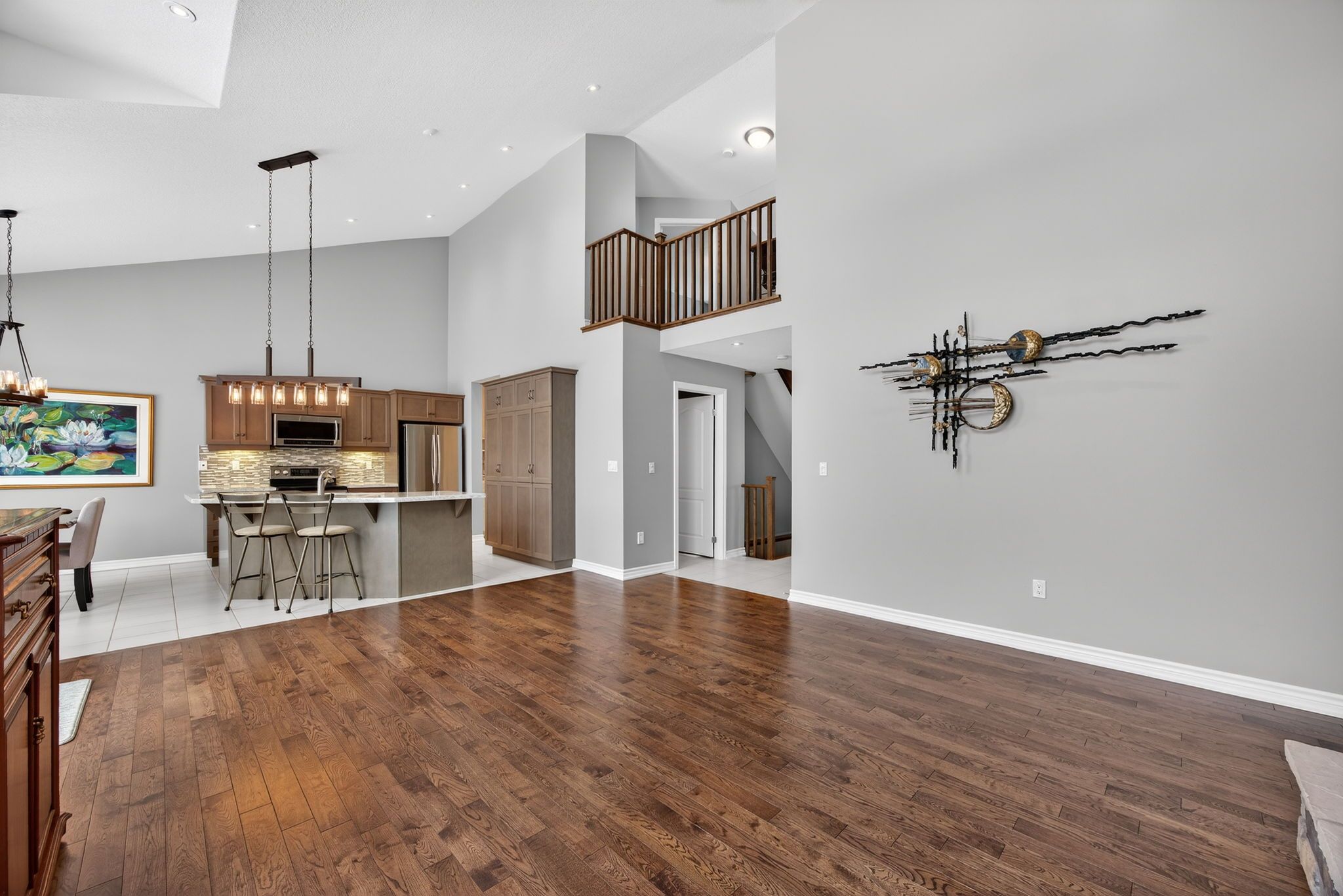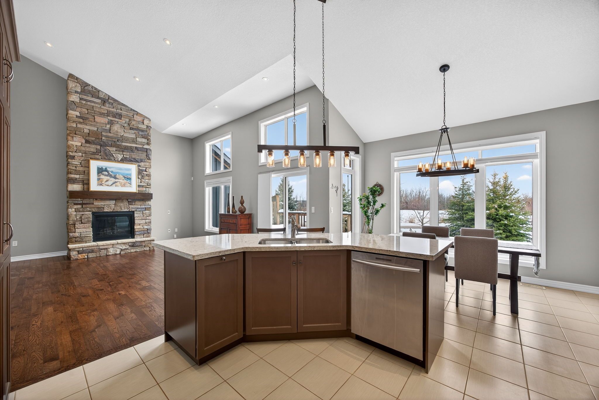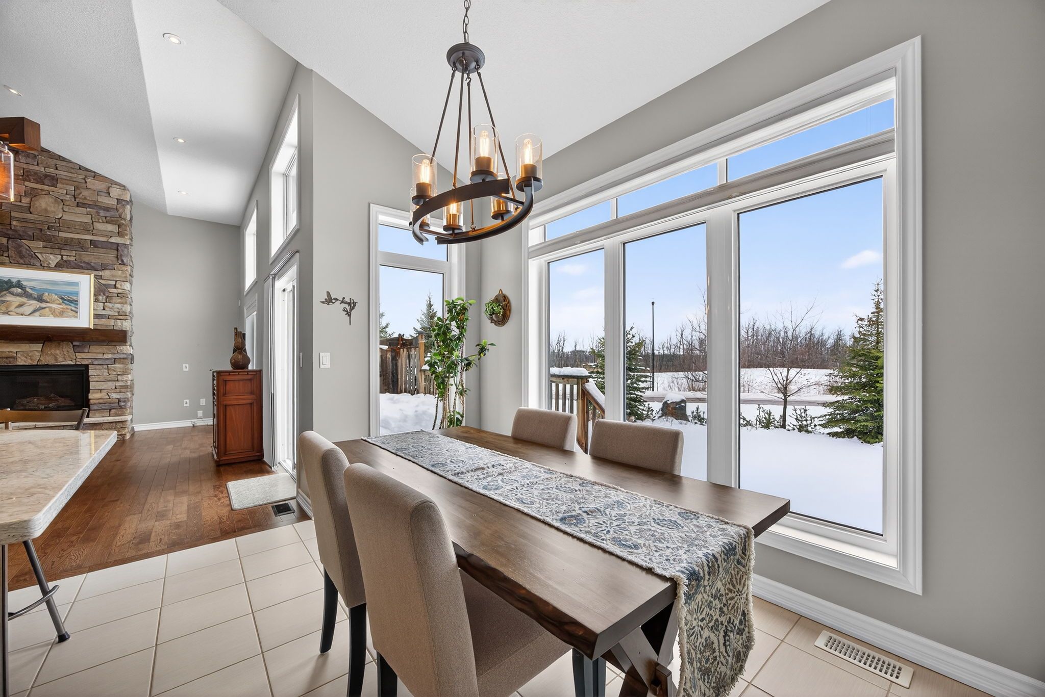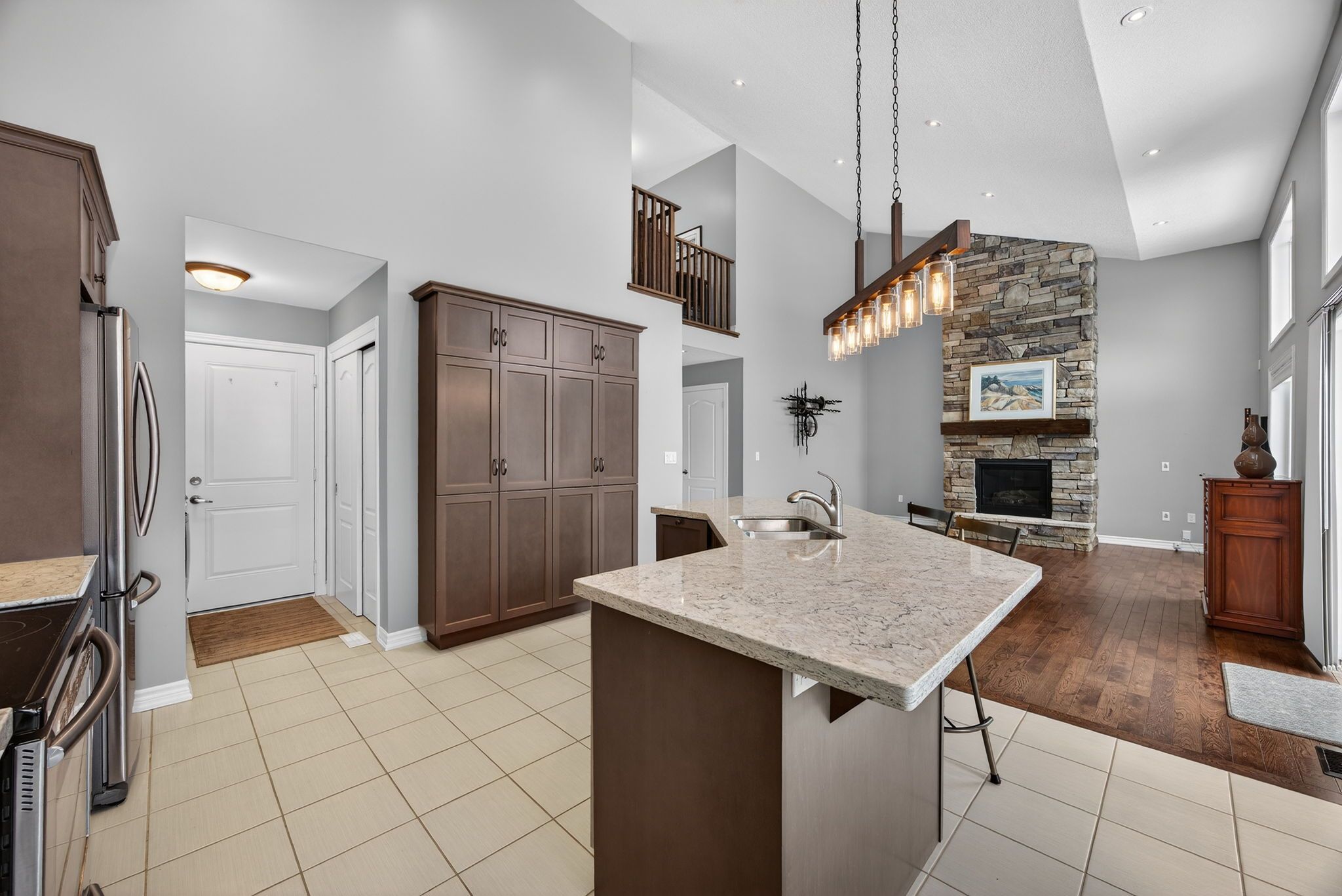 Gorgeous Bungalow Loft Townhome At The Enclave At Blue Fairway! Nestled On A Quiet, Unique Street Within The Scenic Cranberry Golf Course, This Bright And Inviting Open-Concept Townhome Features Vaulted Ceilings, Oversized Windows, And An Abundance Of Natural Light Throughout. Ideally Located Close To Blue Mountain And Downtown Collingwood, With Great Neighbours And A Peaceful Setting, This Home Is Truly Move-In Ready And Has Been Meticulously Maintained.The Kitchen Offers Builder-Upgraded Finishes Including Quartz Countertops, A Stylish Backsplash, And A Large Island-Perfect For Everyday Living And Entertaining. The Main-Floor Primary Suite Includes California Shutters And A Spacious Ensuite, While A Second-Floor Guest Bedroom With Its Own Bathroom Provides Excellent Privacy For Visitors Or Family. Enjoy Contemporary, Neutral Décor With Hardwood Flooring In The Great Room And A Floor-To-Ceiling Stone Gas Fireplace That Adds Warmth And Character. Step Out Onto The Sunny Deck Overlooking A Backyard With Natural Greenery And A Sprinkler System, Offering A Low-Maintenance Outdoor Space. The Bright Lower Level Features A Comfortable Family Room And A Separate Bedroom, Along With A Full Bathroom And Large Windows That Allow Plenty Of Natural Light. Additional Features Include Central Air, Select Upgraded Light Fixtures, And Evident Pride Of Ownership Throughout. This Exclusive Enclave Of Just 26 Homes Offers Freehold Ownership Plus One Share Of Common Elements, With Grass Cutting And Snow Removal Included In The Condo Fee. Ideally Located Close To Collingwood, Blue Mountain, Golf, The Georgian Trail, And Waterfront Parks. Don't Miss This Opportunity In One Of Collingwood's Most Desirable Enclaves.
