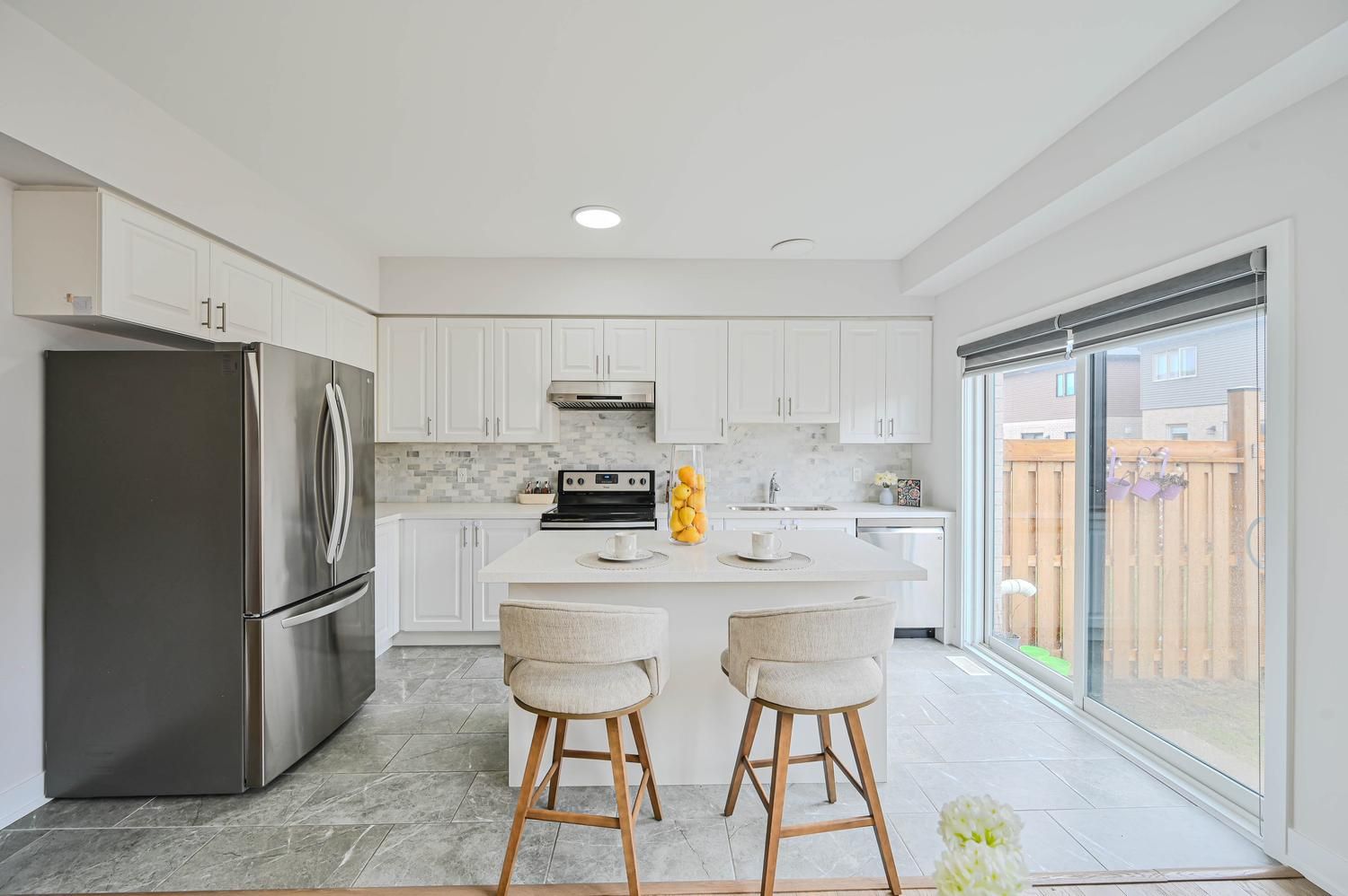 Beautifully Maintained Stunning 2022 Build townhouse located in the highly desirable south-east Barrie Community. This Bright and Modern 2 storey FREEHOLD home offers 3 Bedrooms and 3 Bath, thoughtfully designed with stylish natural decor and functional living space throughout. The main floor features 9 ft' ceilings offers big large layout, large window and an open airy layout that feels the home with full of Natural Light. The contemporary white kitchen is equipped with elegant cabinetry, quartz countertop, matching backsplash and stainless-steel appliances, creating the perfect space for everyday living and entertaining. An upgraded Oak staircase adds a refine touch and connects the home's living spaces seamlessly. The upper level provides a private and comfortable retreat. highlighted by a specious primary bedroom that easily accommodate a king size bed along with a space for a reading nook or home office area, and includes a 3 piece ensuite bathroom. Two additional Bedroom and a full 4 piece bathroom completes the level, along with the convenience of second floor laundry. Ideally situated close to excellent schools, parks, playgrounds, shopping, service entertainment, and year round recreation. Public Transit and GO transit is just steps away, with quick access to major commuter routes to the GTA and close proximity to the Barrie Waterfront. Bright, Modern and Truly move in ready - a fantastic opportunity in one of Barrie's most desirable locations.