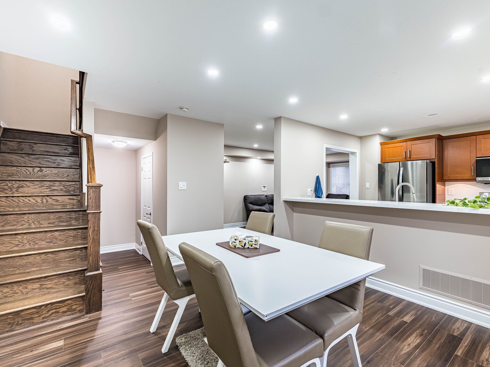 Absolutely Gorgeous!! Mattamy Energy Star Freehold Townhouse. Laminate Floors Throughout The Living & Dining Room, Leads You To Huge Balcony, Kitchen With Breakfast Bar & Stainless Steel Appliances, 3 Spacious Bedrooms, Master With Walk In Closet And Ensuite. Rarely Find 2 Full Washrooms On 3rd Floor. 3 Car Parking On Extended Driveway, Pot Lights, Mins Away To Mount Pleasant Go Station, Library, Parks, Hwy & Schools.