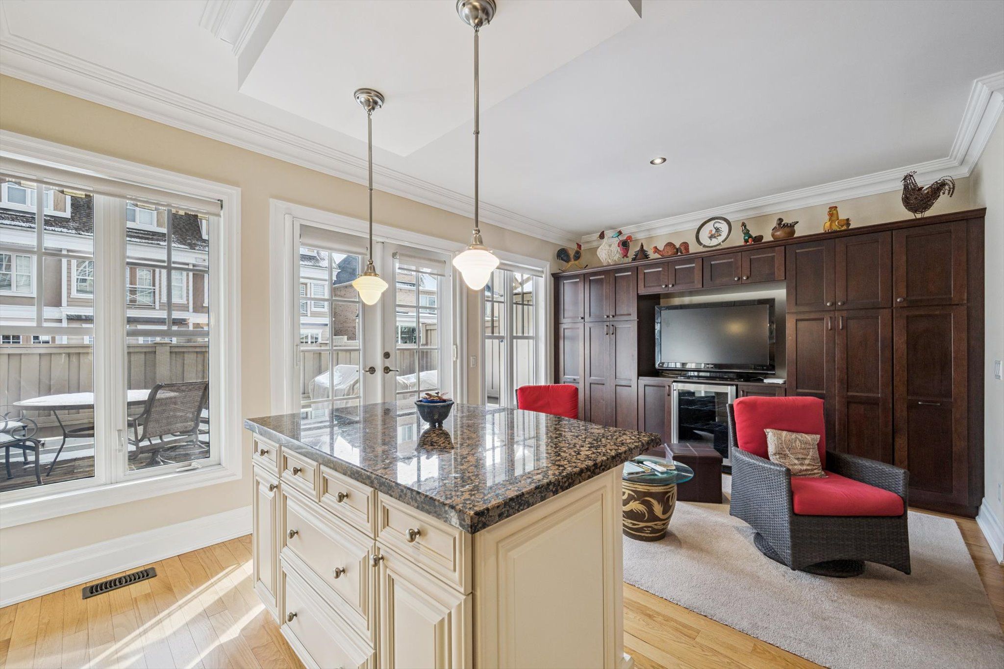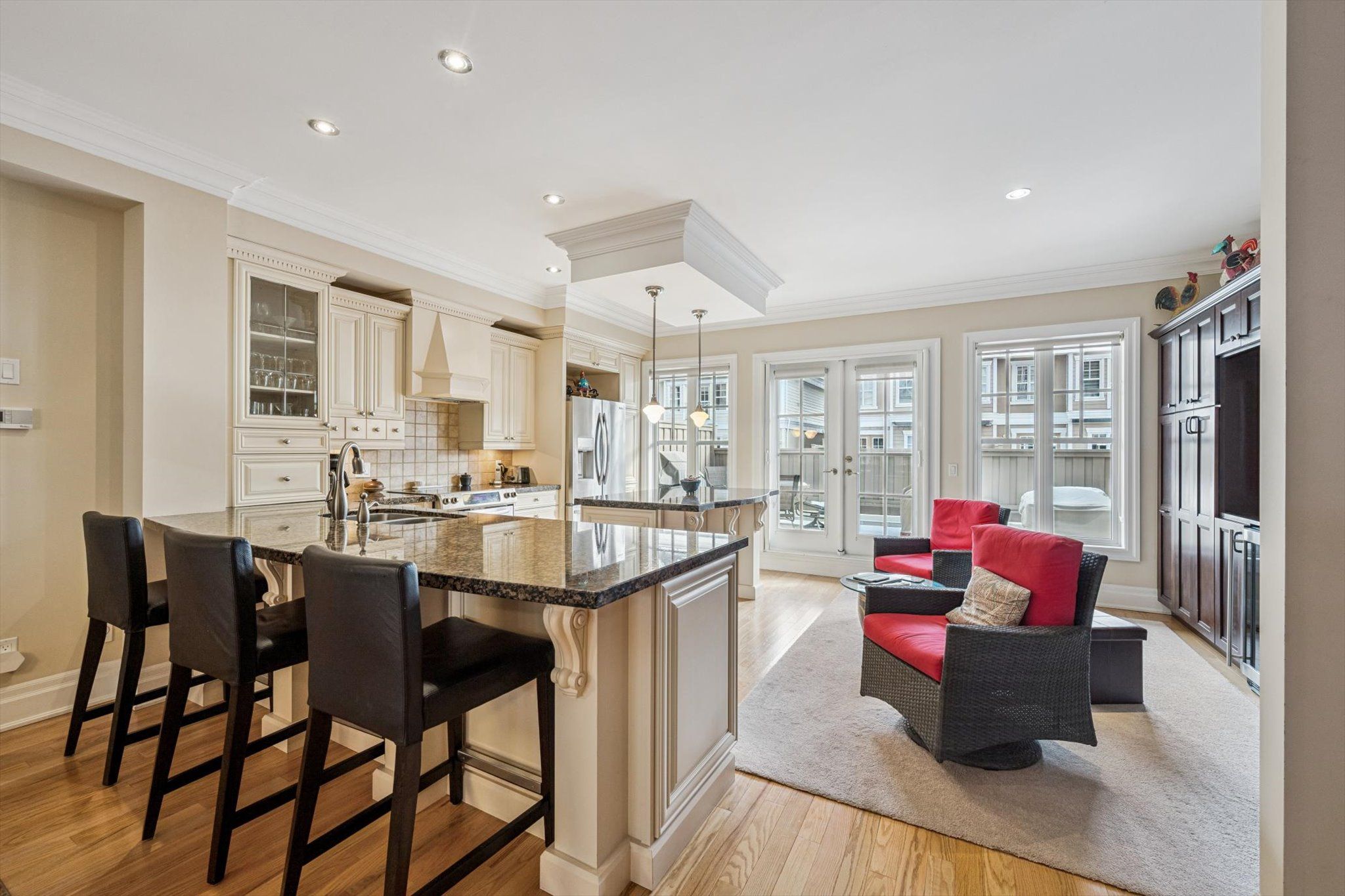 WELCOME TO THE HARBOUR CLUB - AN EXCLUSIVE COLLECTION OF BOUTIQUE TOWNHOMES JUST STEPS FROM BRONTE HARBOUR! This executive residence offers over 3,600 square feet of beautifully finished living space spanning four thoughtfully designed levels, blending house-scaled comfort with the ease of a low-maintenance condominium lifestyle. The main level showcases generous living and dining areas featuring hardwood flooring, crown moldings, a gas fireplace, and extensive custom built-ins that enhance both elegance and function. The well-appointed kitchen includes a centre island, stone countertops, stainless steel appliances, abundant cabinetry, and seamless flow into the family room/den. From here, walk out to a spacious 20' x 13' deck - a rare outdoor extension perfect for al fresco dining, entertaining, or simply enjoying the warm, south-facing light. The entire second level serves as a private primary retreat, anchored by a spacious bedroom complete with a spa-inspired five-piece ensuite, dual closets, and a walkout to its own terrace. A separate lounge or family room offers flexible space for reading, work, or quiet relaxation, complemented by a conveniently located laundry room. The third level adds two well-sized bedrooms, a full bathroom, and an additional balcony, creating excellent separation for family, guests, or multi-generational living. In total, this townhome features three upper level terraces plus the main deck, infusing every level with natural light and inviting outdoor living. The finished lower level provides even more versatility with a recreation room, a two-piece bathroom, and interior access to the two-car garage. Set in the heart of Bronte Village, this exceptional residence places you steps from the waterfront trail, marina, cafes, trendy restaurants, and everyday conveniences. A rare blend of scale, craftmanship, and walkability in one of Oakville's most desirable harbourside communities.