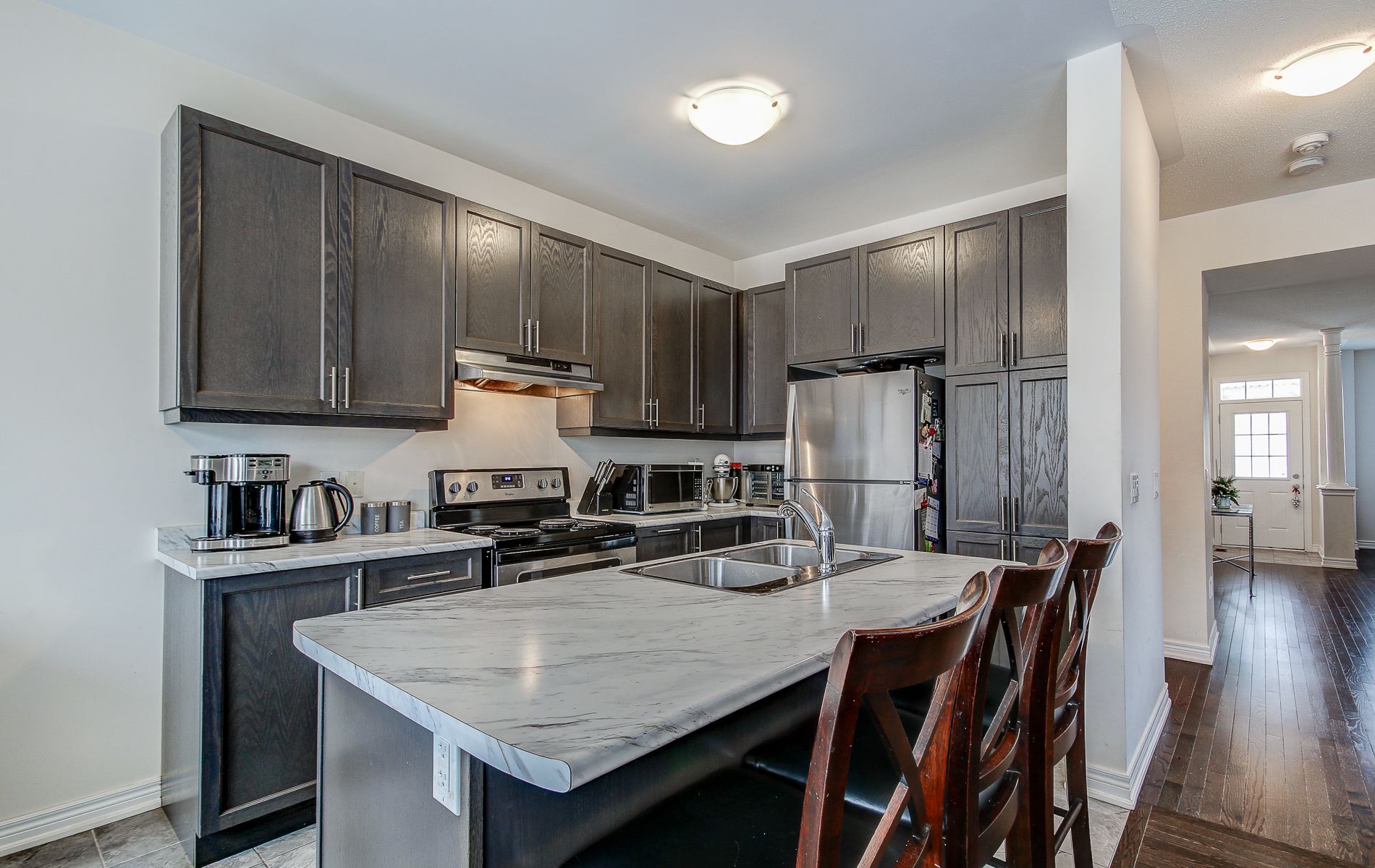 Luxurious 3-Bedroom Townhouse in a Highly Sought-After Neighborhood. This bright and spacious home features elegant hardwood flooring throughout the main level and upper hallway, creating a warm and inviting atmosphere. The modern kitchen offers a functional layout with a breakfast area, perfect for everyday living and entertaining. The generous primary bedroom includes a walk-in closet and a 4-piece ensuite for added comfort and privacy. Conveniently located at 20 Zelda Road, Brampton, with easy access to Highway 410 and close proximity to shopping, schools, parks, and all essential amenities. An exceptional opportunity in a prime location - truly a must-see!